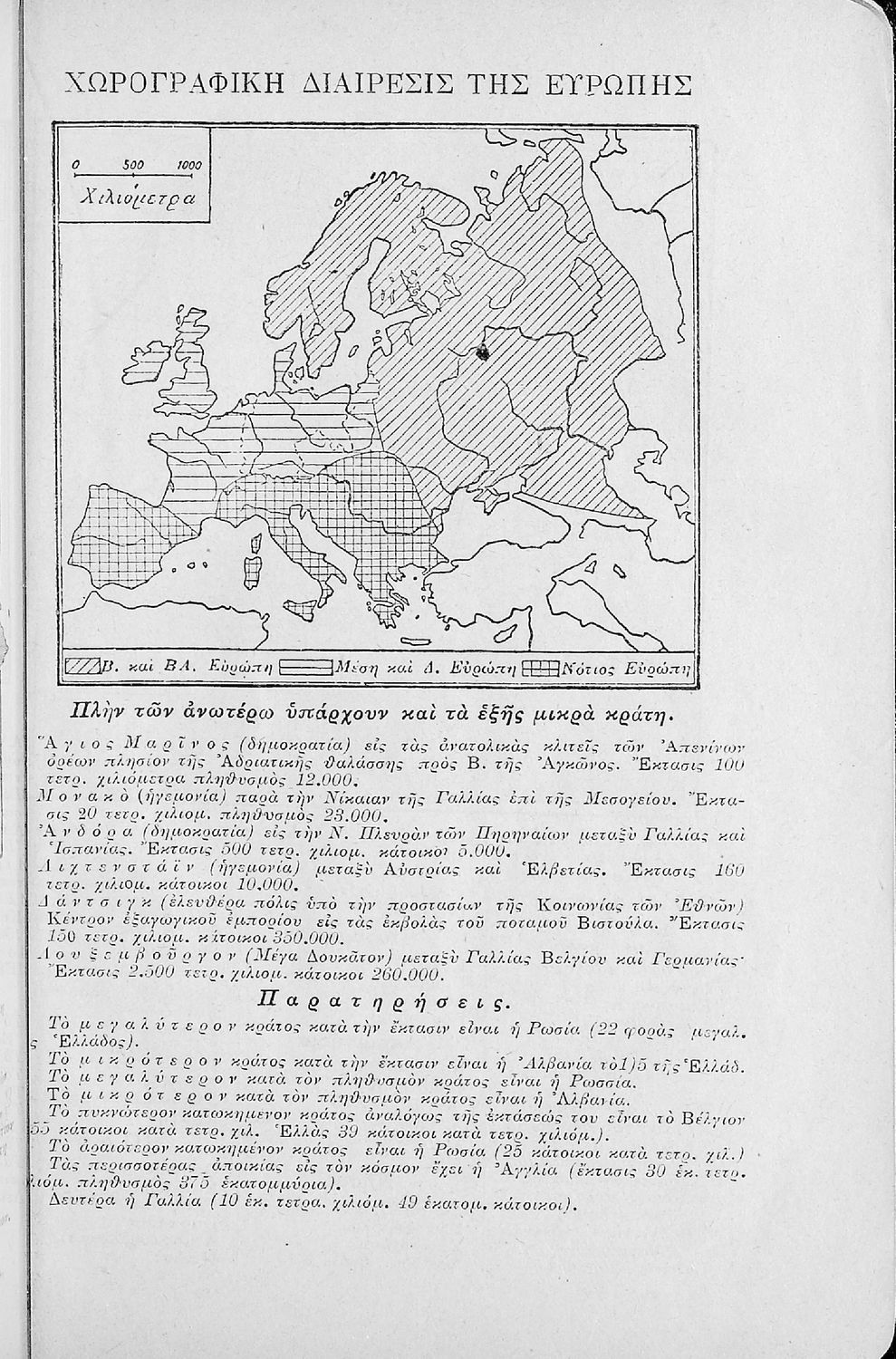 Μαθητικό βοήθημα Γεωγραφίας ΣΤ΄ Δημοτικού που περιλαμβάνει στοιχεία μαθηματικής, πολιτικής και φυσικής γεωγραφίας των χωρών της Ευρώπης.