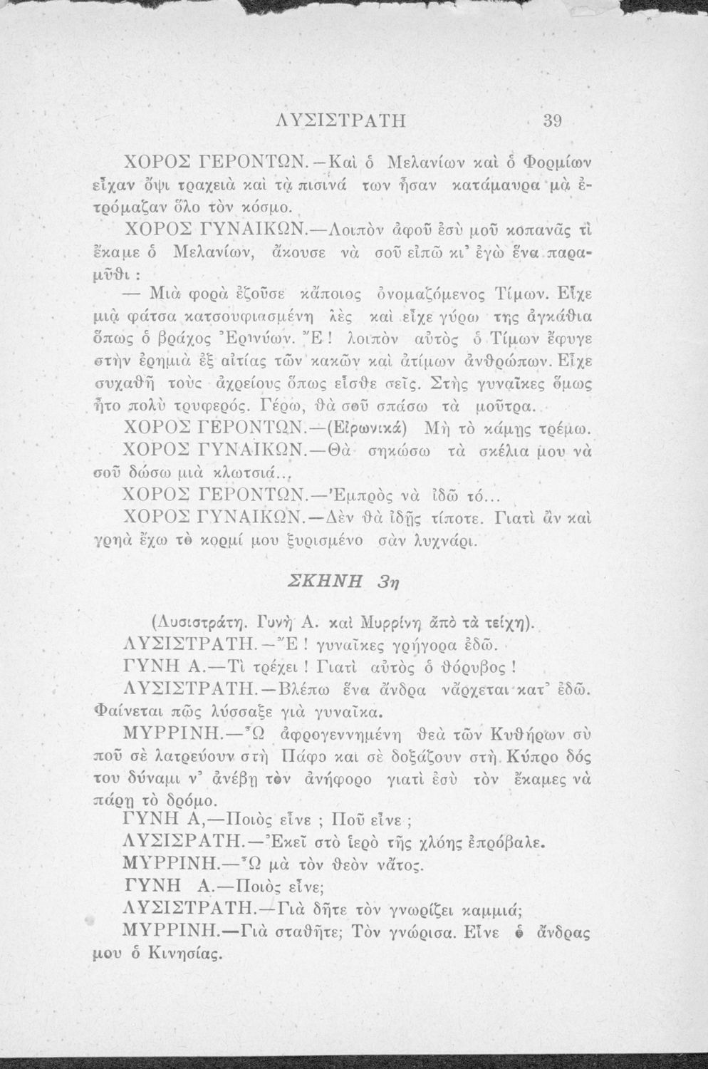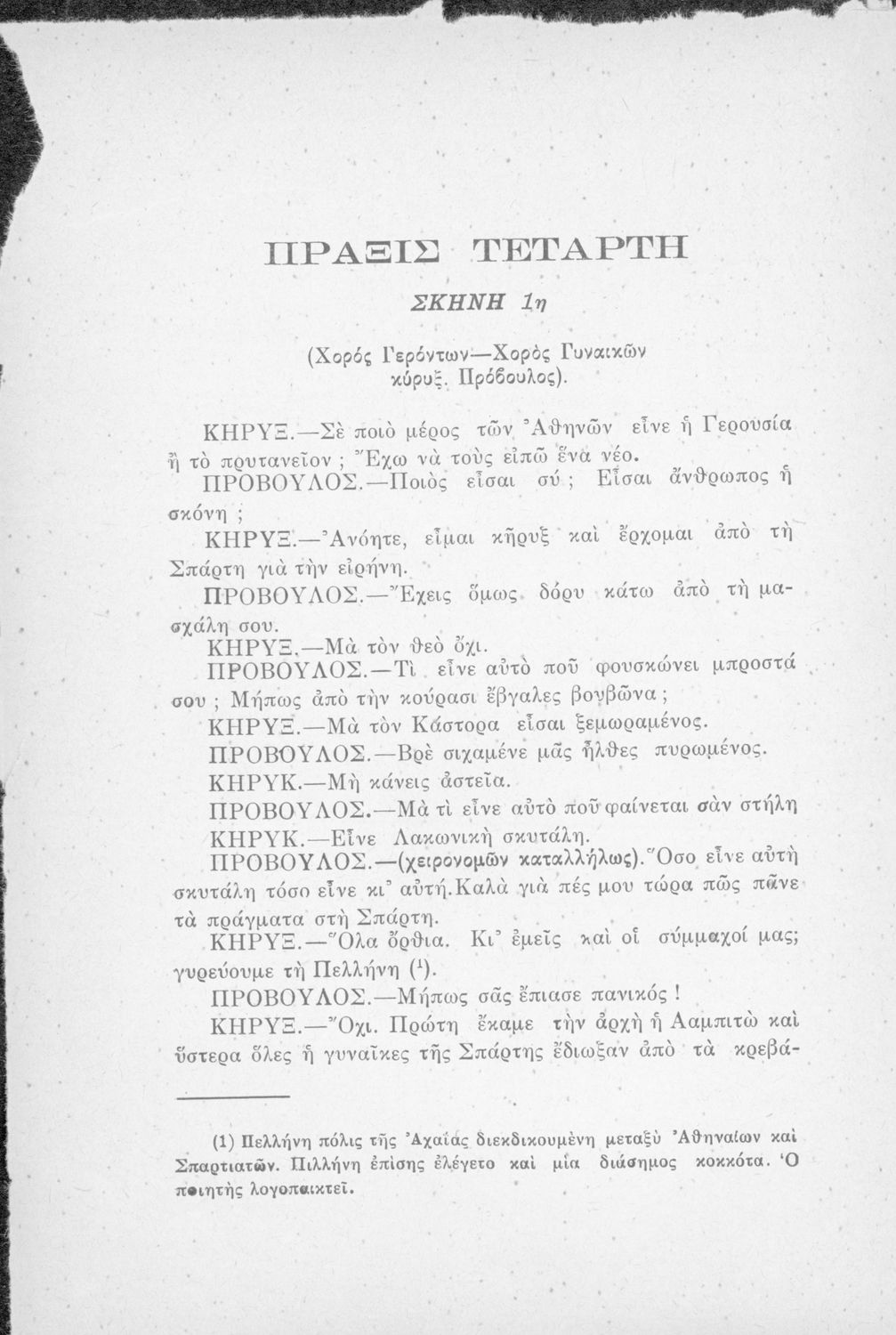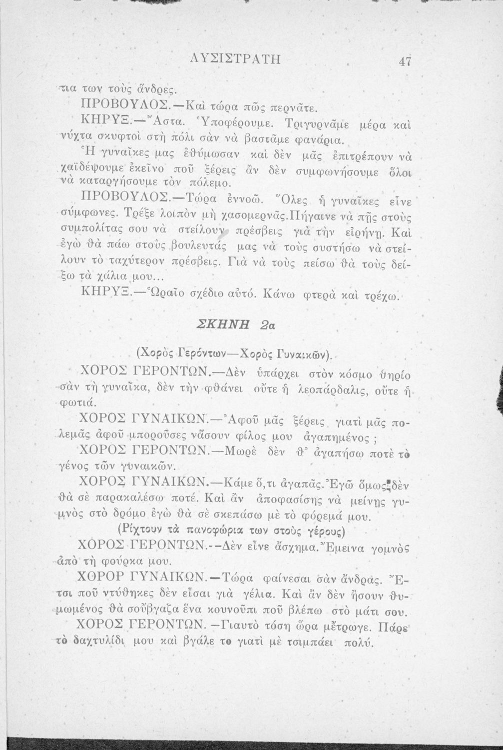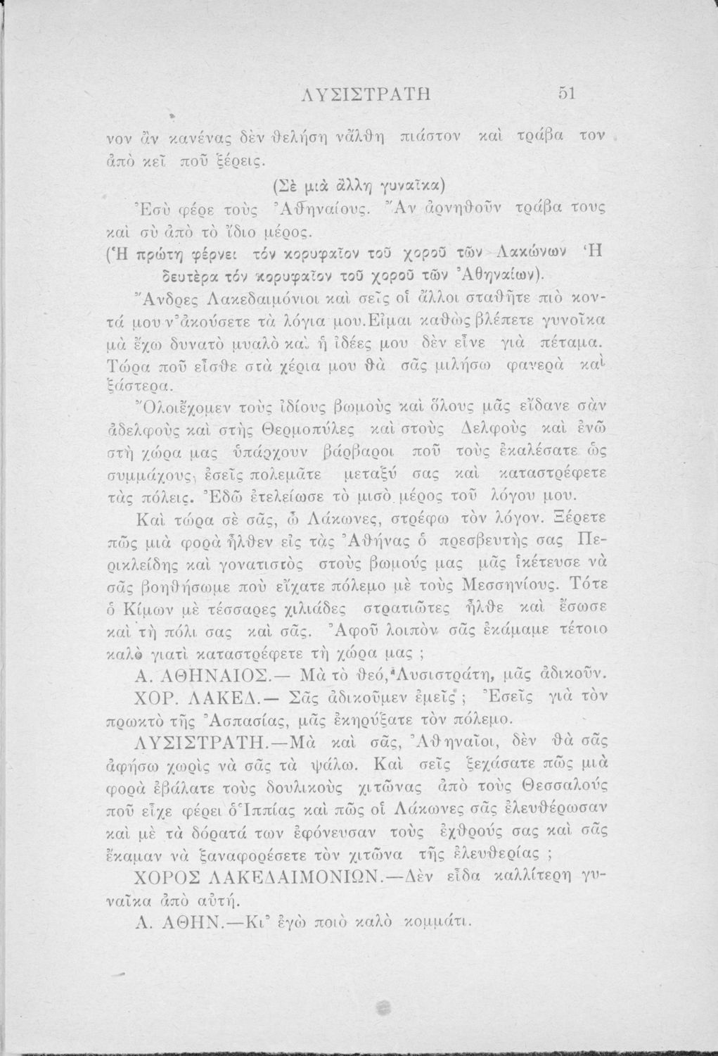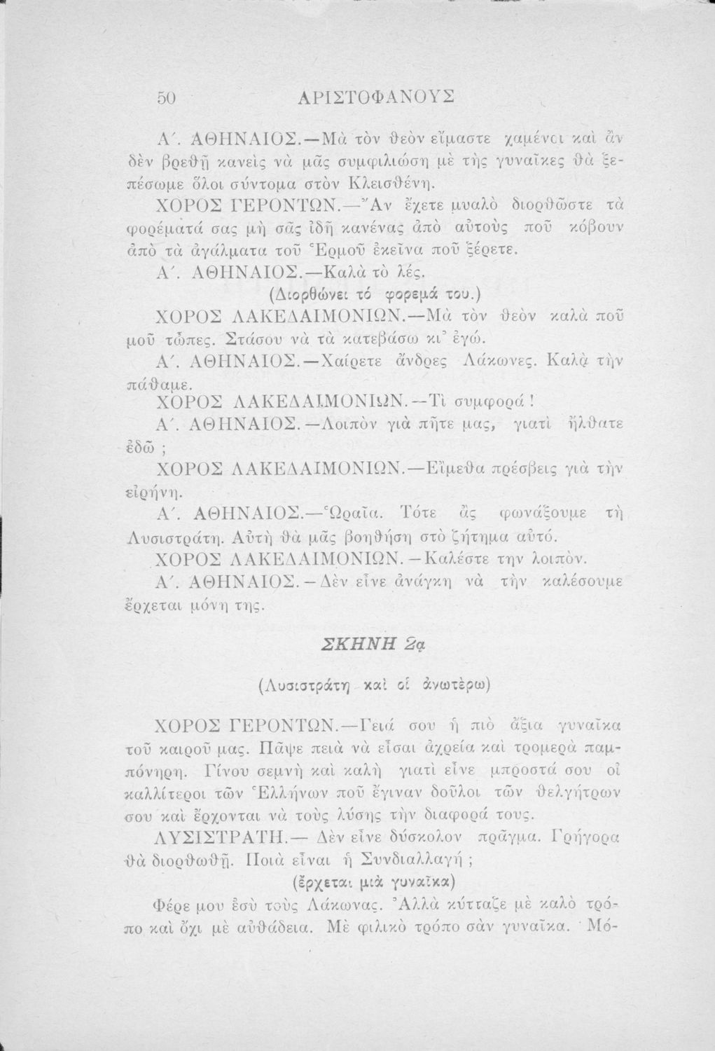 Έκδοση που περιέχει μετάφραση της Λυσιστράτης στη δημοτική.