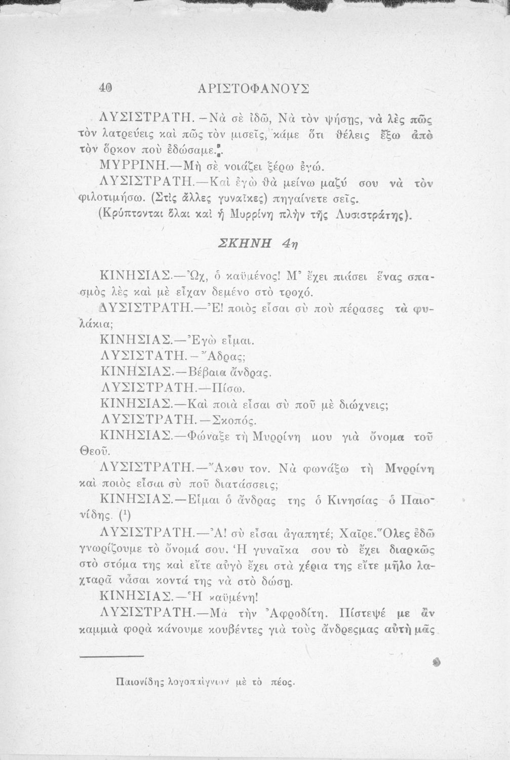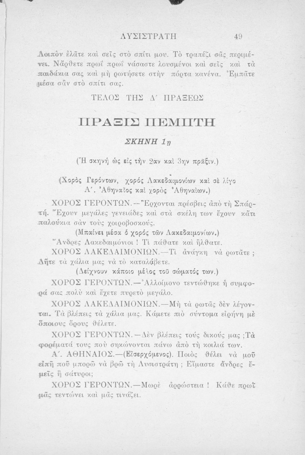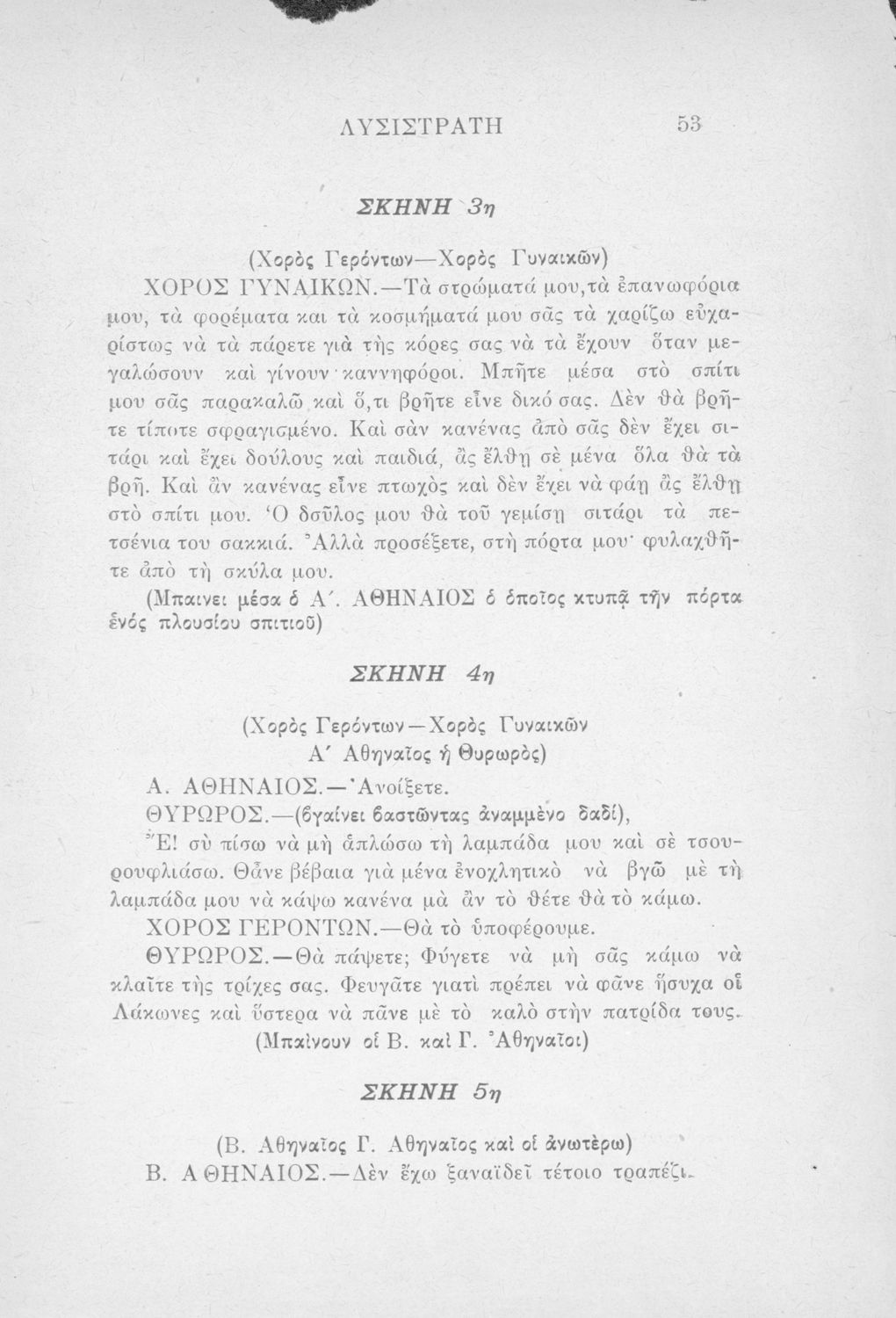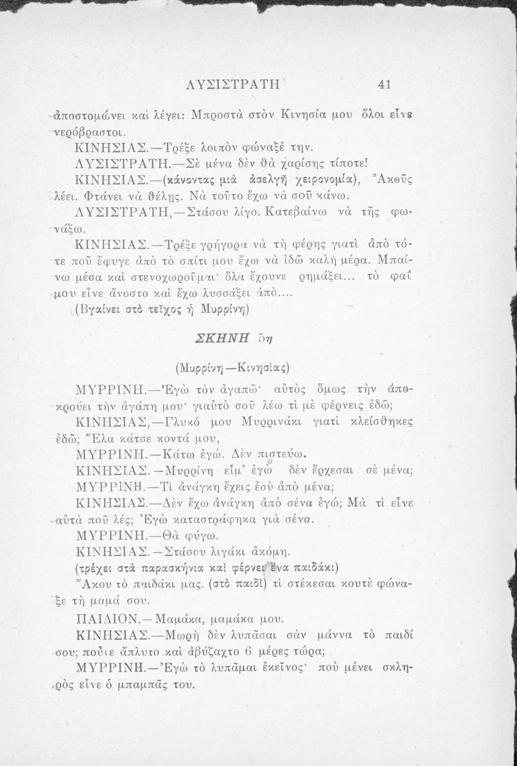 Έκδοση που περιέχει μετάφραση της Λυσιστράτης στη δημοτική.
