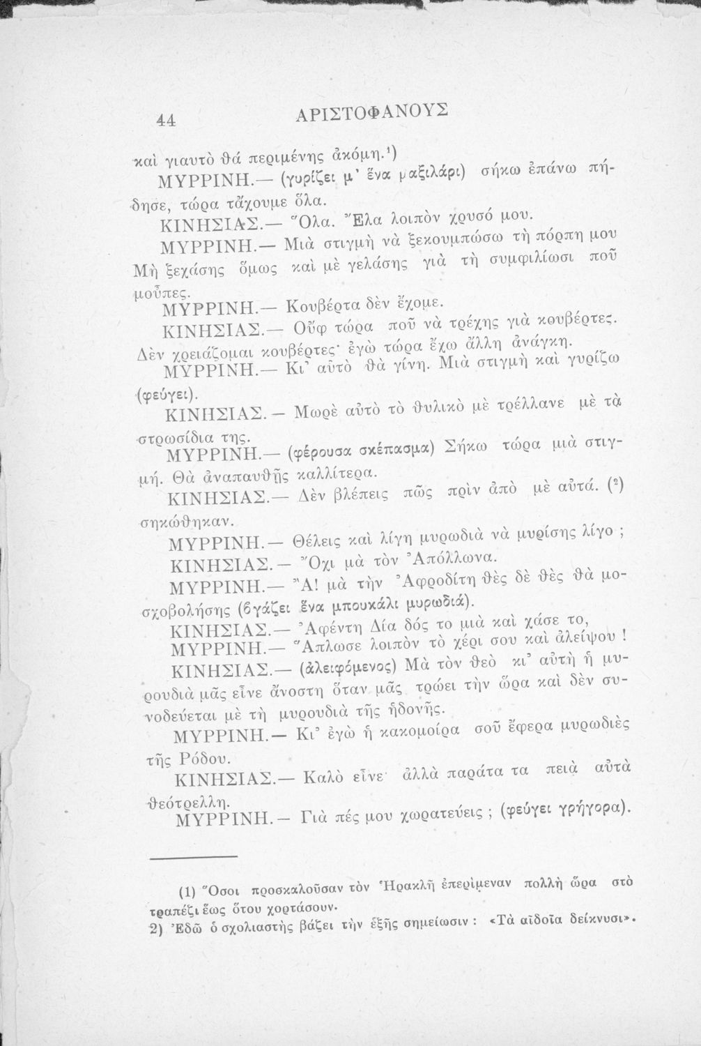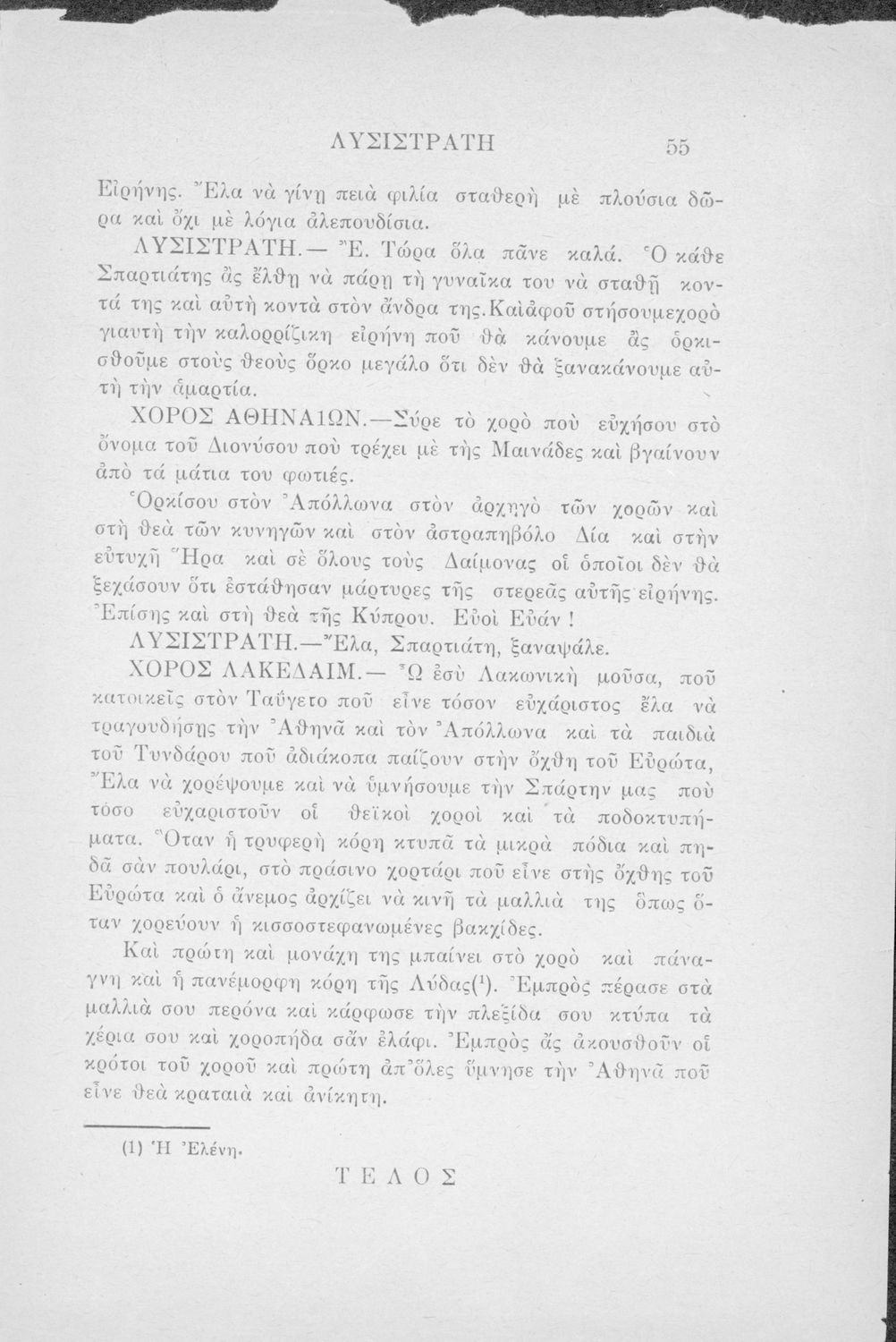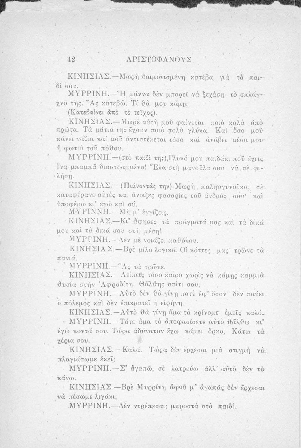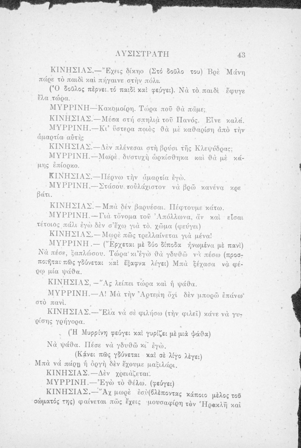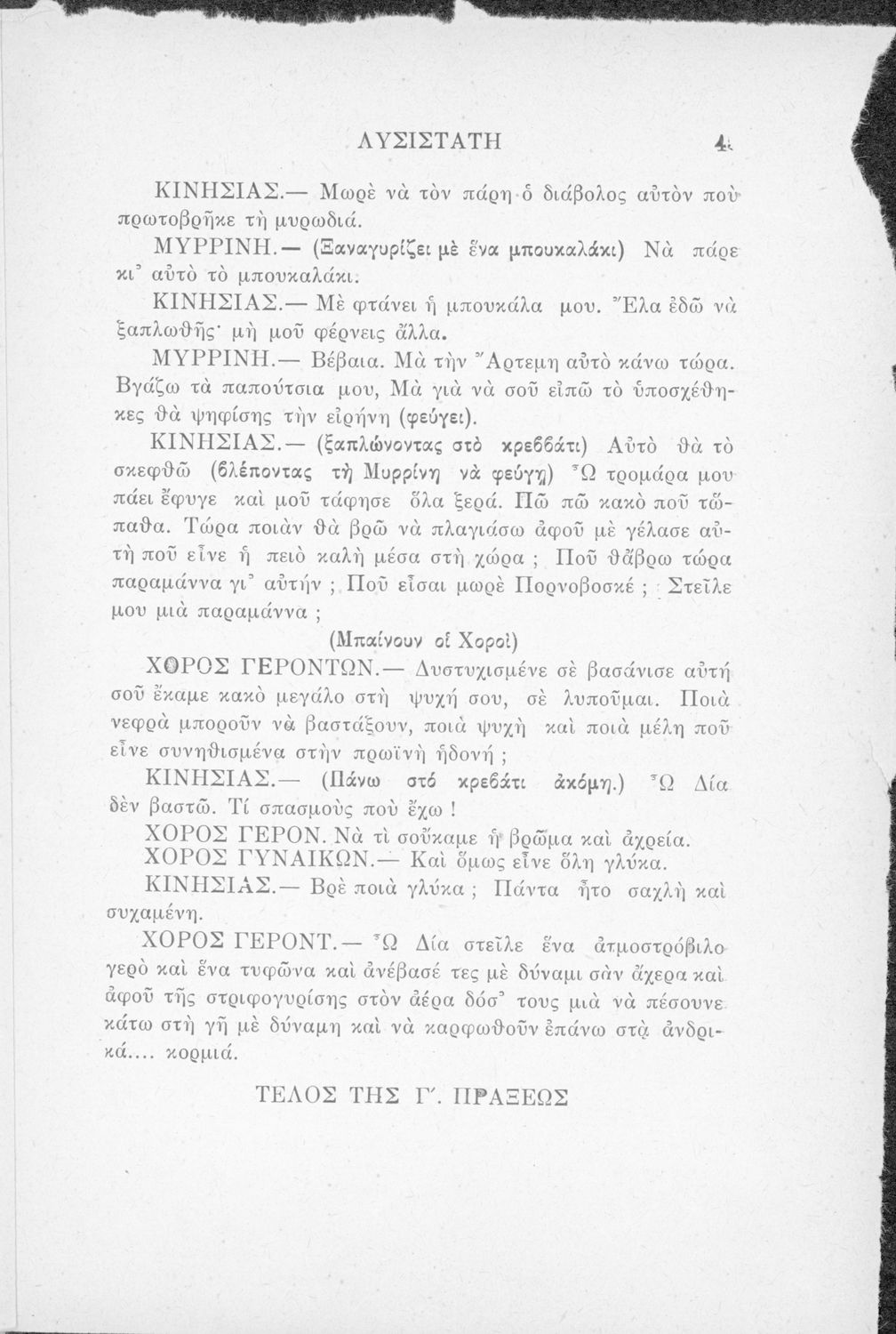 Έκδοση που περιέχει μετάφραση της Λυσιστράτης στη δημοτική.