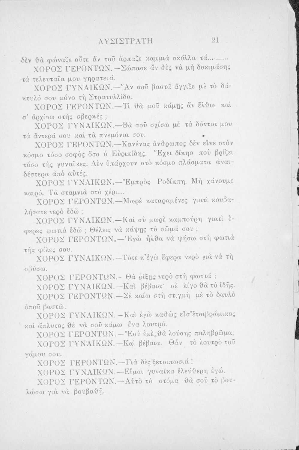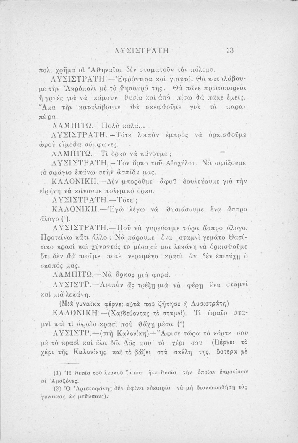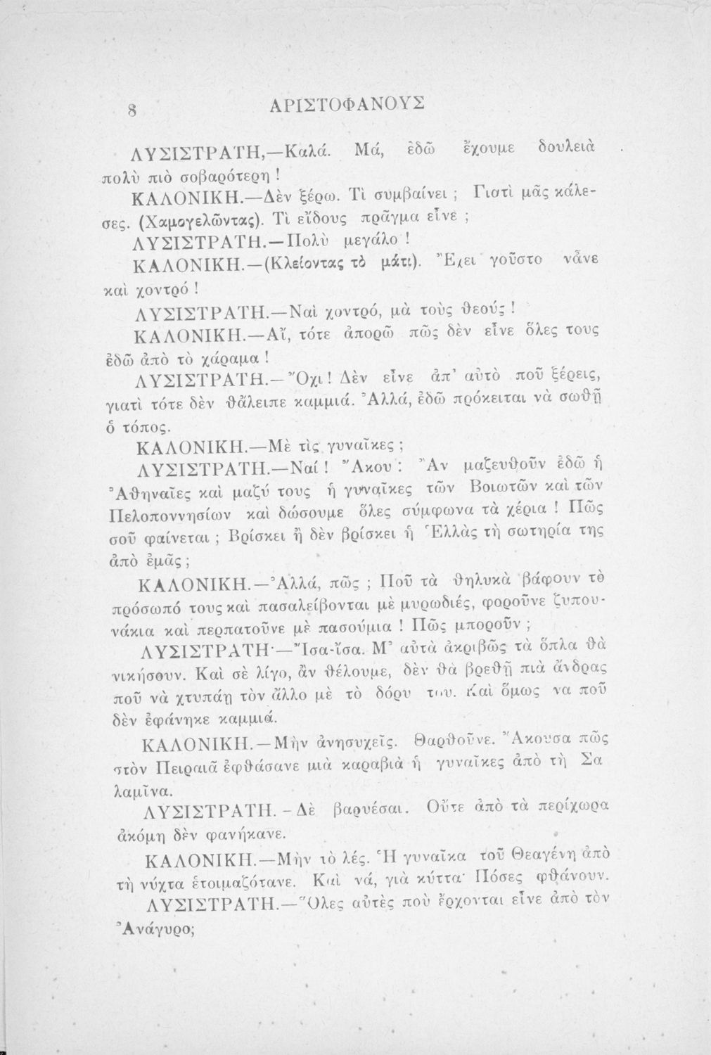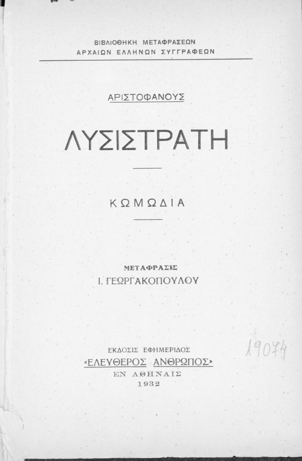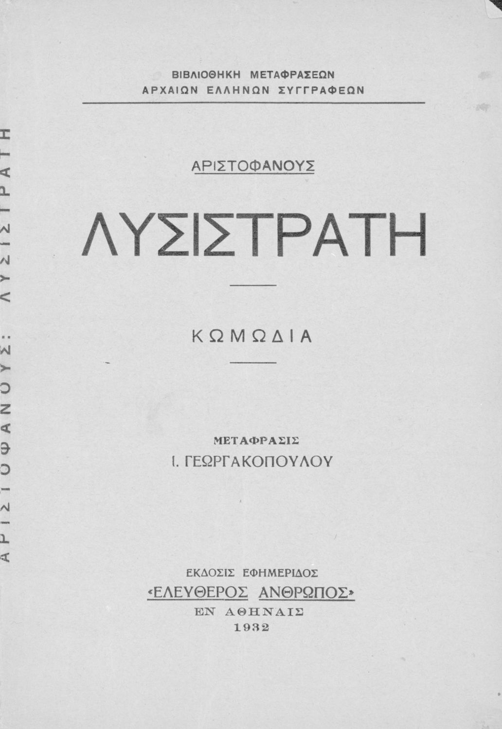 Έκδοση που περιέχει μετάφραση της Λυσιστράτης στη δημοτική.