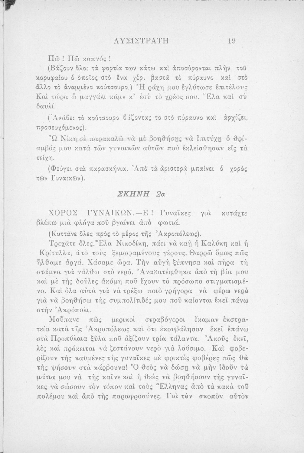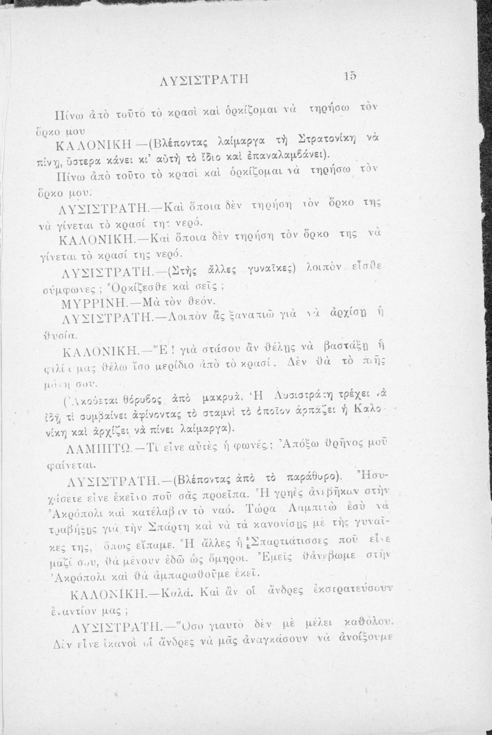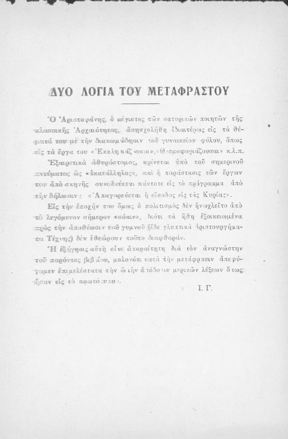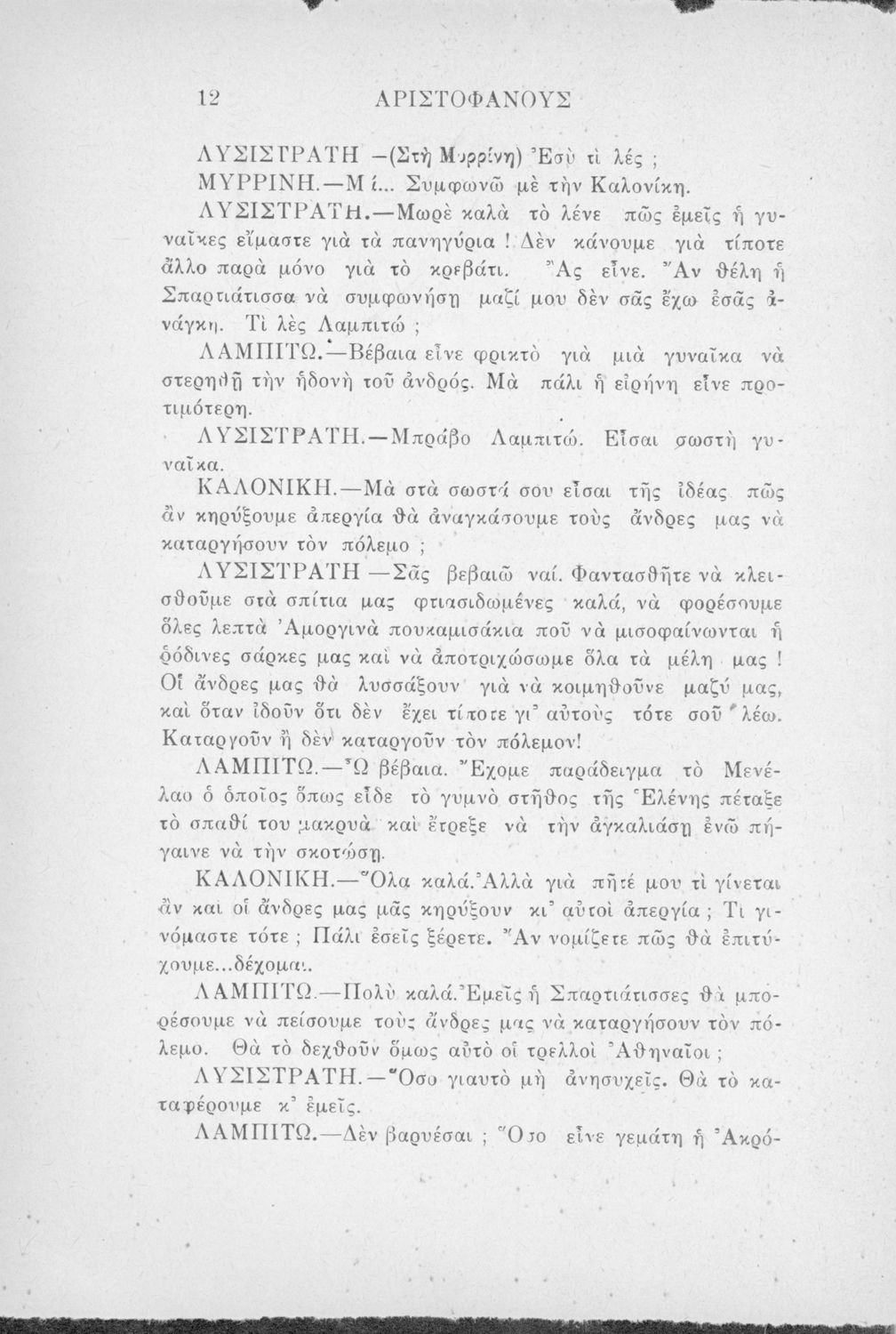 Έκδοση που περιέχει μετάφραση της Λυσιστράτης στη δημοτική.