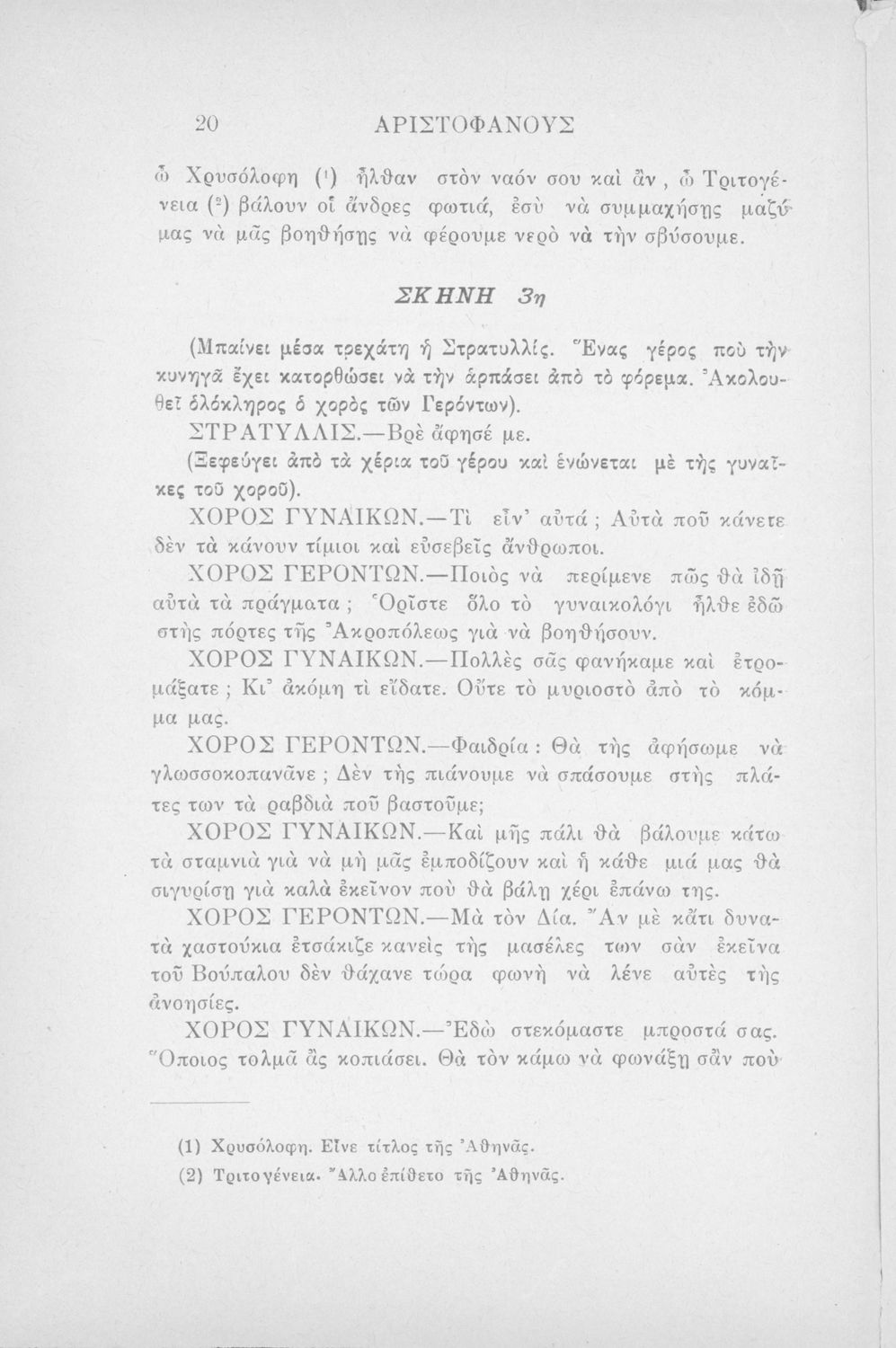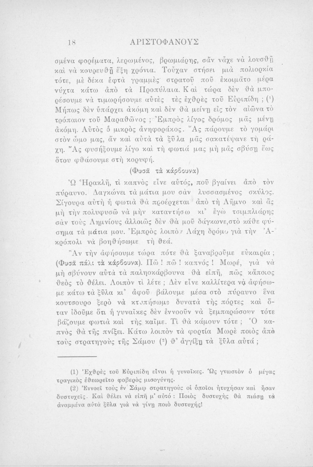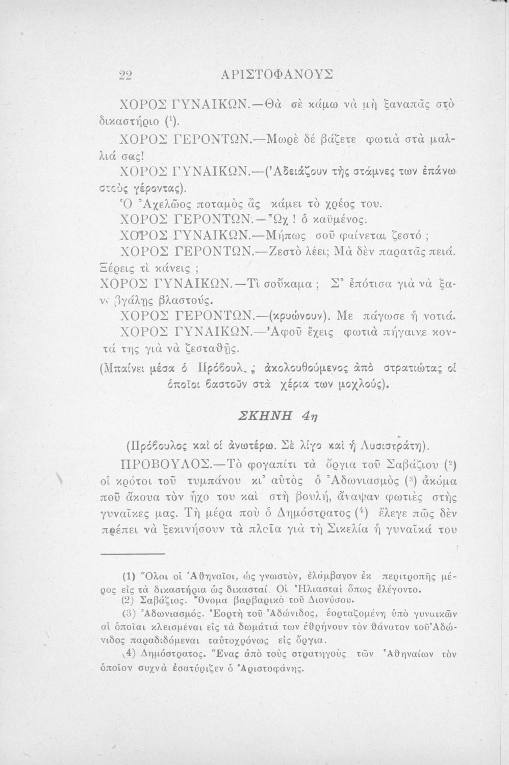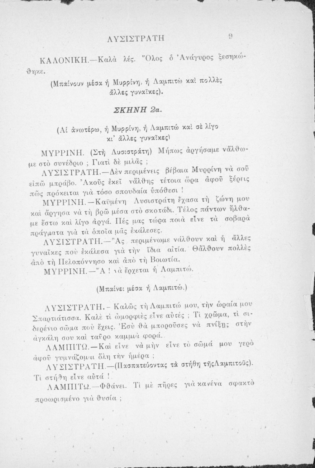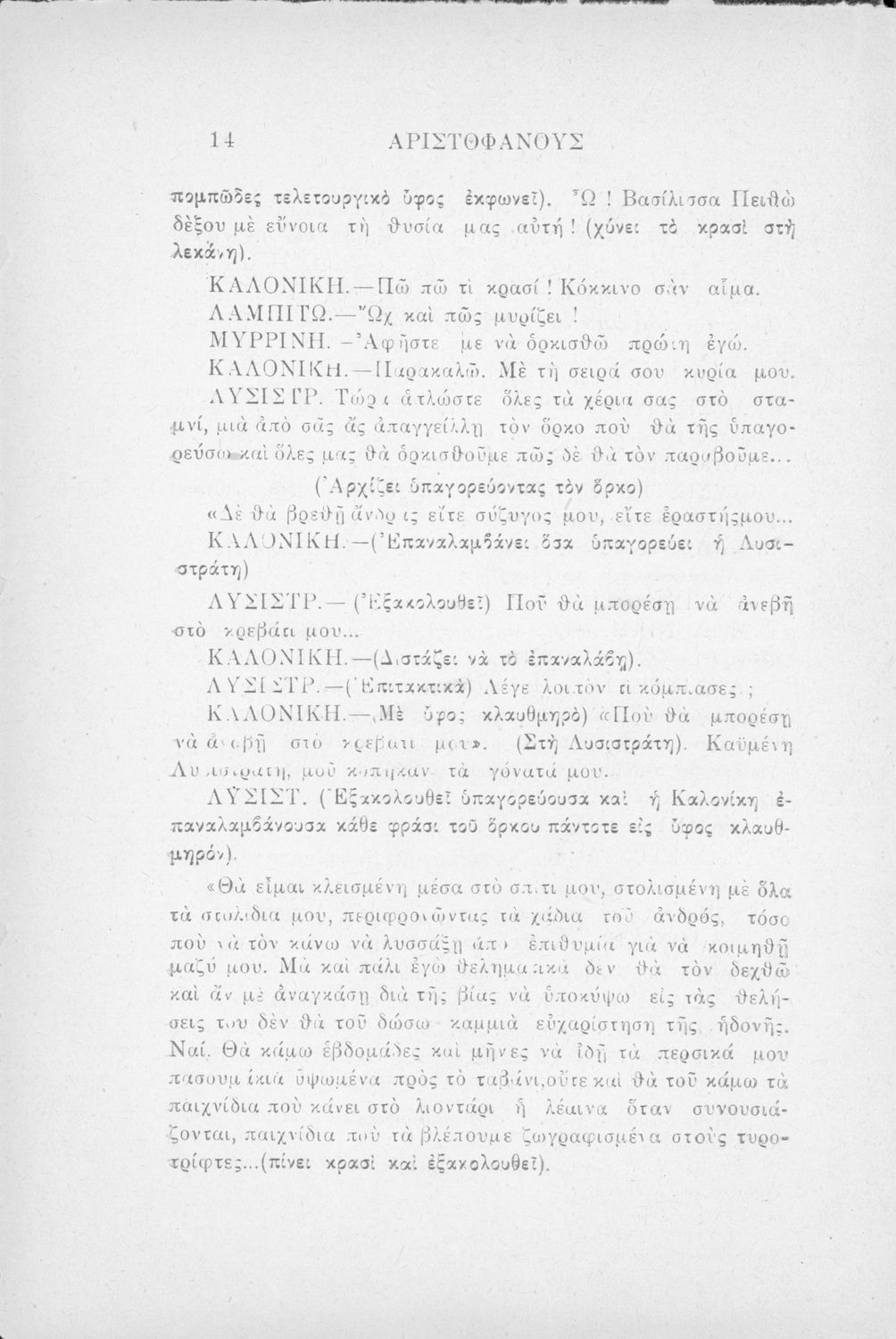 Έκδοση που περιέχει μετάφραση της Λυσιστράτης στη δημοτική.