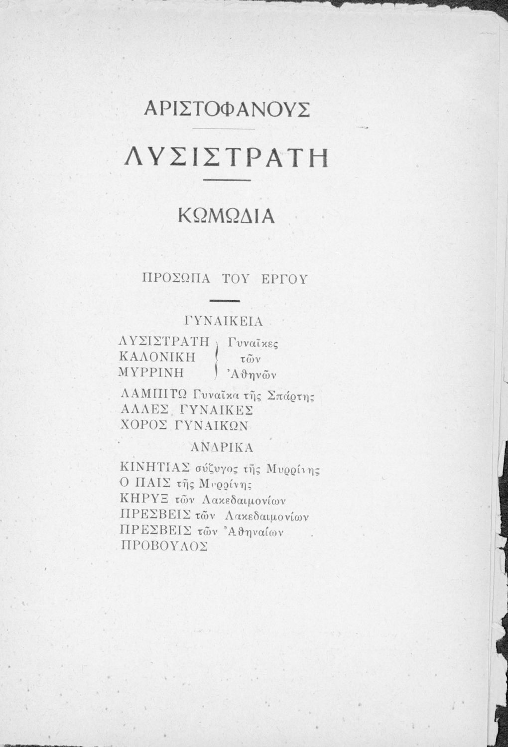 Παρουσίαση περιεχομένου: Έκδοση που περιέχει μετάφραση της Λυσιστράτης στη δημοτική.