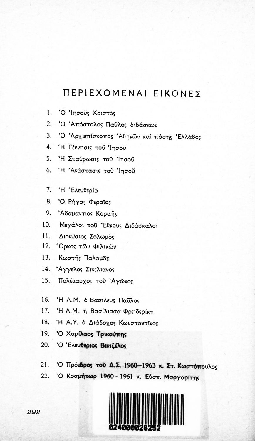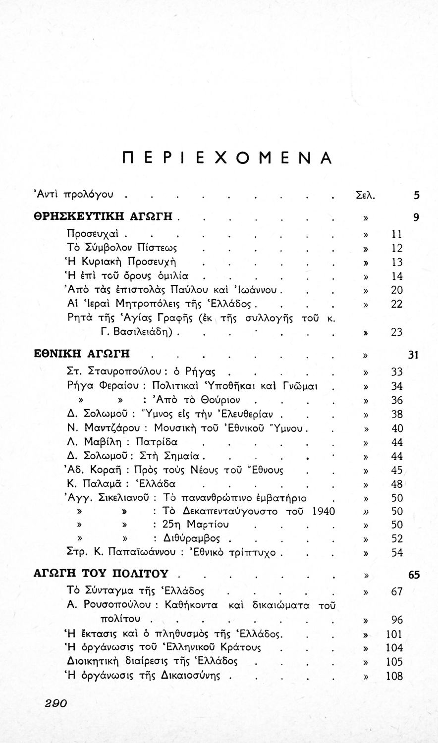 Έκδοση της Ανώτατης Βιομηχανικής Σχολής Πειραιά για το ακαδημαϊκό έτος 1955-1956 που αποσκοπεί στην εθνική, πολιτική, θρησκευτική αγωγή των σπουδαστών. Το βιβλίο έλαβε έπαινο από την Ακαδημία Αθηνών.