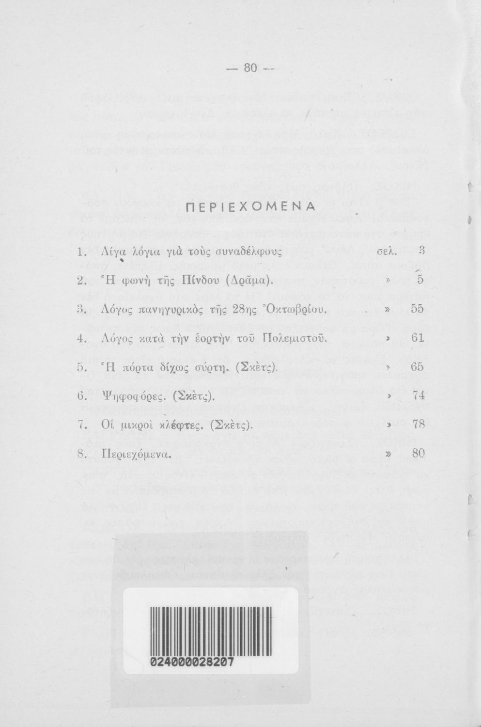 Τίτλος: Η φωνή της Πίνδου σχολικόν δράμα (εις το τέλος ομιλίαι και κωμικά σκετς)