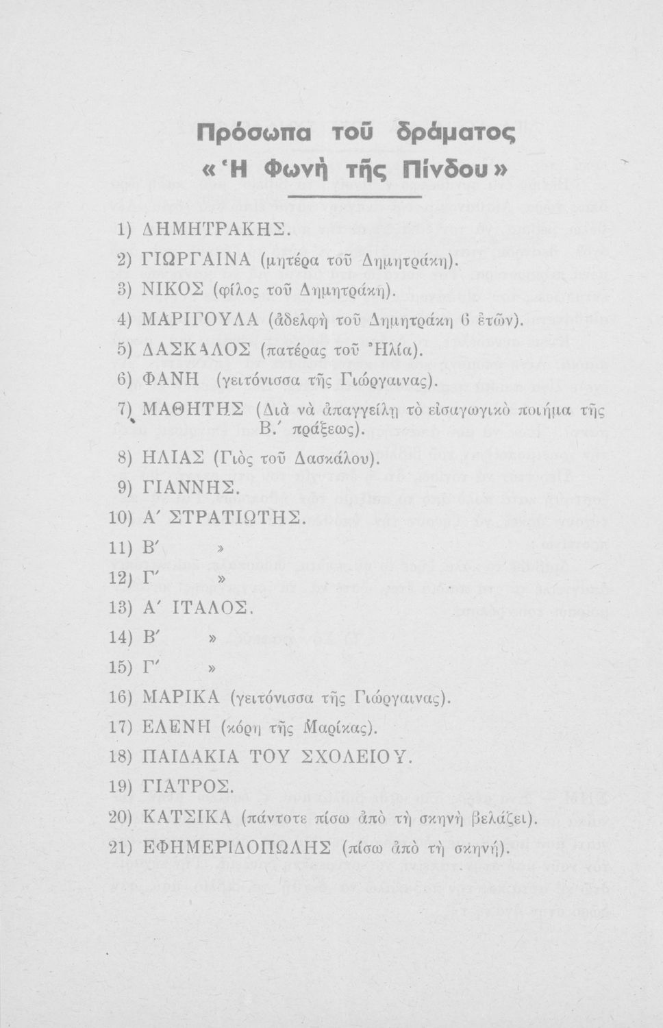 Κωδικός αναγνώρισης: 01-19077 Τίτλος: Η φωνή της Πίνδου σχολικόν δράμα (εις το τέλος ομιλίαι και κωμικά σκετς) Συγγραφέας: Μιχαήλ Πιτσούνης Μέγεθος και υπόστρωμα: Παιδαγωγικό βοήθημα, 21εκ., μαλακό εξώφυλλο, 80 σελίδες. |