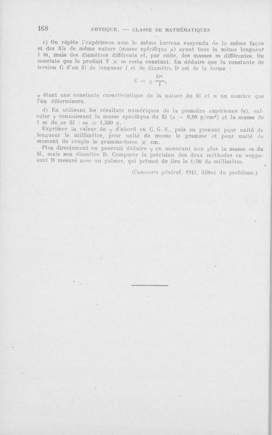 Physique : classe de mathematiques programme du 18 Avril 1947