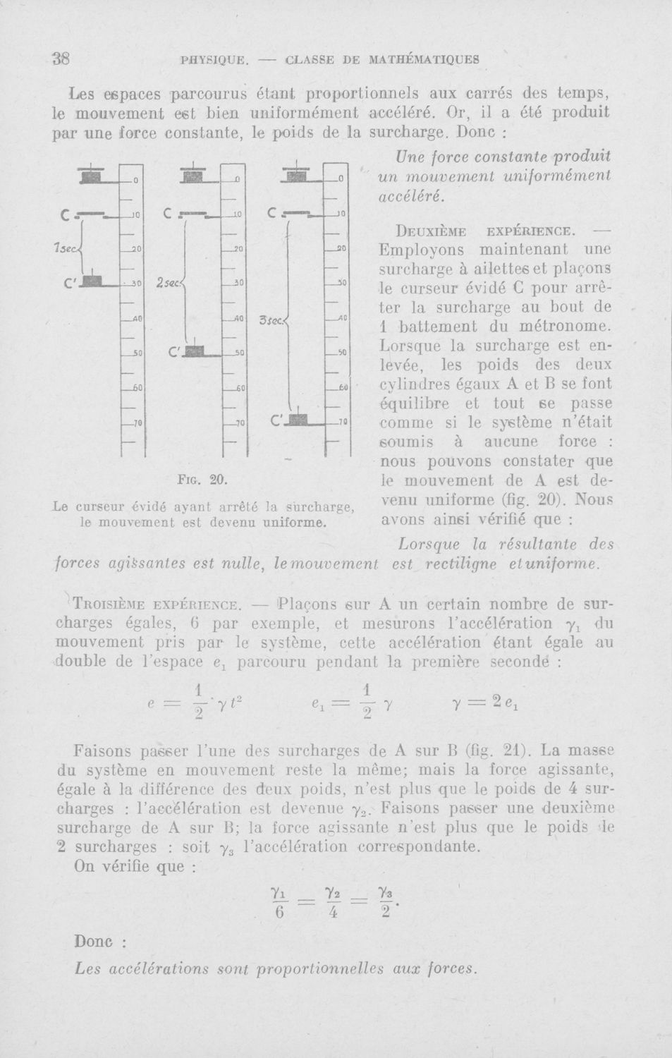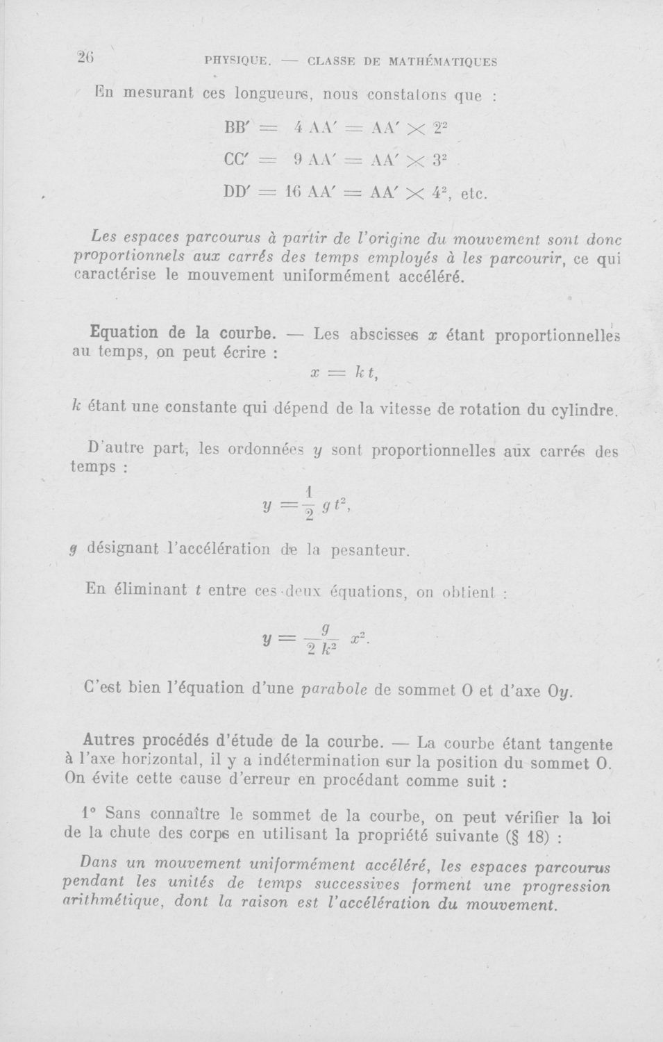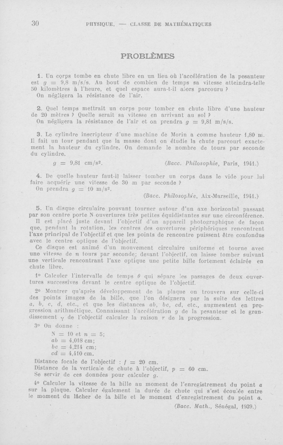 Physique : classe de mathematiques programme du 18 Avril 1947