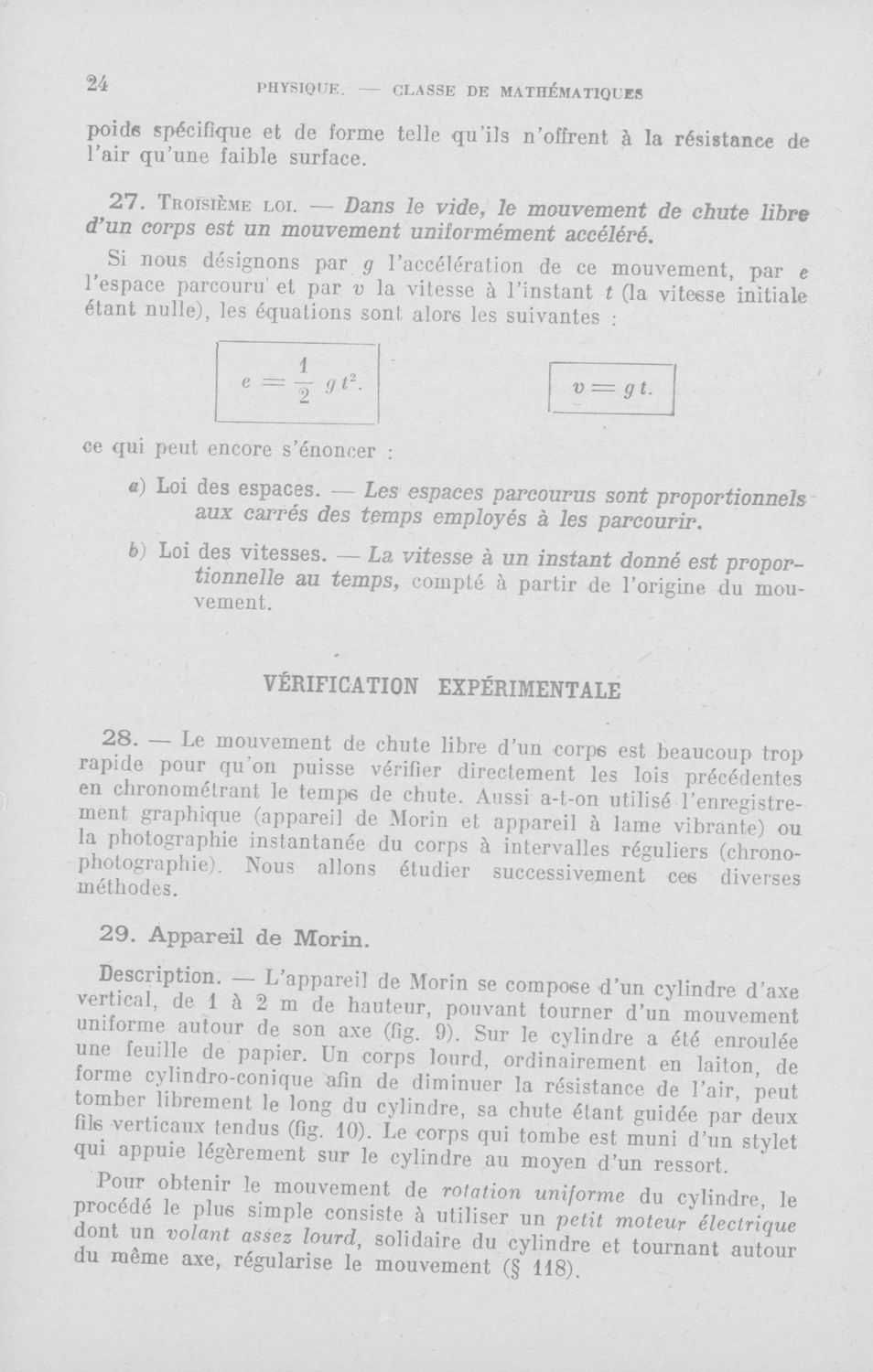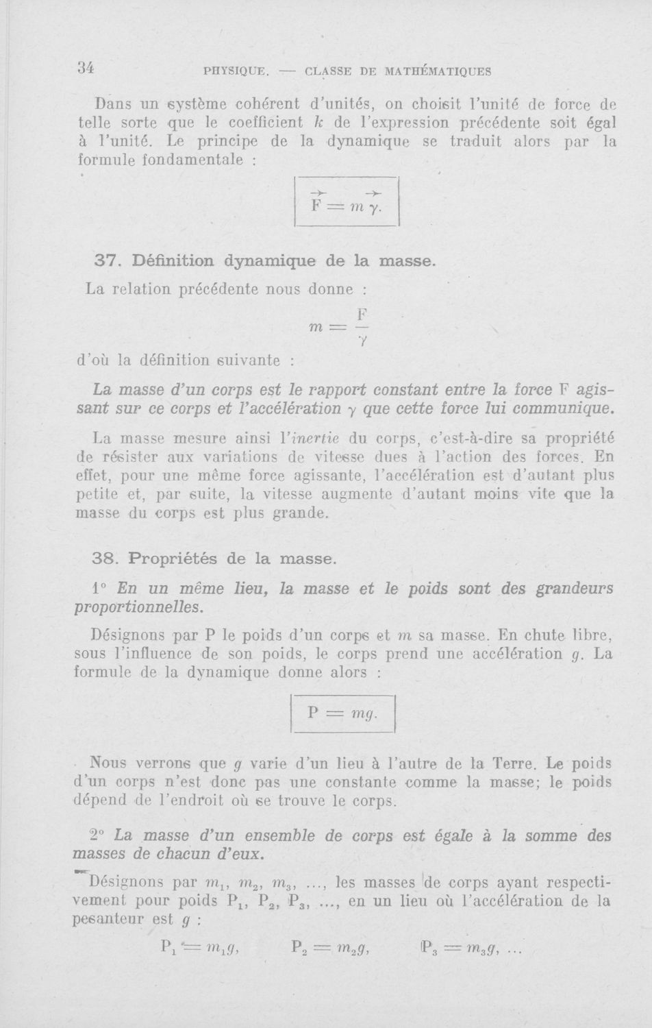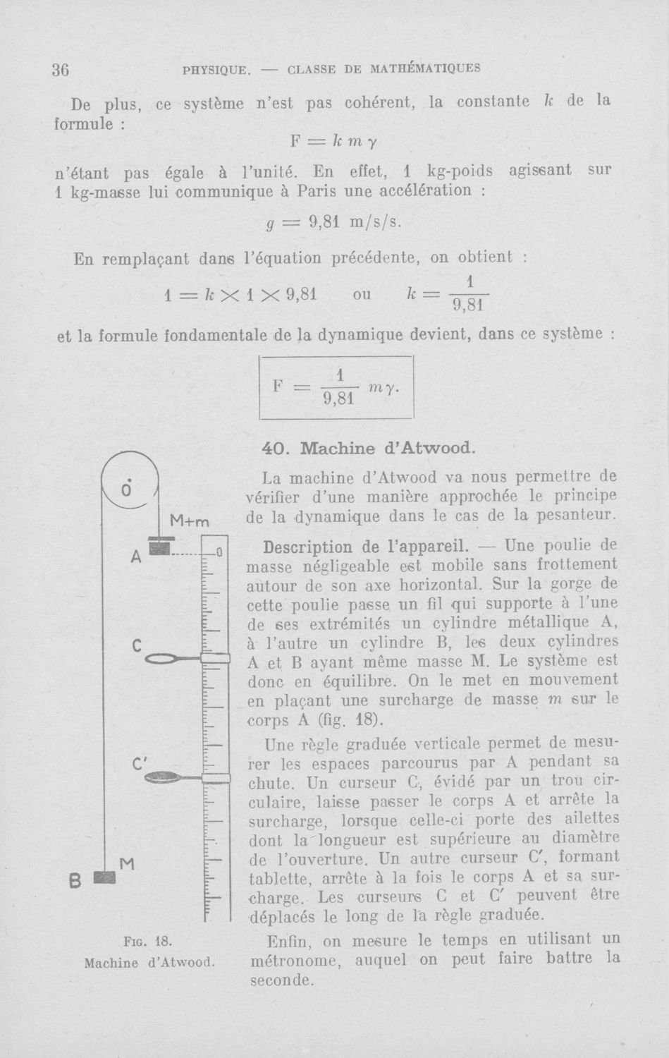 Physique : classe de mathematiques programme du 18 Avril 1947