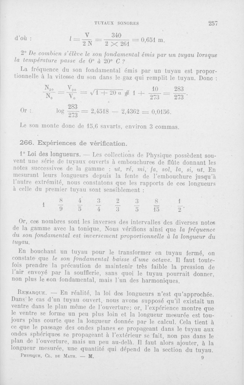 Physique : classe de mathematiques programme du 18 Avril 1947