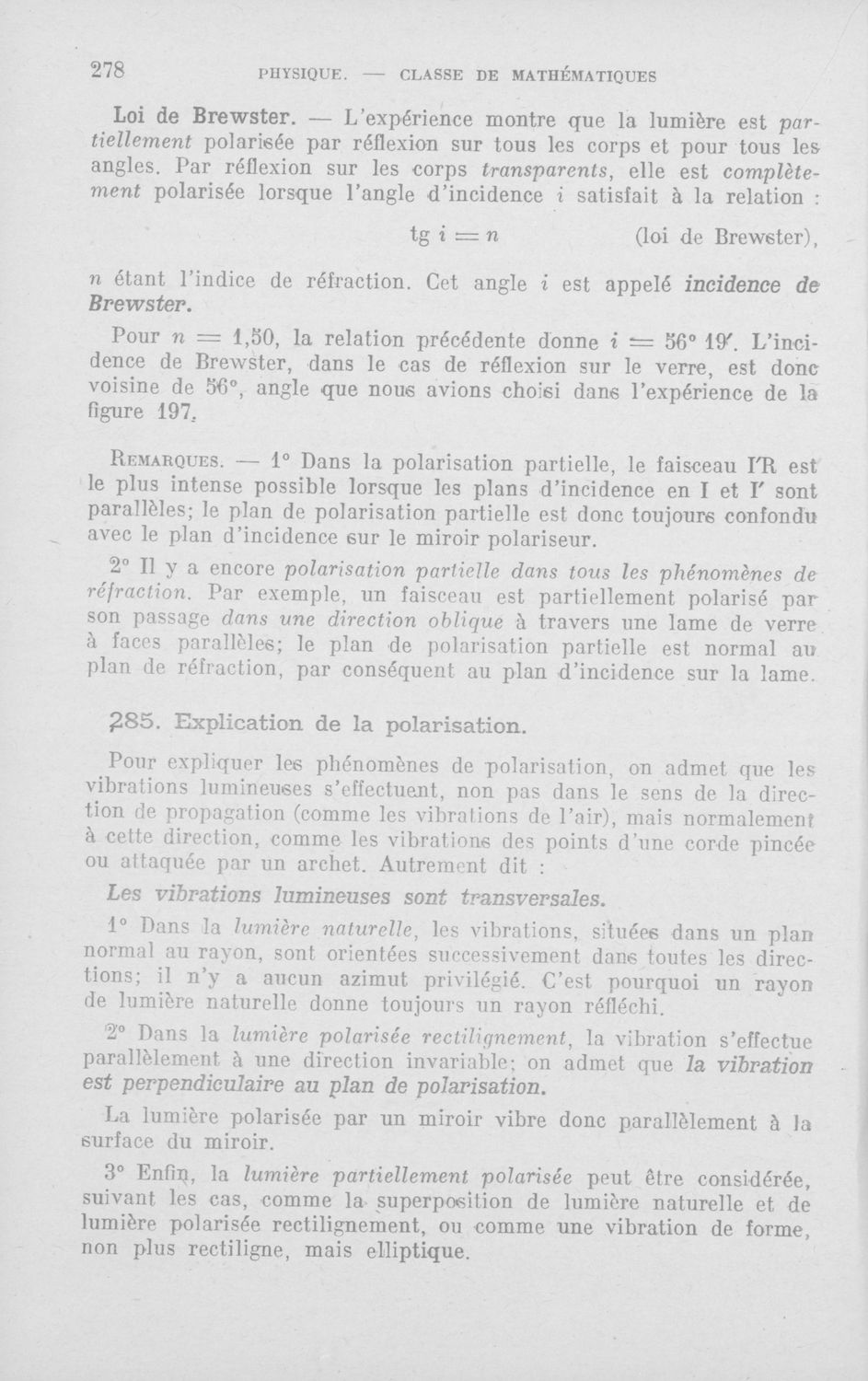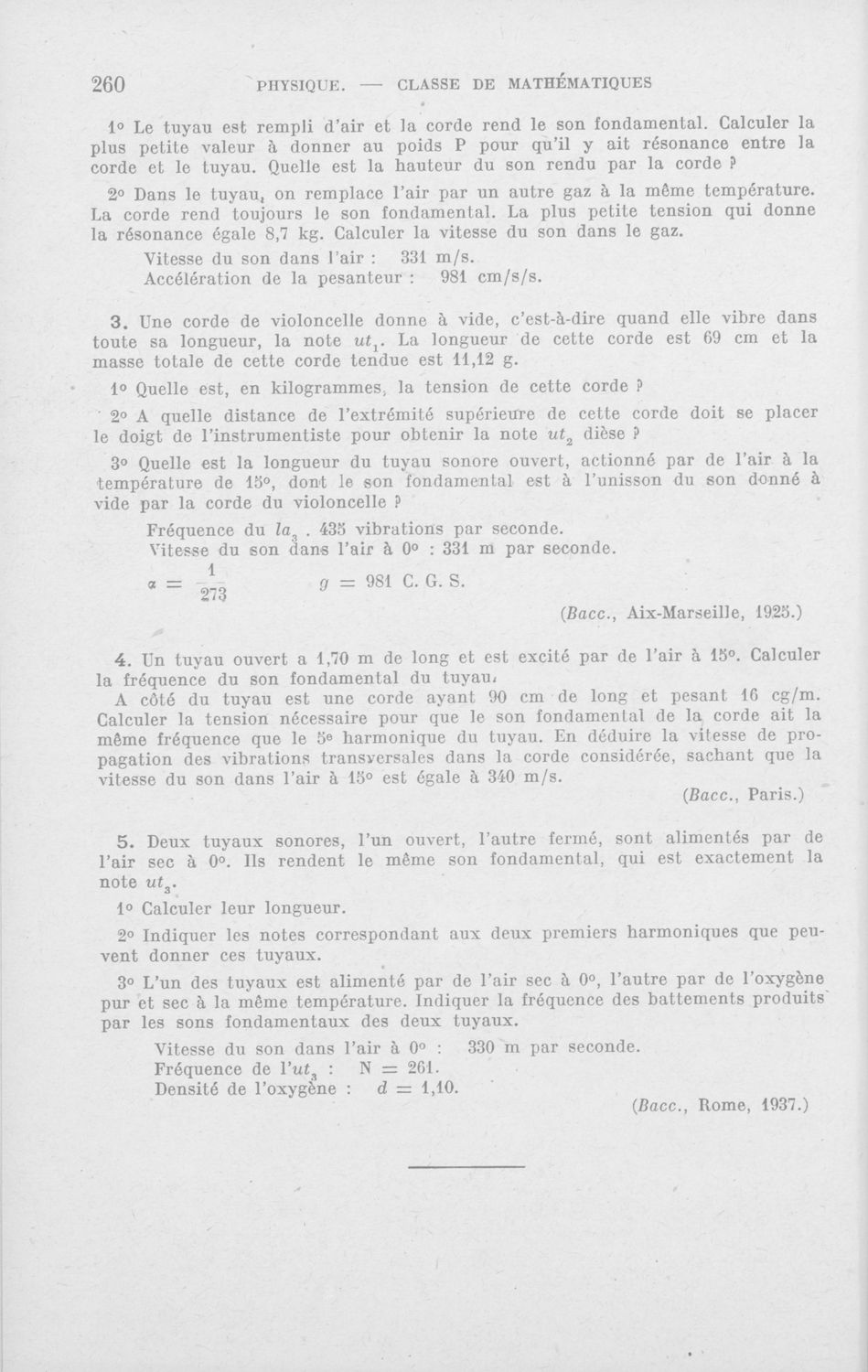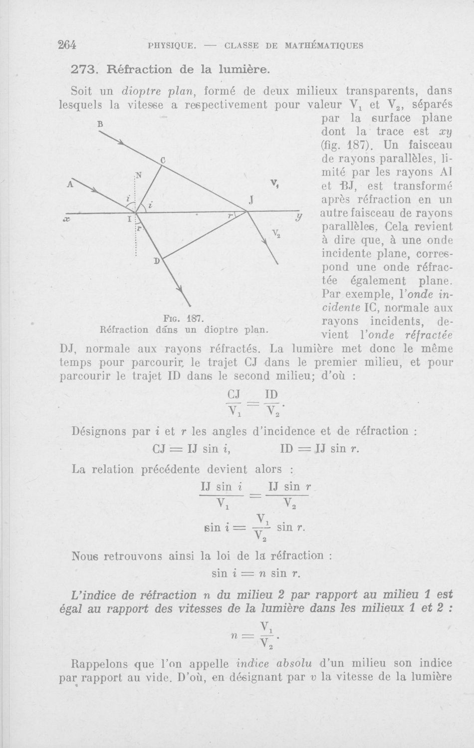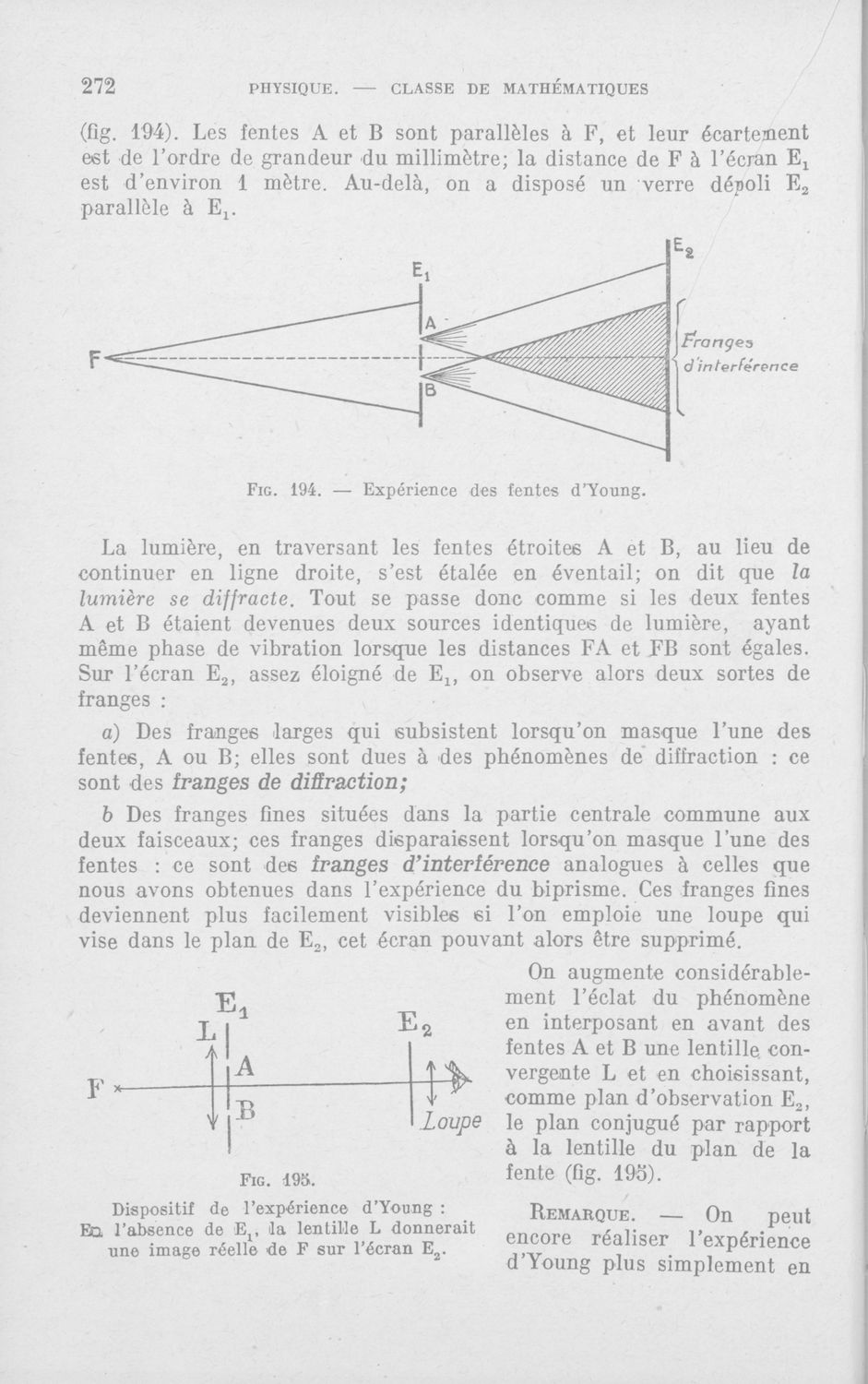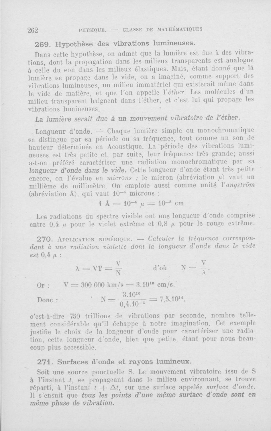 Physique : classe de mathematiques programme du 18 Avril 1947