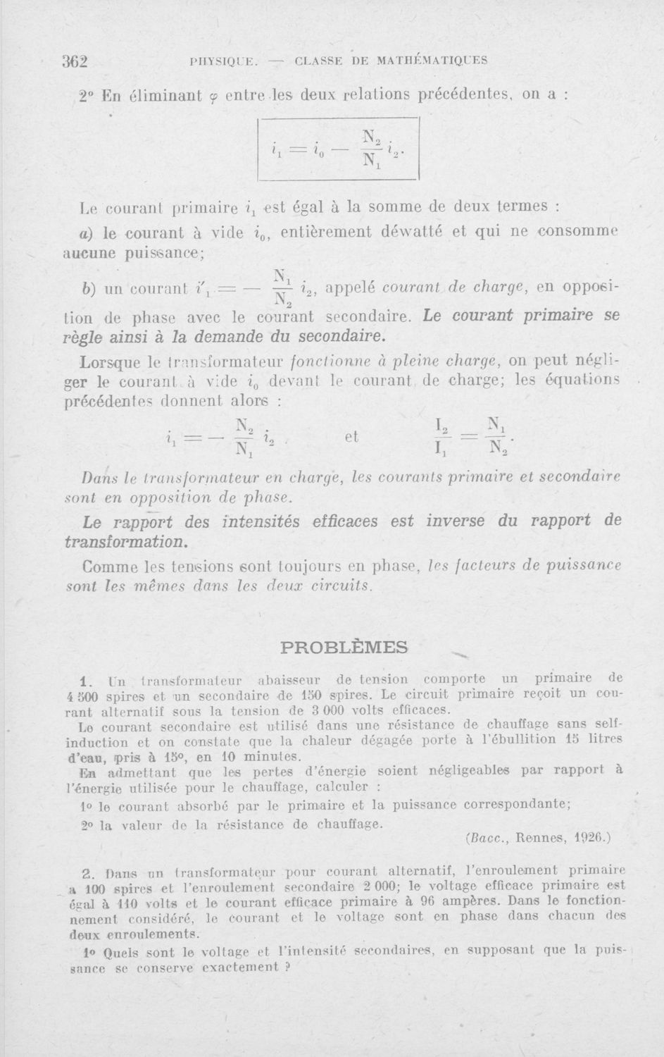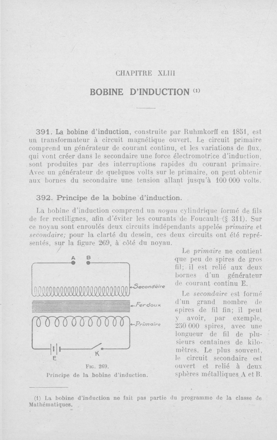Physique : classe de mathematiques programme du 18 Avril 1947