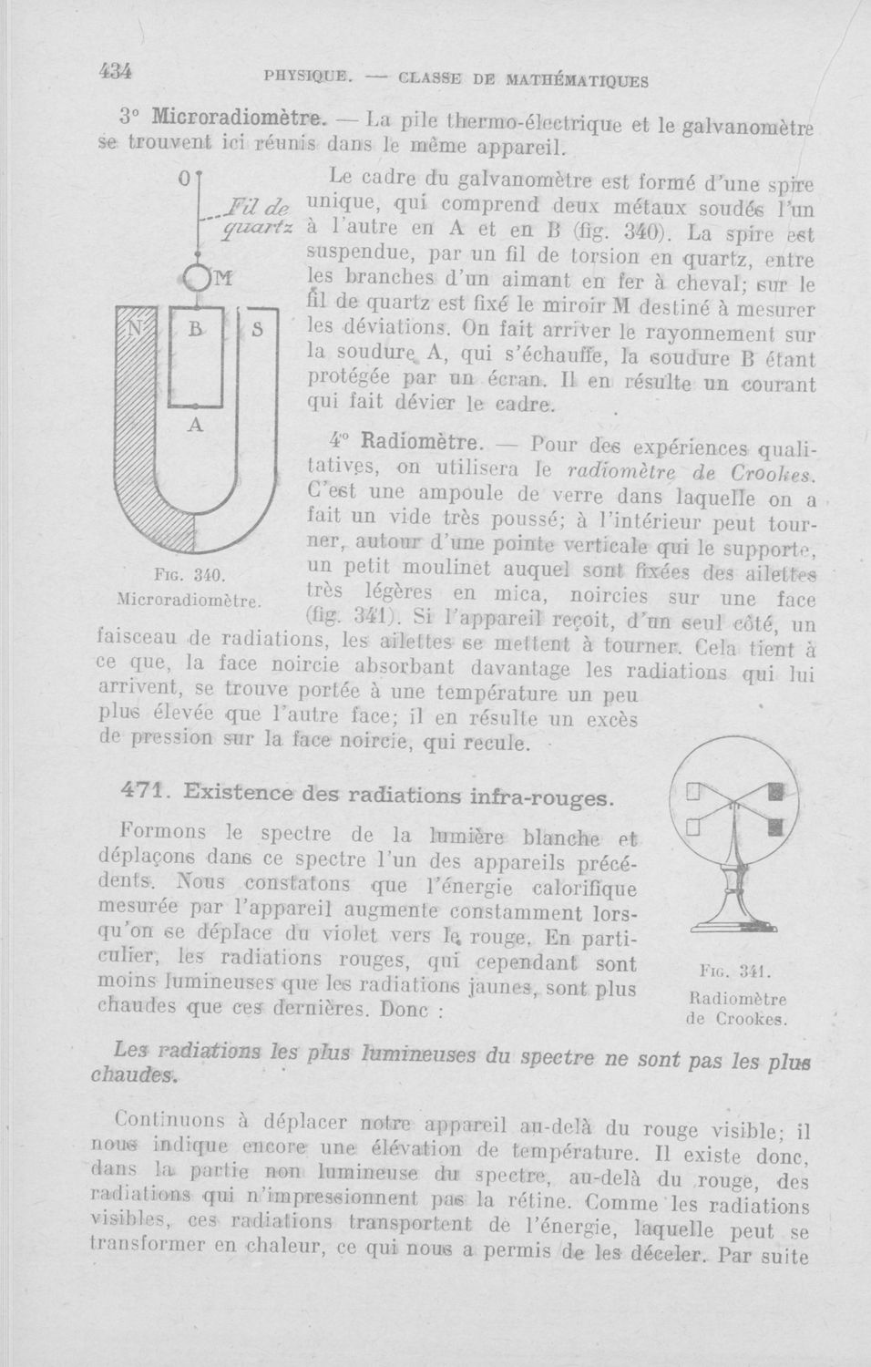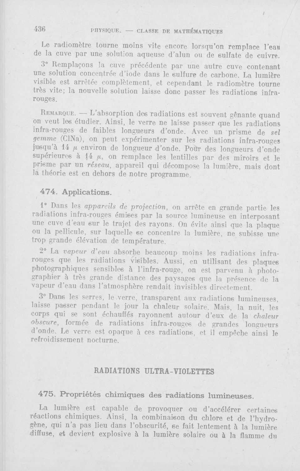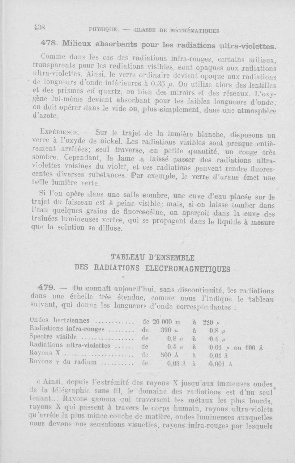 Physique : classe de mathematiques programme du 18 Avril 1947