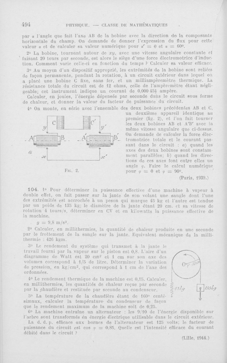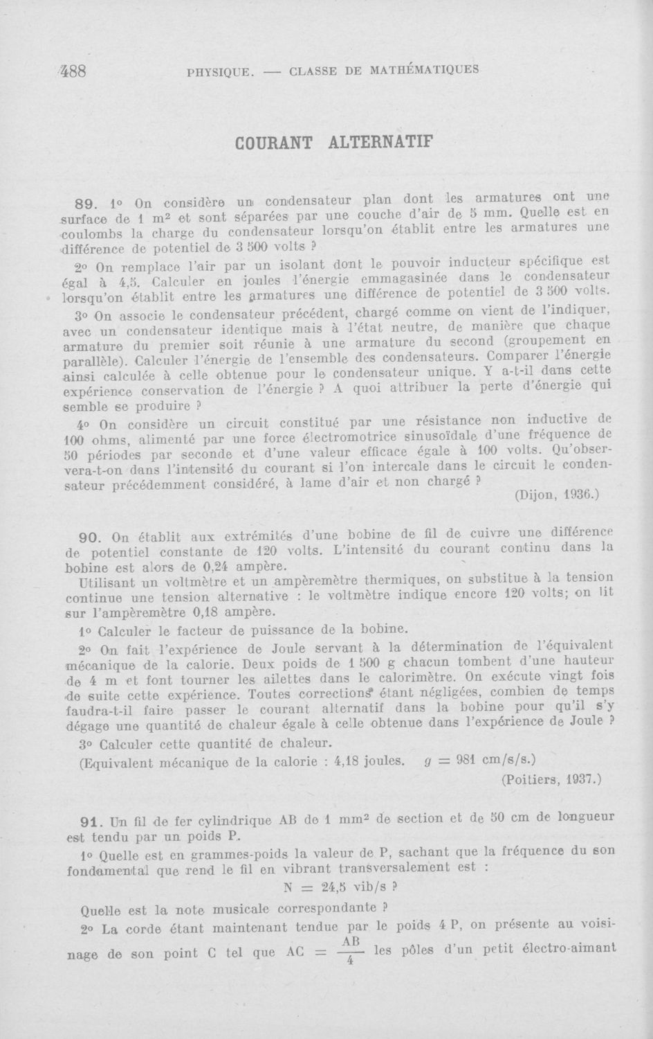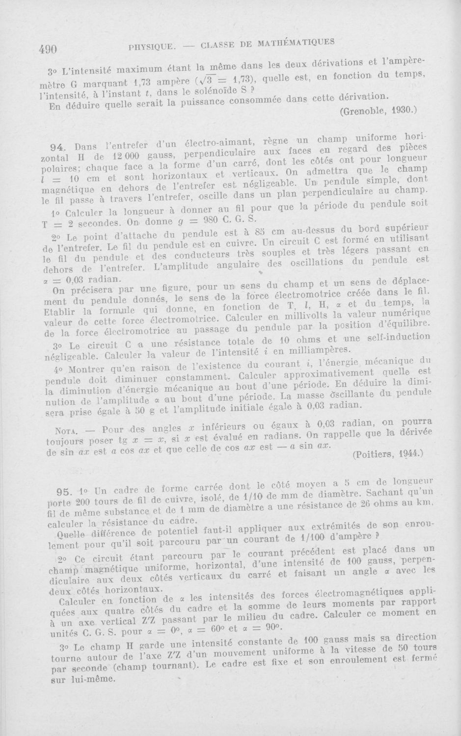 Physique : classe de mathematiques programme du 18 Avril 1947