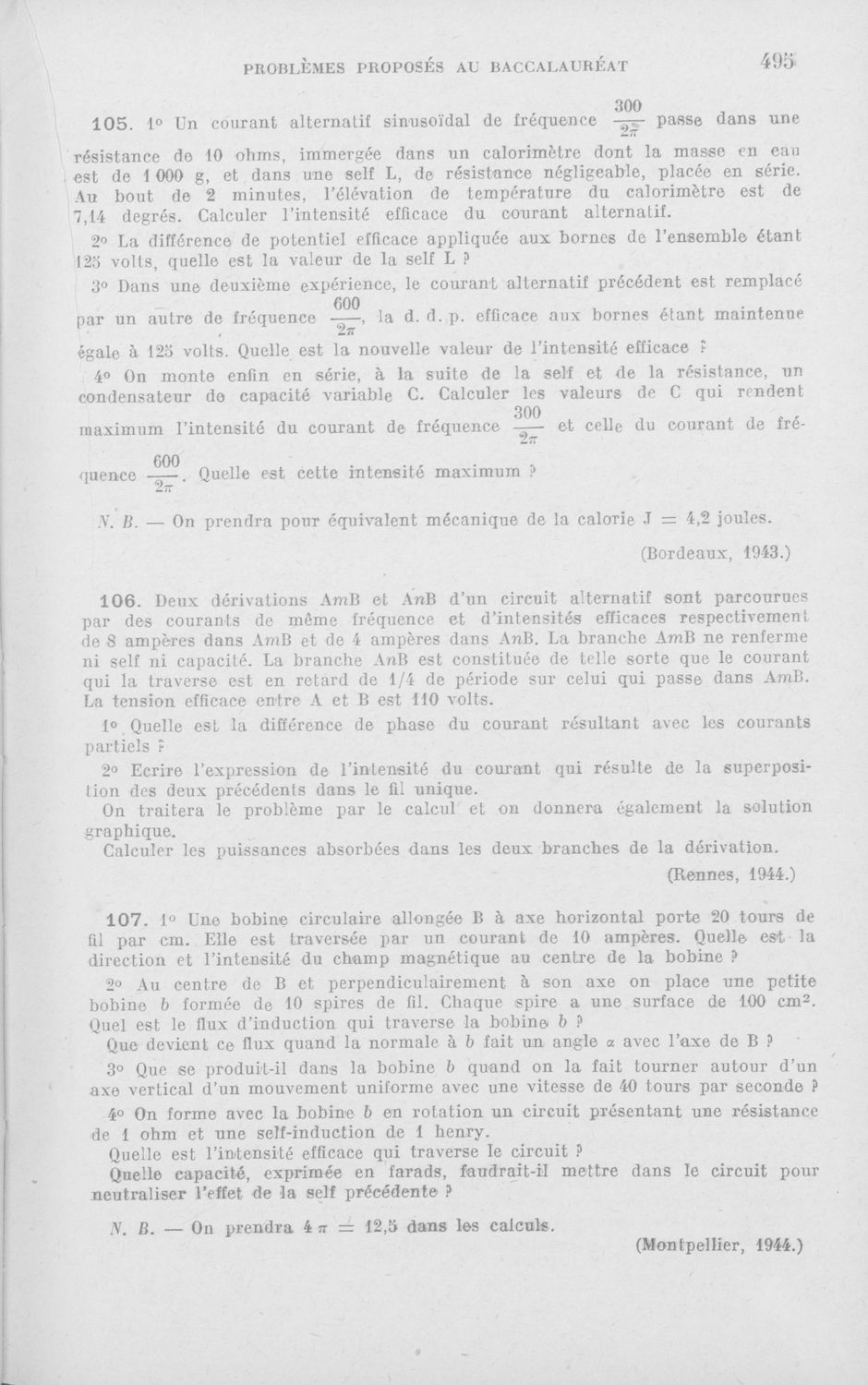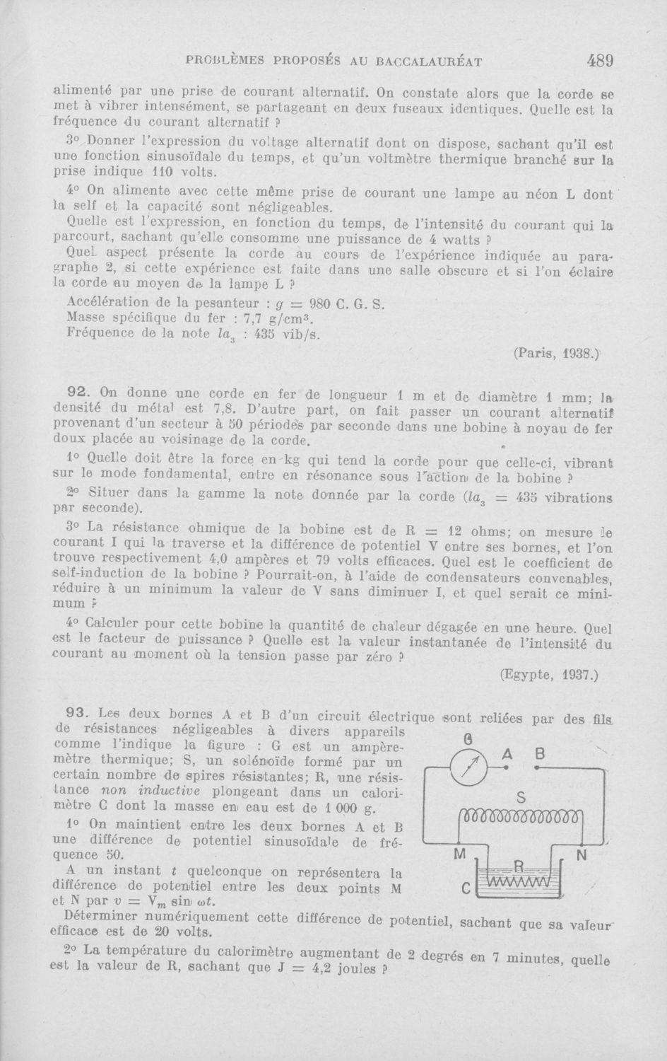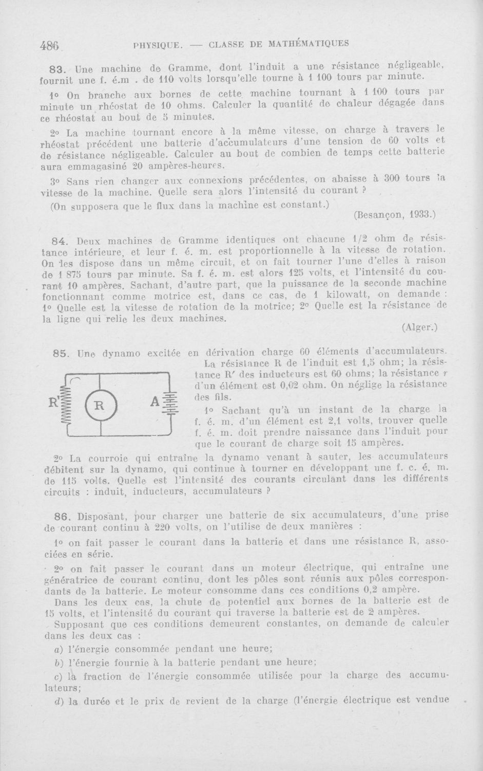 Physique : classe de mathematiques programme du 18 Avril 1947