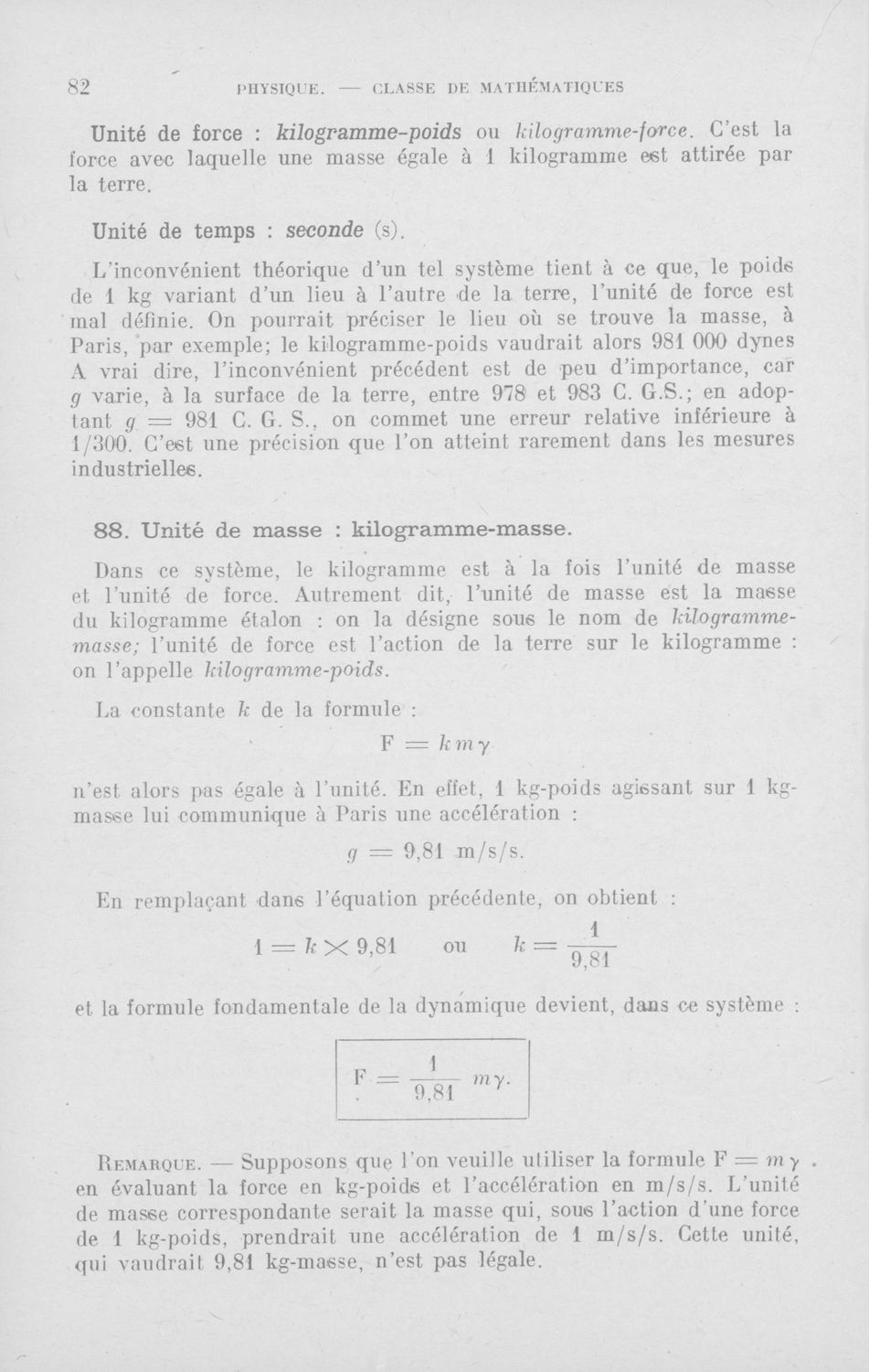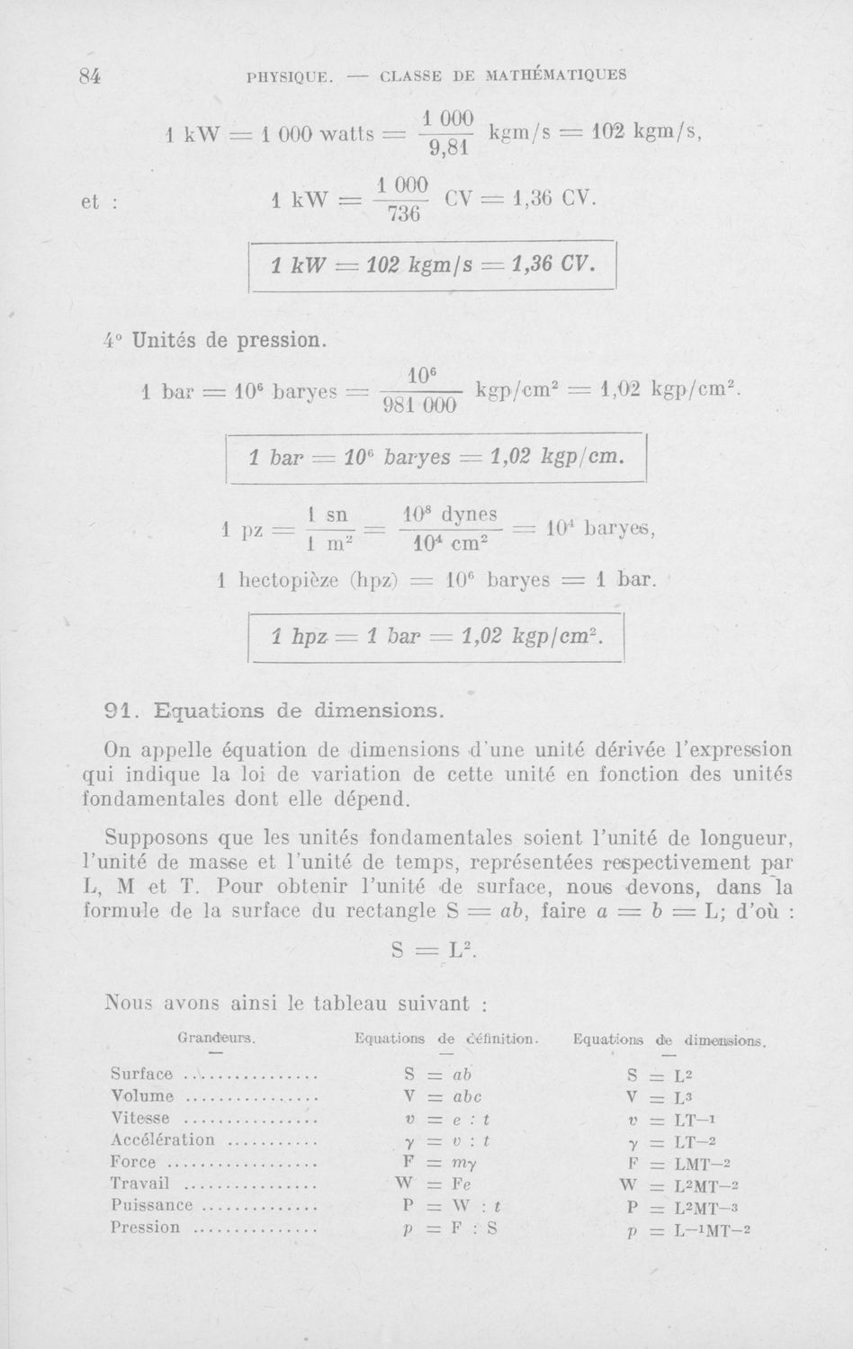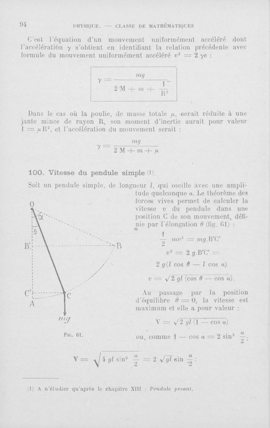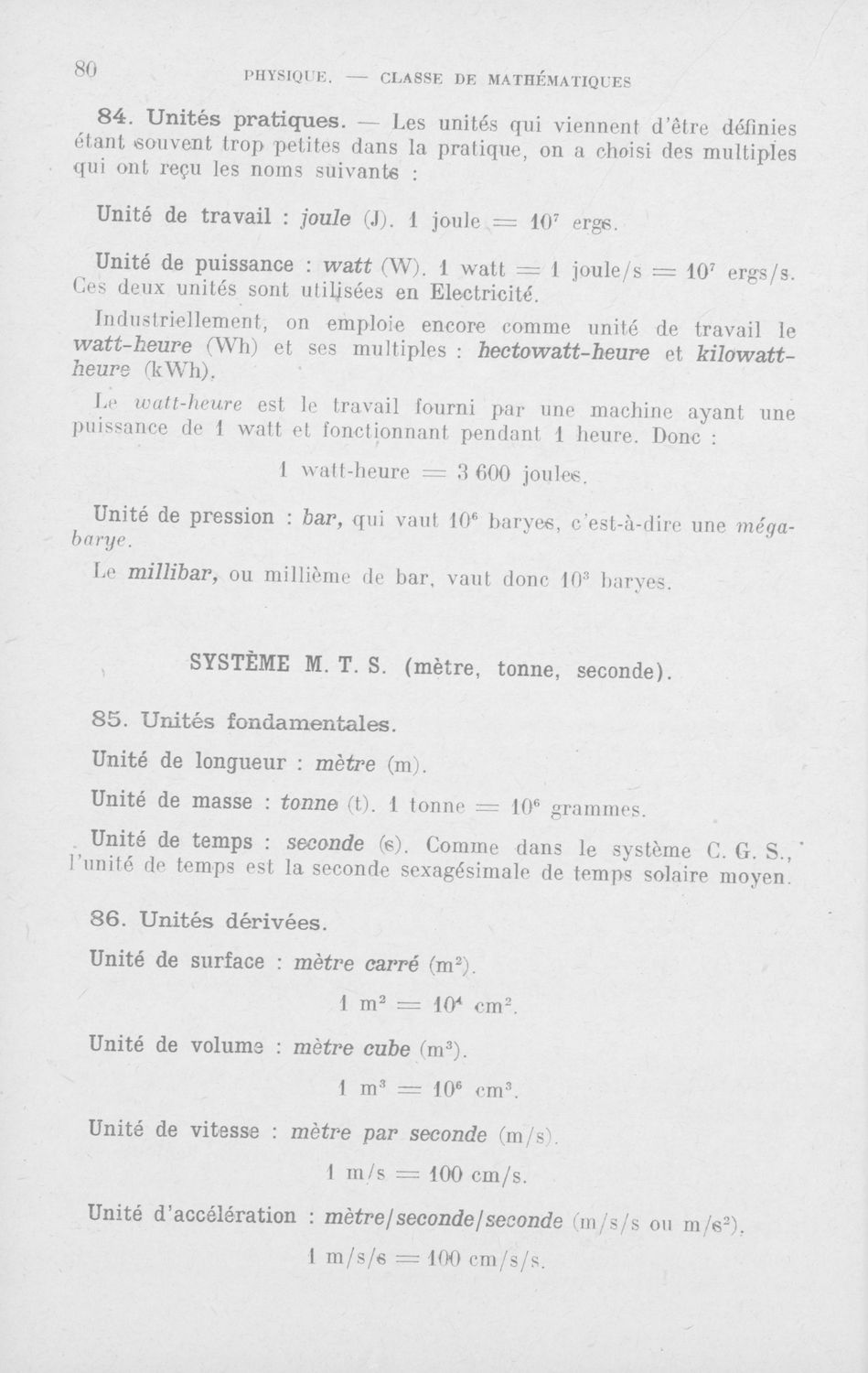 Physique : classe de mathematiques programme du 18 Avril 1947