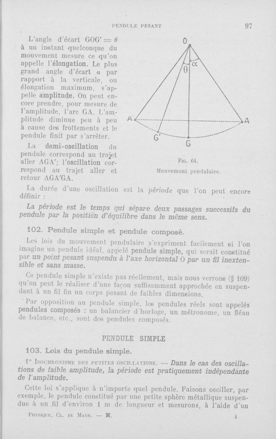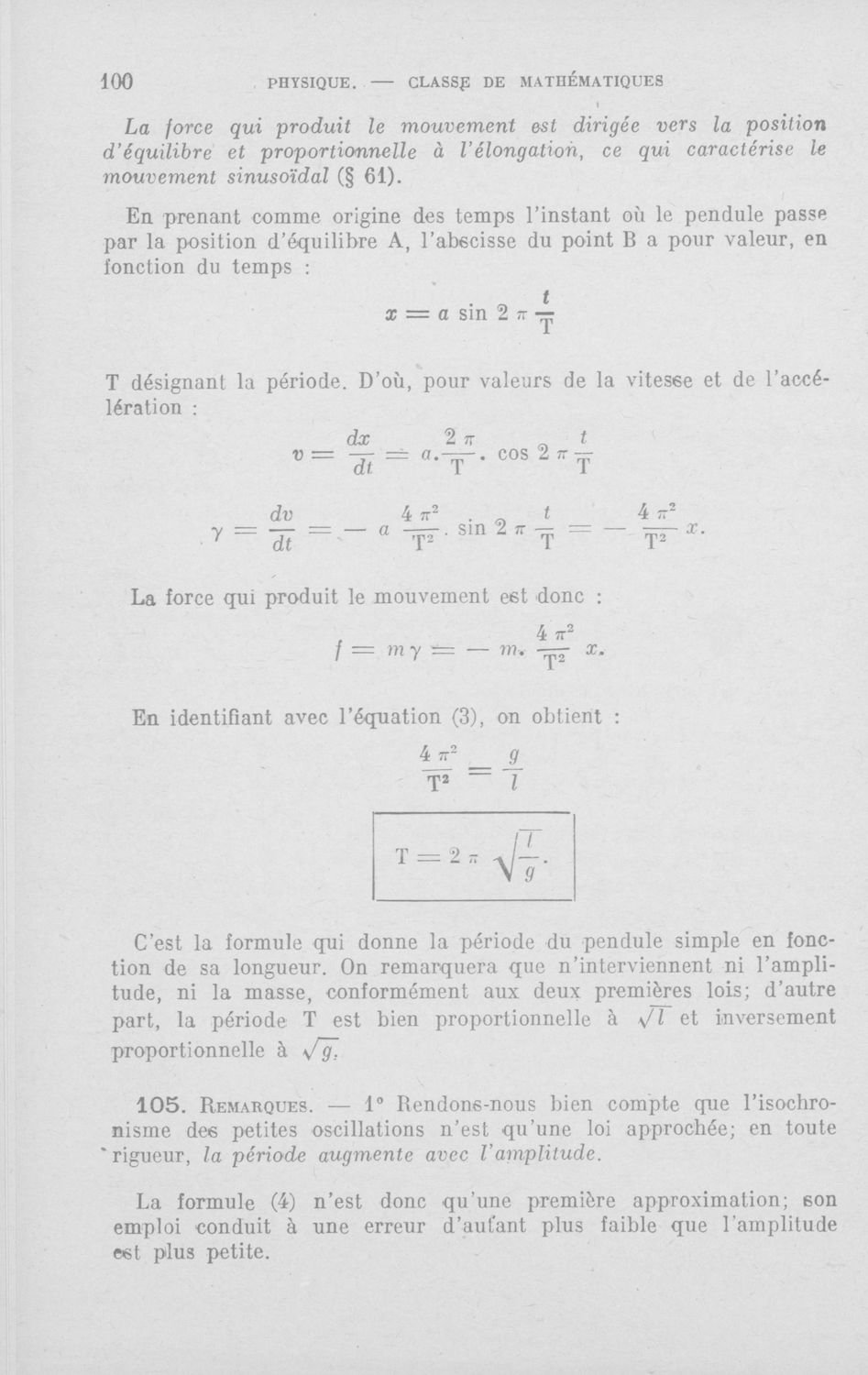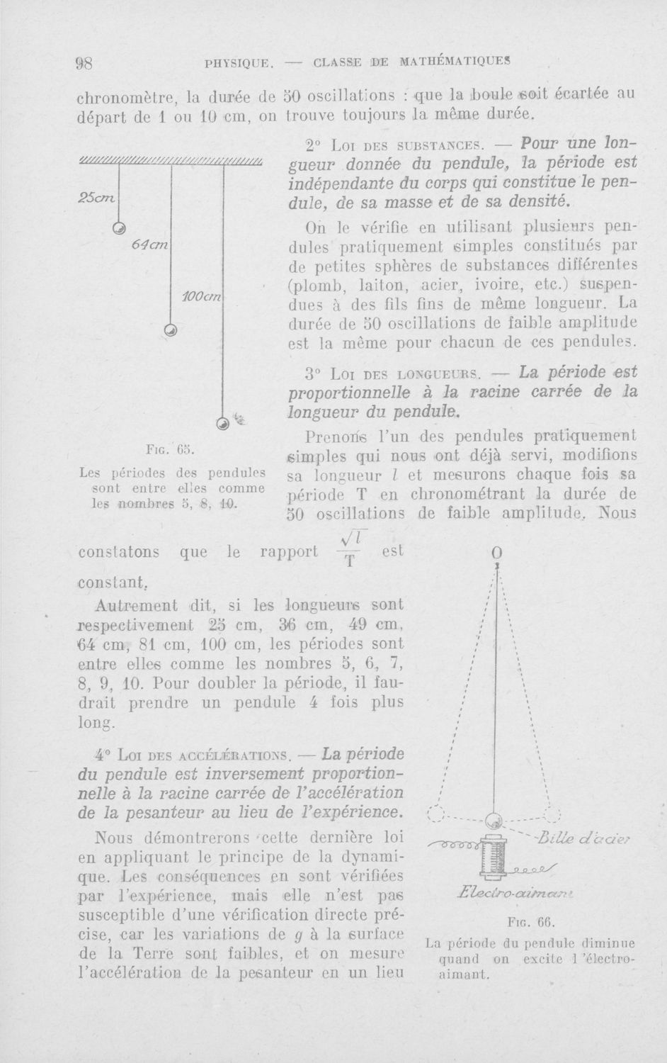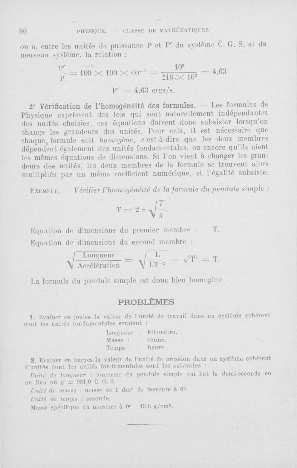 Physique : classe de mathematiques programme du 18 Avril 1947