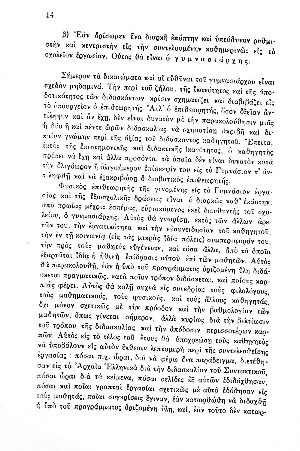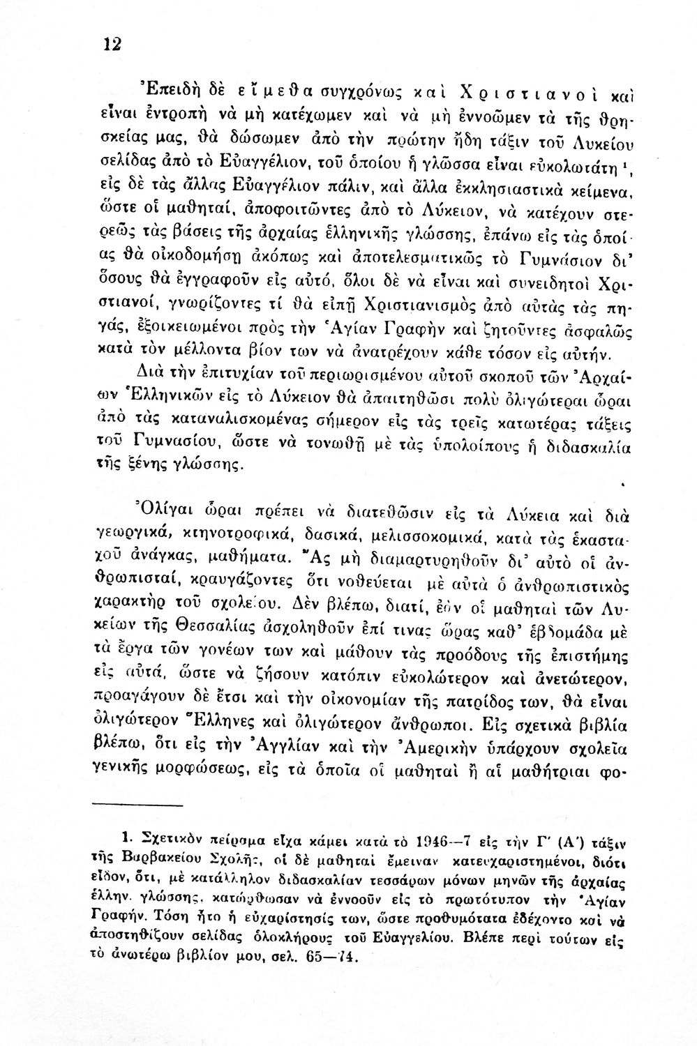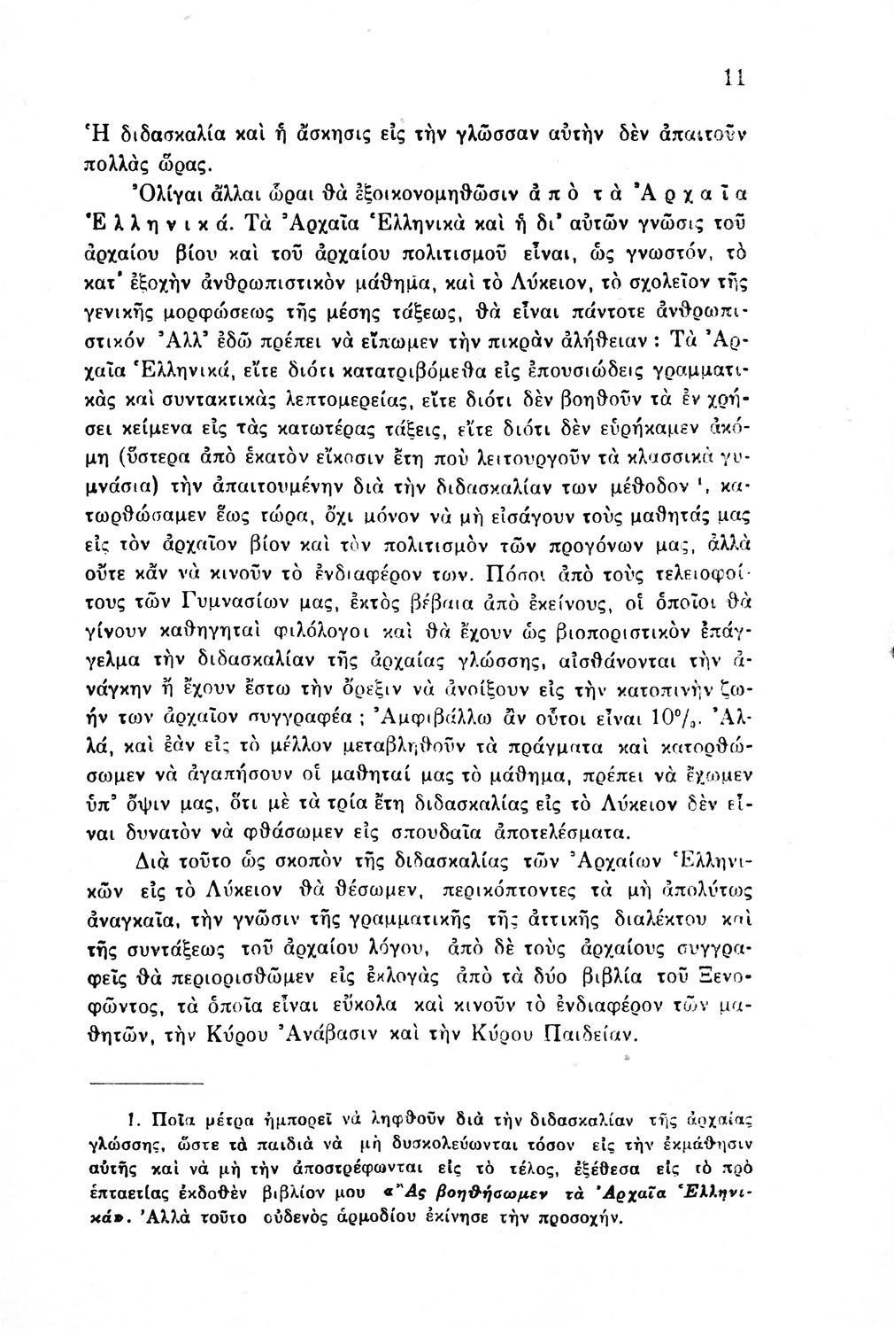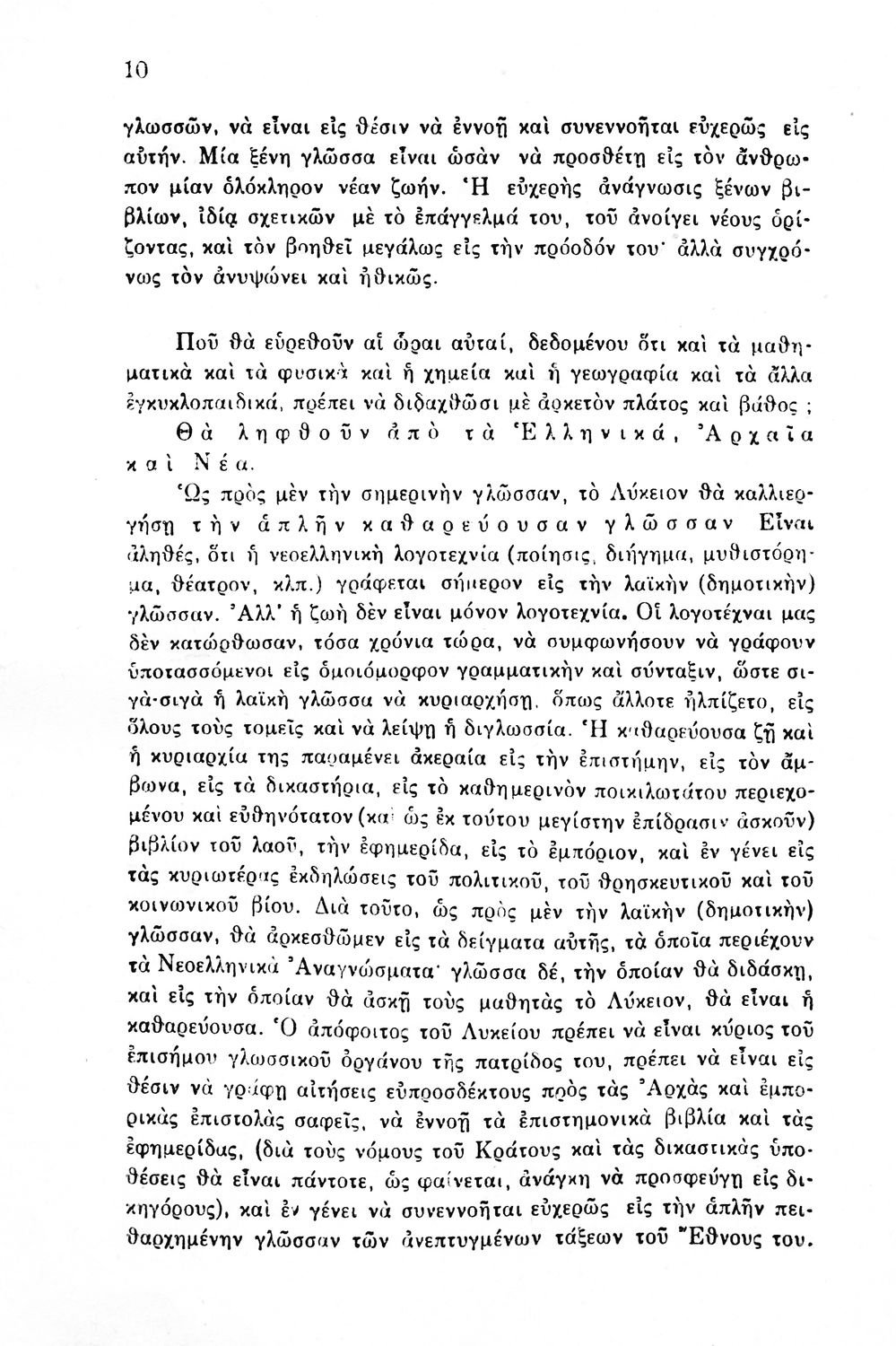 Γλώσσα: Καθαρεύουσα Παρουσίαση περιεχομένου: Ανάτυπο άρθρου που δημοσιεύτηκε στην εφημερίδα Έθνος το Σεπτέμβρη του1953 και προτείνει την επανίδρυση των Ελληνικών Σχολείων που είχαν καταργηθεί το 1928 και τη θεσμοθέτηση αυστηρών εξετάσεων για την εισαγωγή στα Γυμνάσια. |