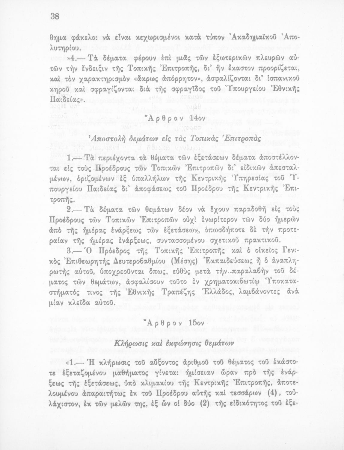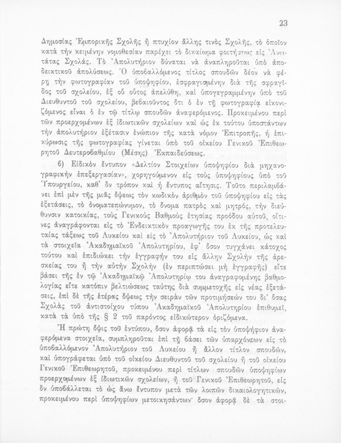 Τίτλος: Ακαδημαϊκόν Απολυτήριον, τρόπος διενέργειας εξετάσεων και επιλογής υποψηφίων δια τας ανωτάτας σχολάς τεύχος Β΄