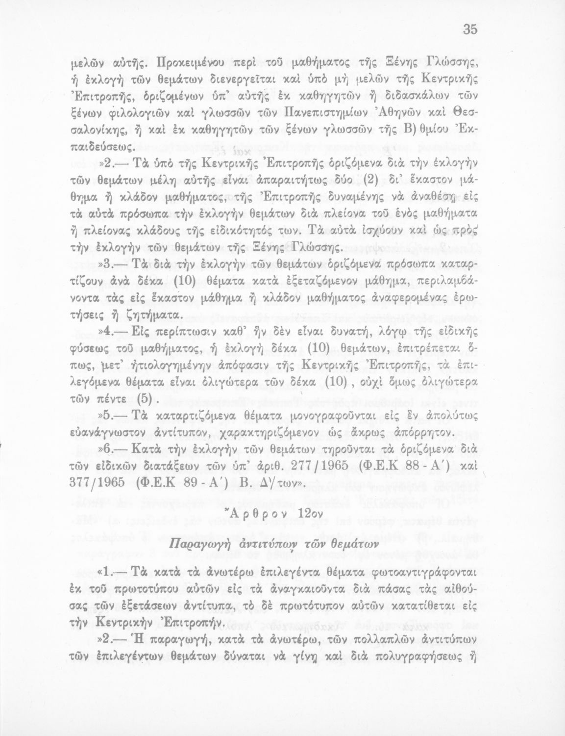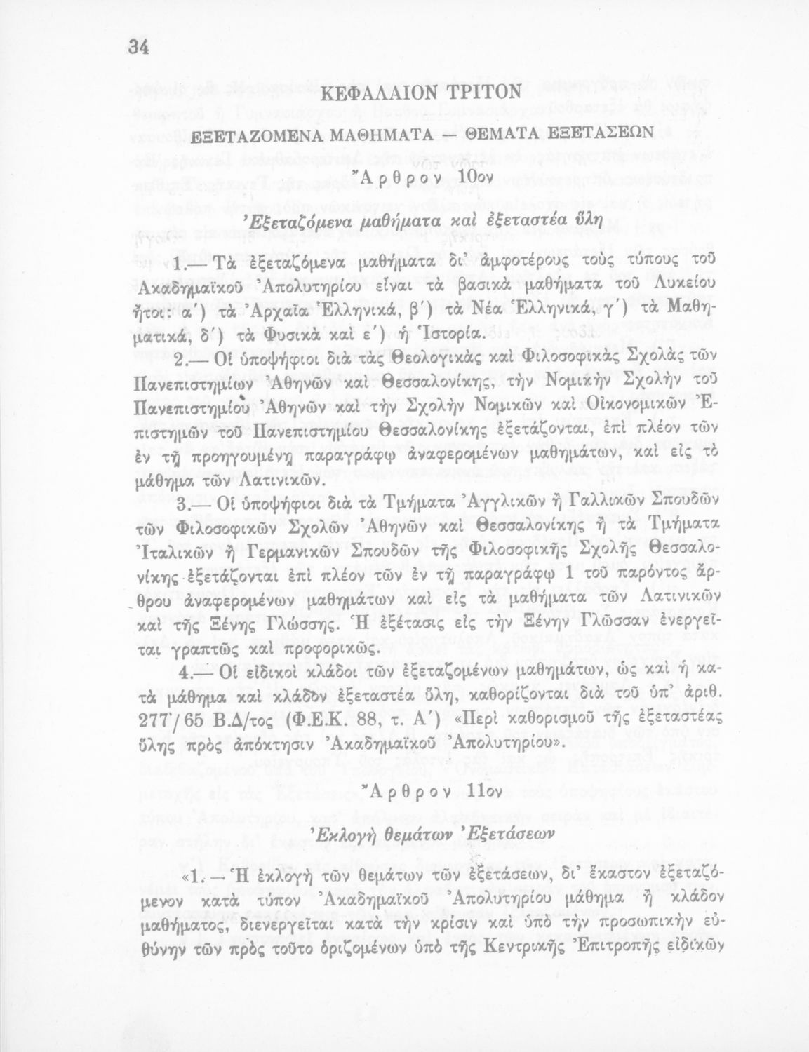 Έκδοση του Υπουργείου Εθνικής Παιδείας και Θρησκευμάτων που καθορίζει την εξεταστέα ύλη για την απόκτηση του ακαδημαϊκού απολυτηρίου και τον τρόπο διενέργειας εξετάσεων και επιλογής υποψηφίων για τις ανώτατες σχολές.