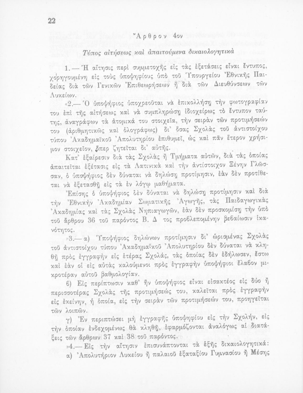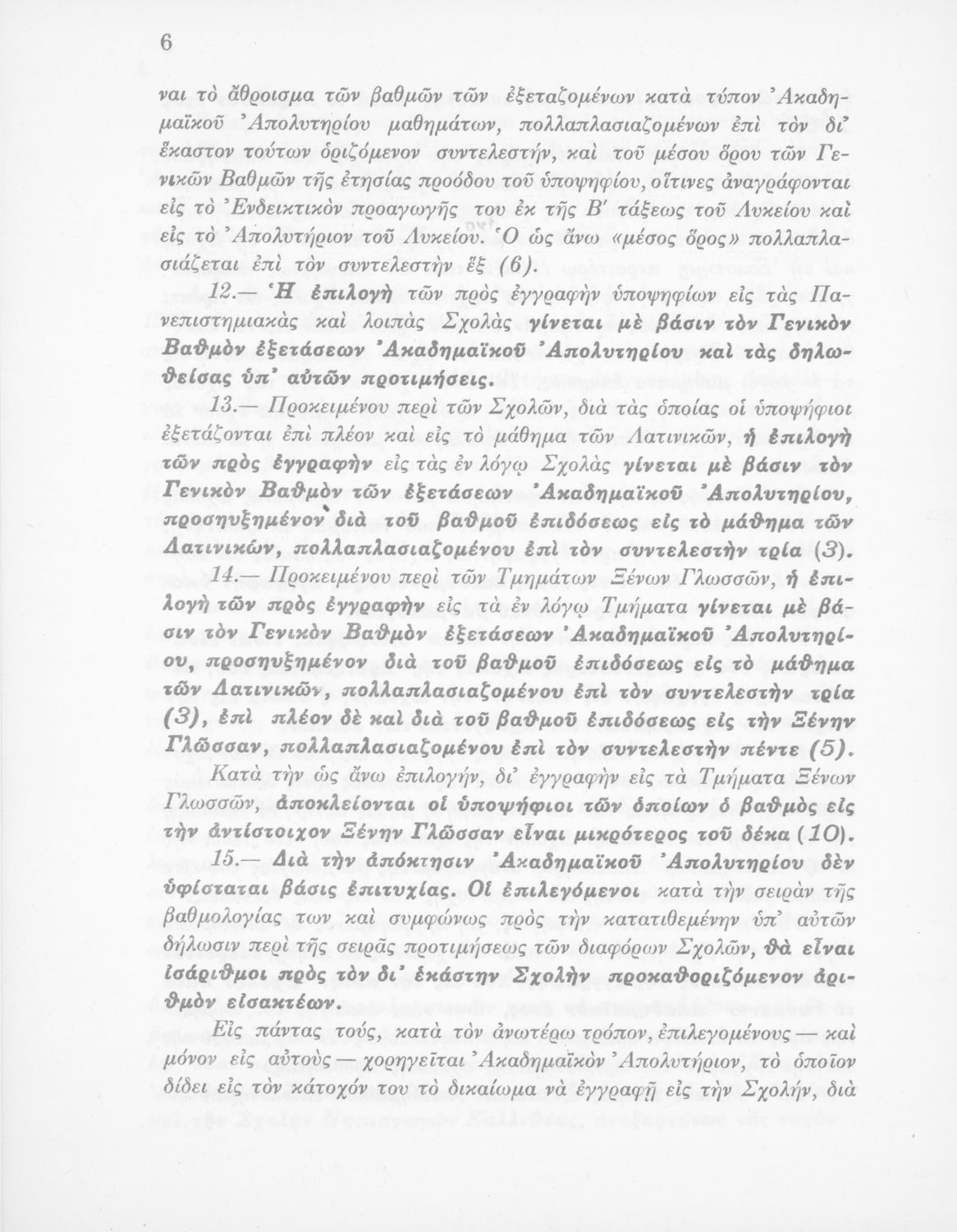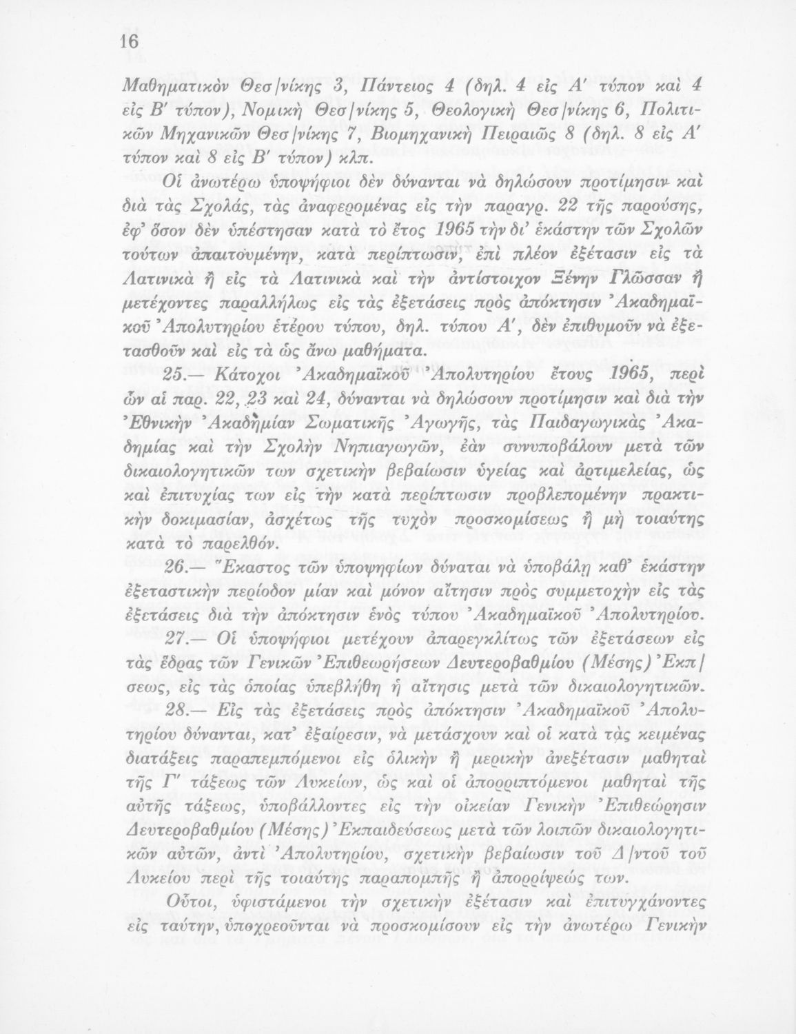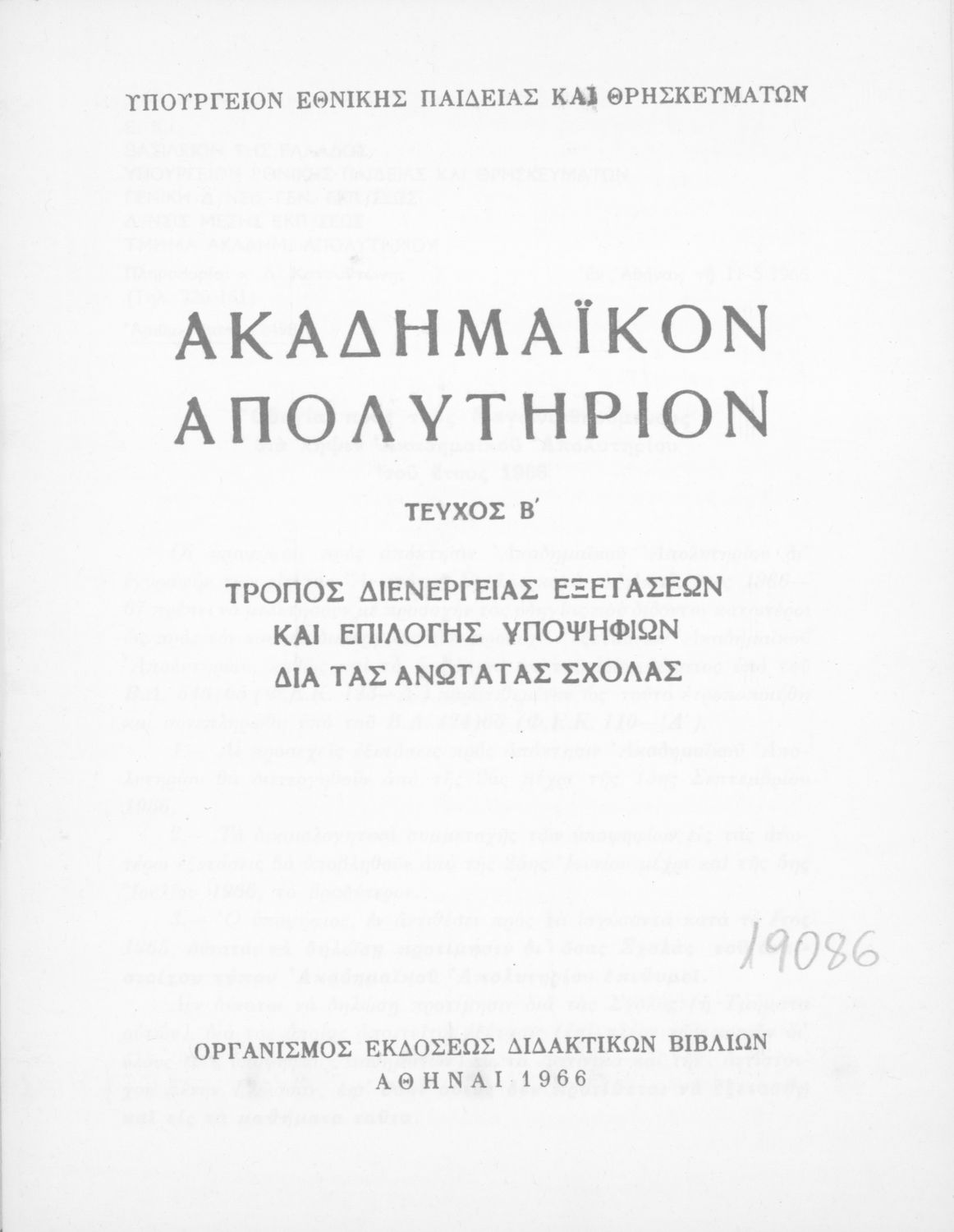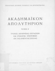 Έκδοση του Υπουργείου Εθνικής Παιδείας και Θρησκευμάτων που καθορίζει την εξεταστέα ύλη για την απόκτηση του ακαδημαϊκού απολυτηρίου και τον τρόπο διενέργειας εξετάσεων και επιλογής υποψηφίων για τις ανώτατες σχολές.