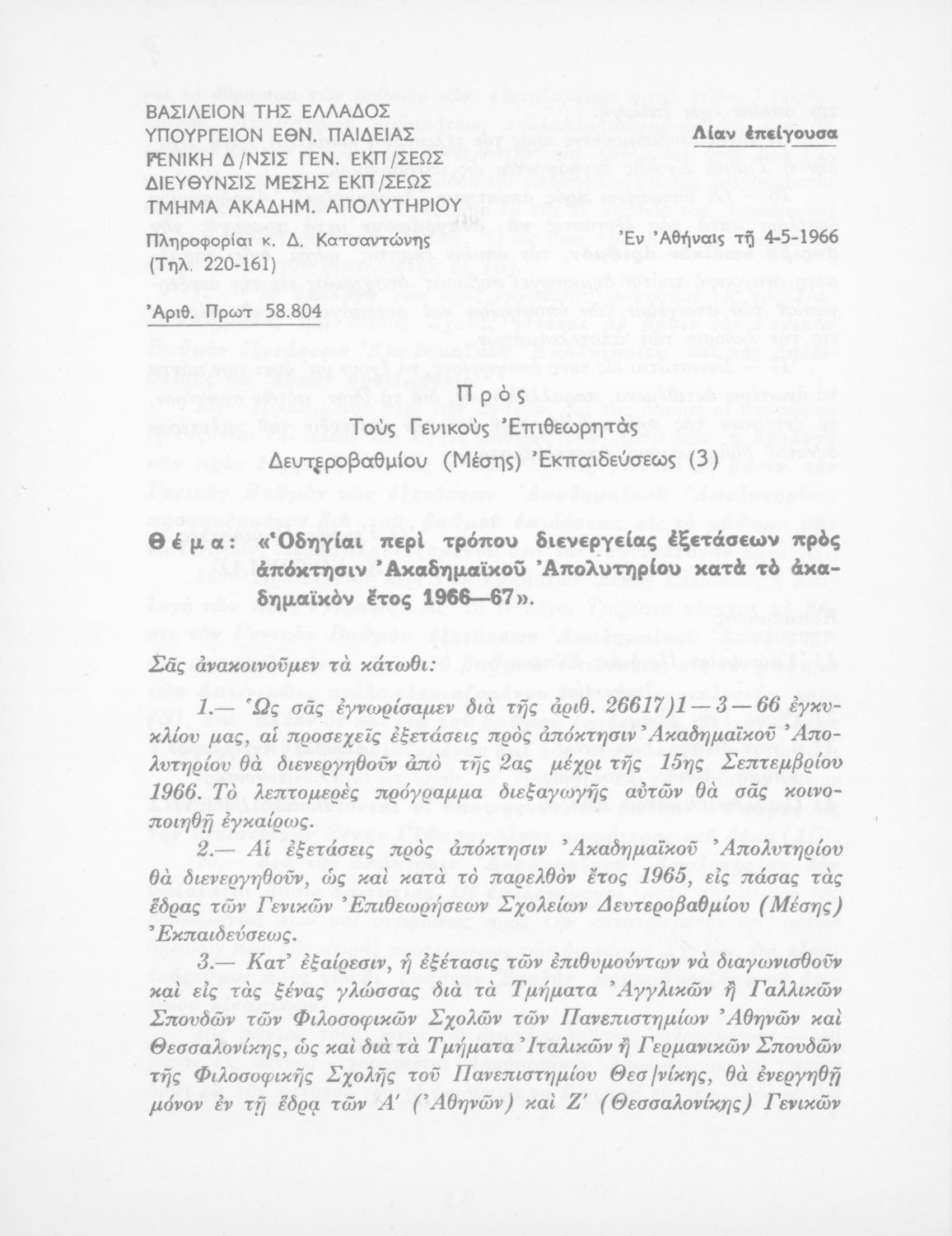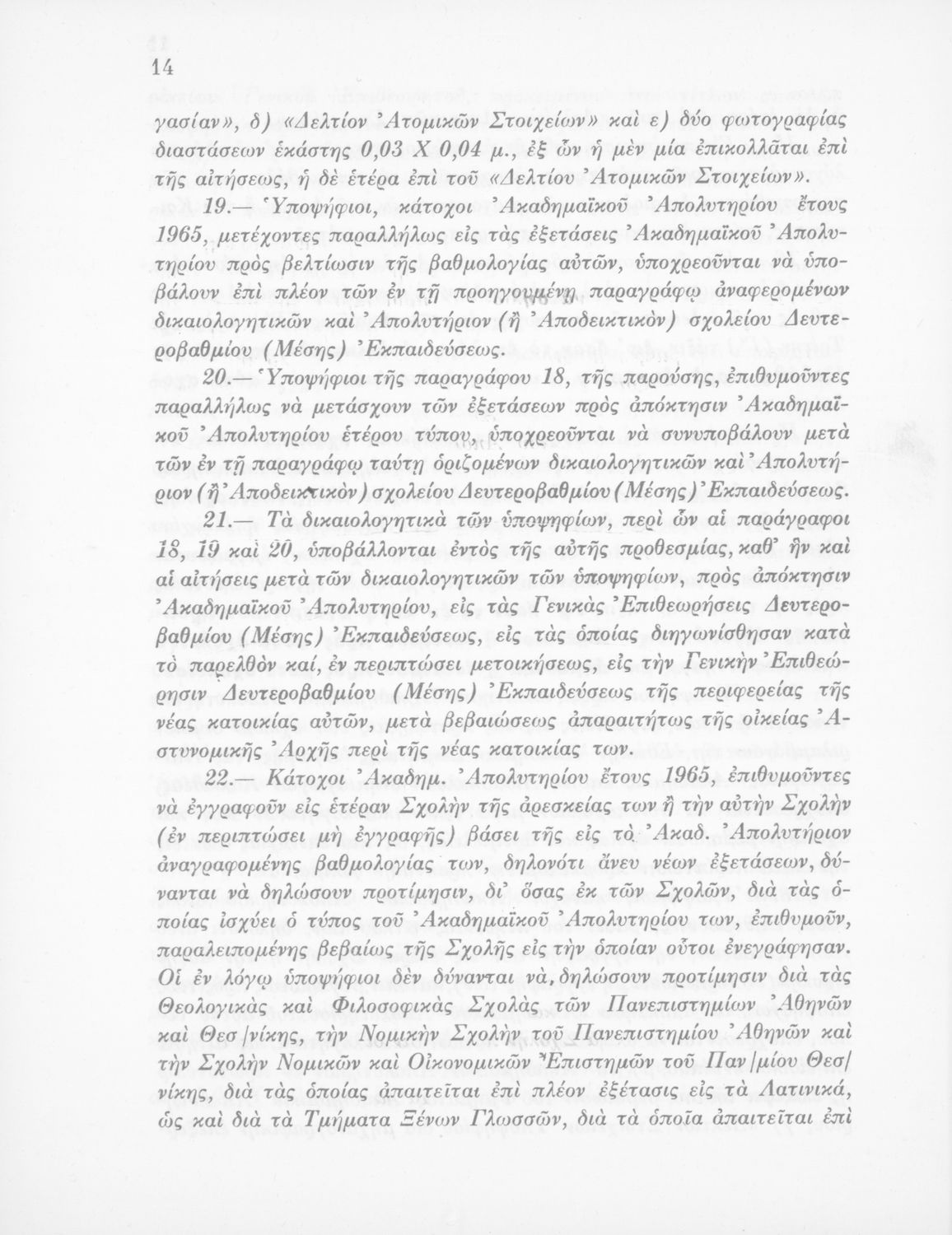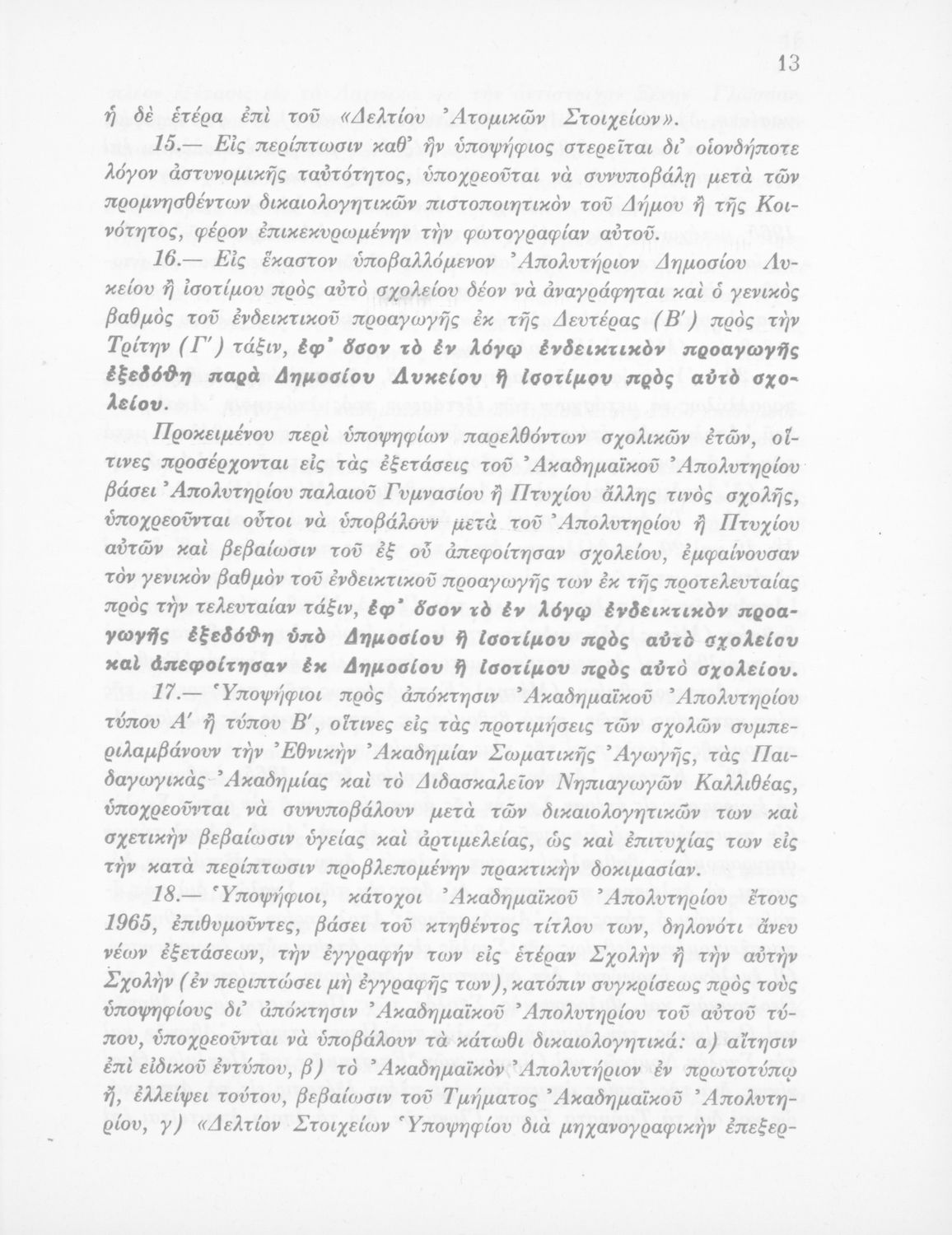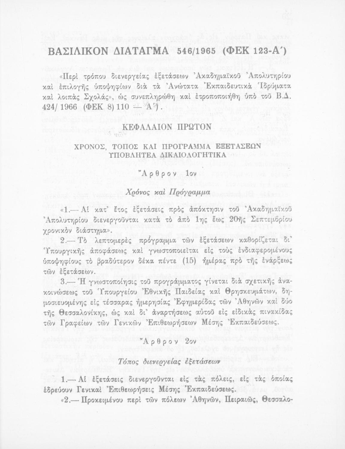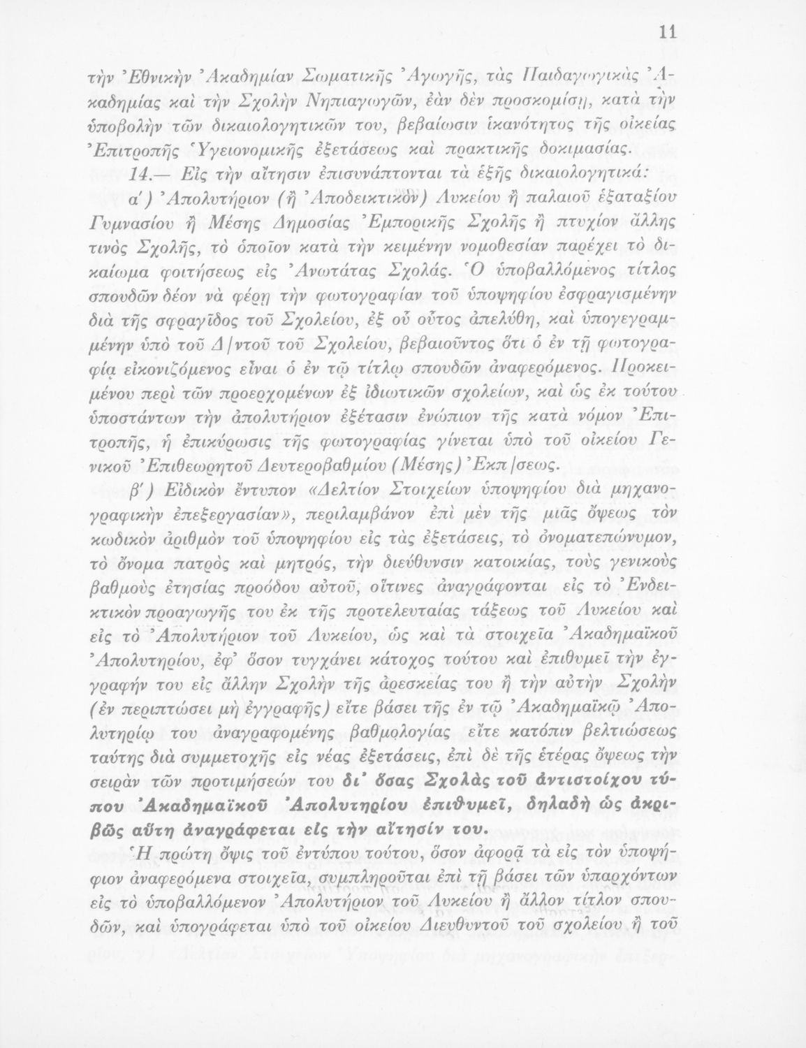 Έκδοση του Υπουργείου Εθνικής Παιδείας και Θρησκευμάτων που καθορίζει την εξεταστέα ύλη για την απόκτηση του ακαδημαϊκού απολυτηρίου και τον τρόπο διενέργειας εξετάσεων και επιλογής υποψηφίων για τις ανώτατες σχολές.
