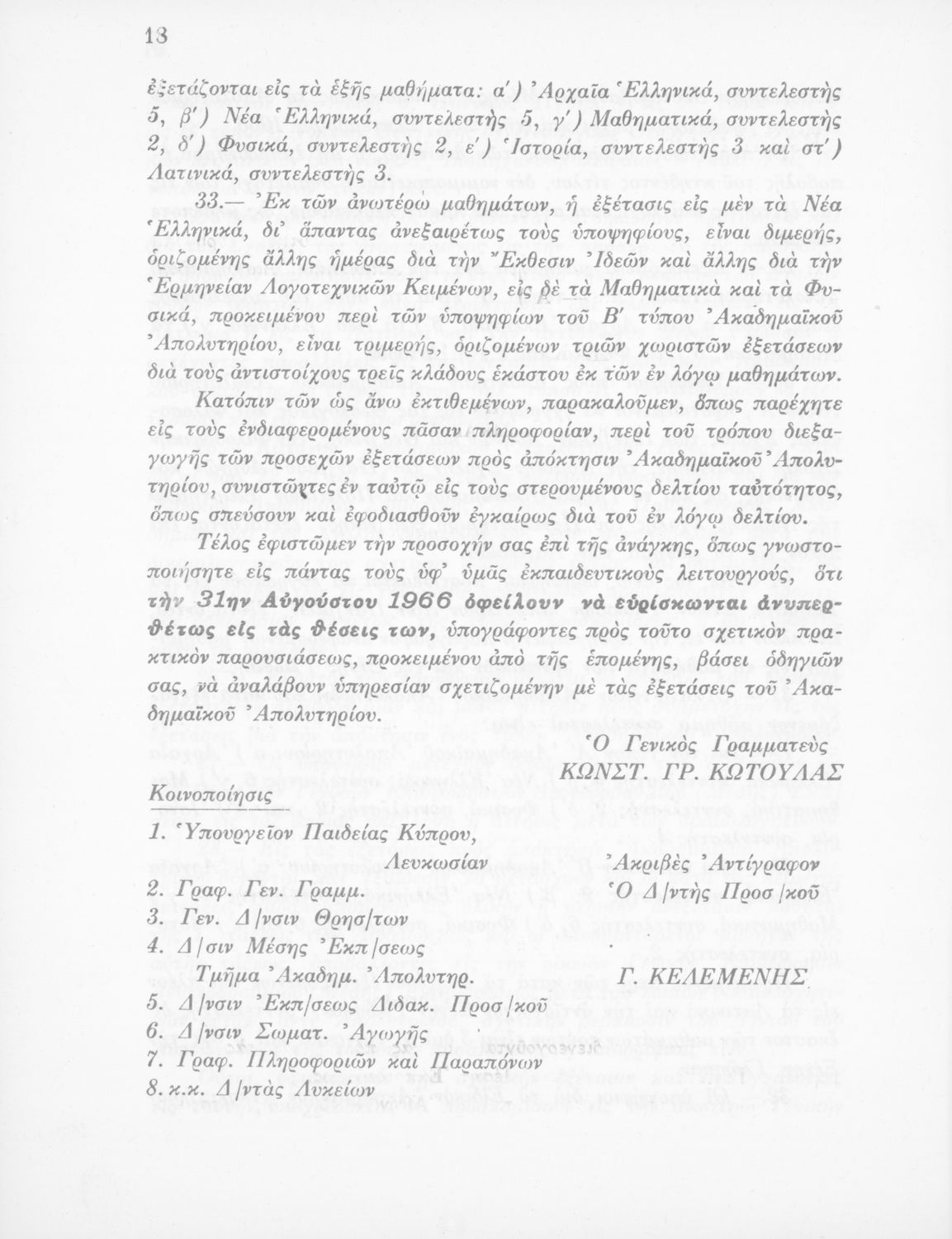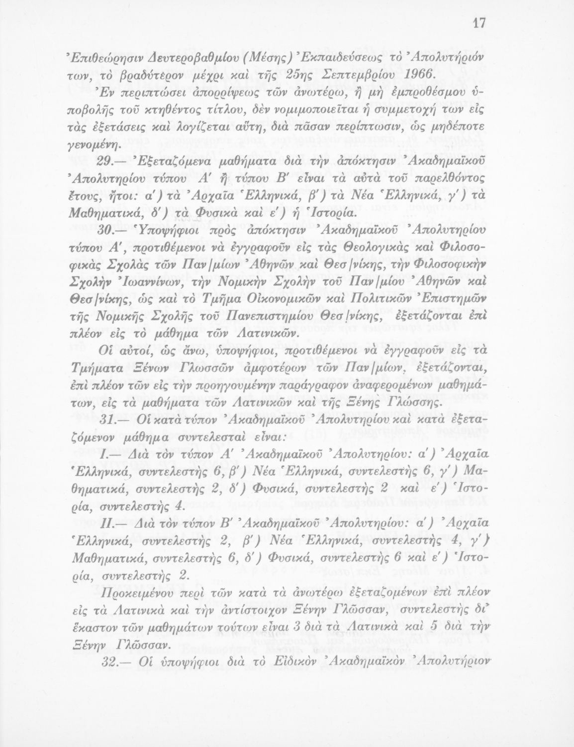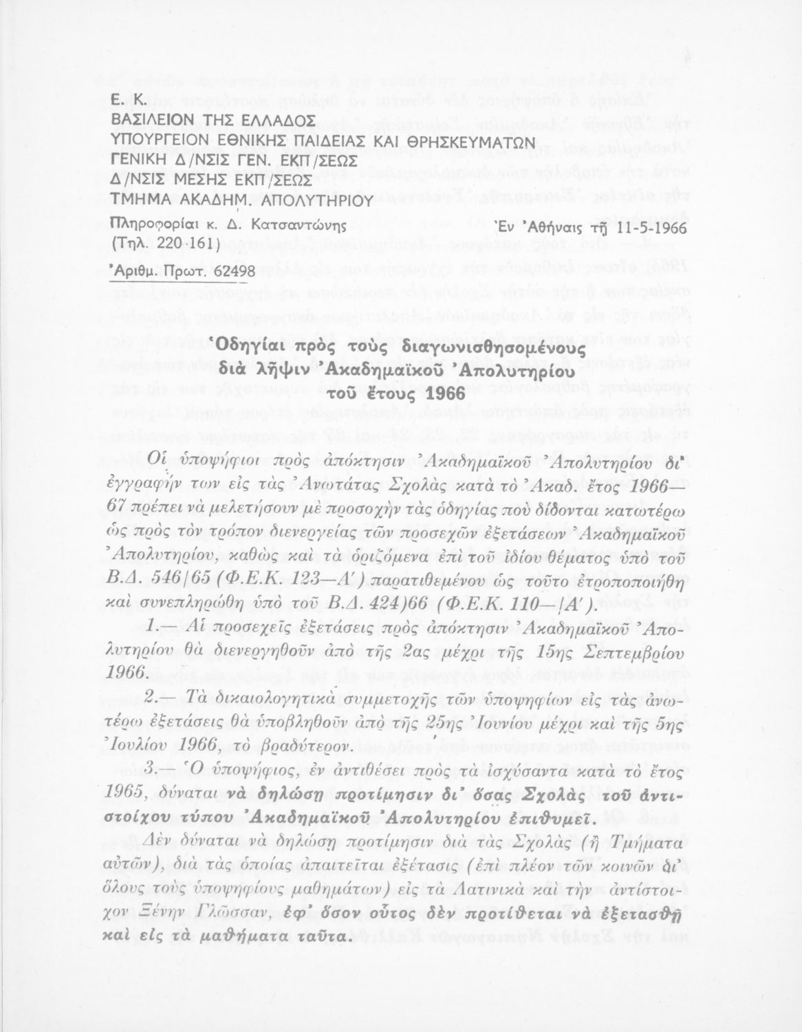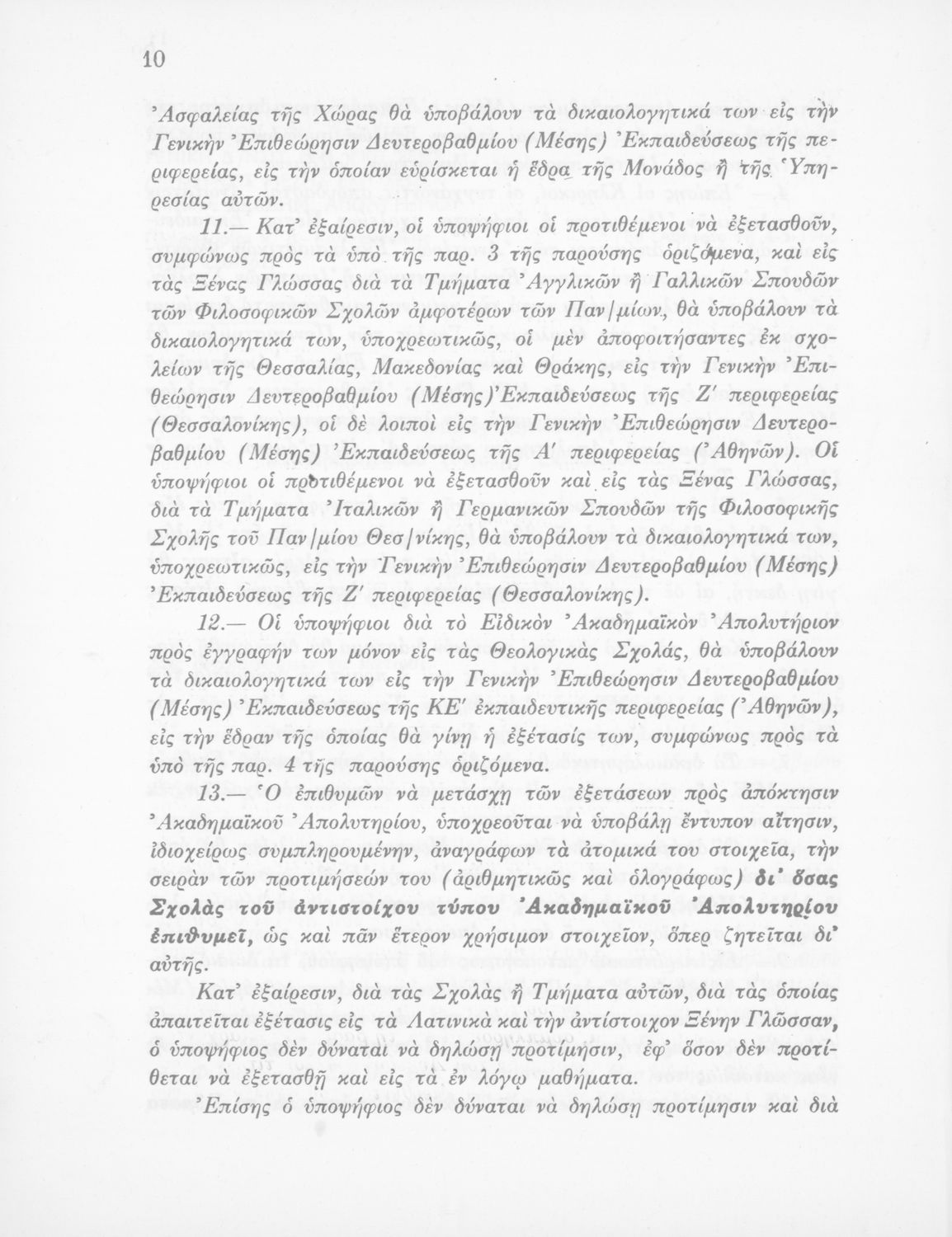 Έκδοση του Υπουργείου Εθνικής Παιδείας και Θρησκευμάτων που καθορίζει την εξεταστέα ύλη για την απόκτηση του ακαδημαϊκού απολυτηρίου και τον τρόπο διενέργειας εξετάσεων και επιλογής υποψηφίων για τις ανώτατες σχολές.