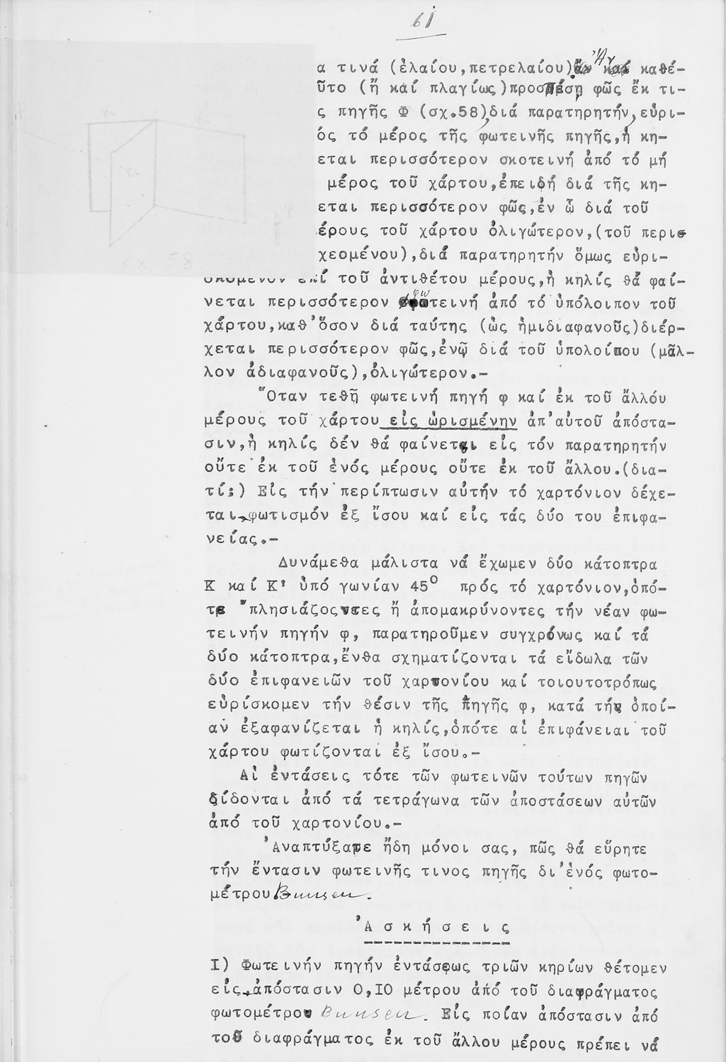 Μαθητικό βοήθημα για την ΣΤ΄ Γυμνασίου για το μάθημα της Φυσικής. Το σύγγραμμα ήταν πόνημα του συγγραφέα, το οποίο θα μπορούσε να χρησιμοποιηθεί από τους μαθητές του Γυμνασίου για το μάθημα της Φυσικής. Περιέχει βασικές γνώσεις φυσικής, όπως τις ιδιότητες του φωτός, ήχου, του ηλεκτρισμού κ.α.