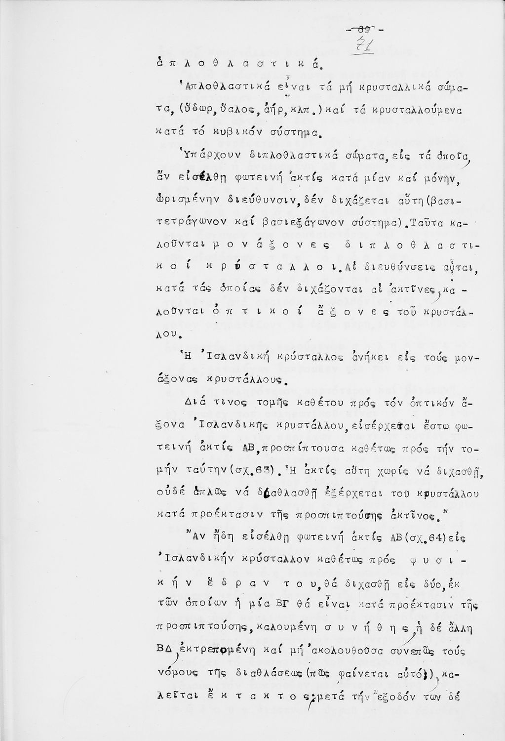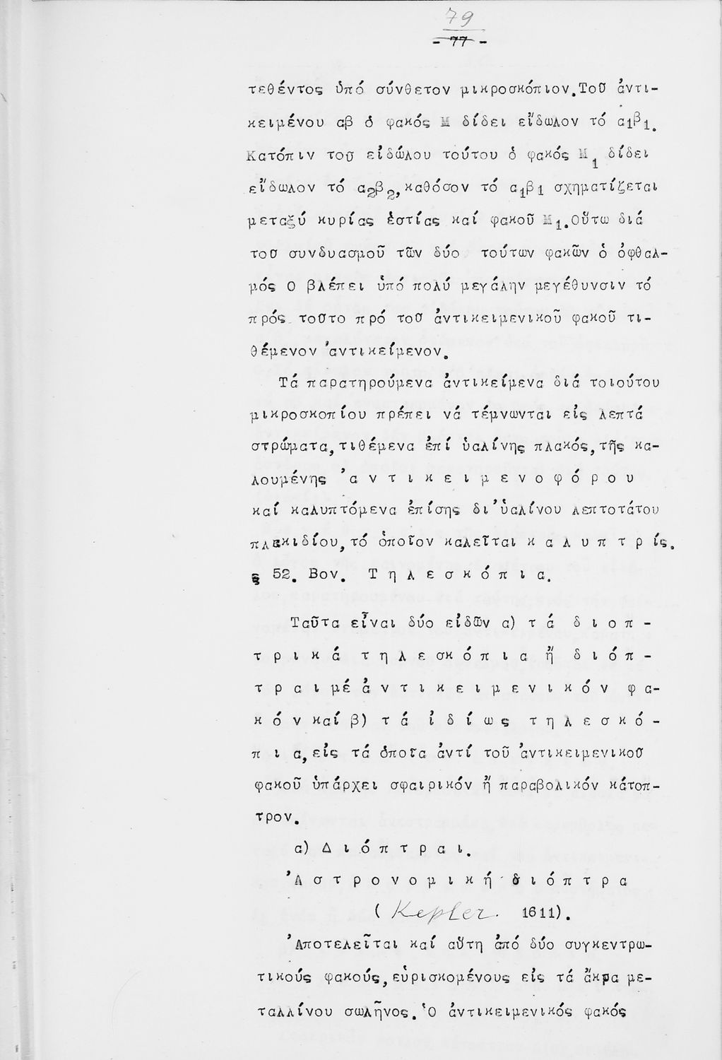 Βαθμίδα εκπαίδευσης: Δευτεροβάθμια Τάξη: ΣΤ' Γυμνασίου Μάθημα: Φυσική Γλώσσα: Απλή καθαρεύουσα Παρουσίαση περιεχομένου: Μαθητικό βοήθημα για την ΣΤ΄ Γυμνασίου για το μάθημα της Φυσικής. Το σύγγραμμα ήταν πόνημα του συγγραφέα, το οποίο θα μπορούσε να χρησιμοποιηθεί από τους μαθητές του Γυμνασίου για το μάθημα της Φυσικής. Περιέχει βασικές γνώσεις φυσικής, όπως τις ιδιότητες του φωτός, ήχου, του ηλεκτρισμού κ.α. |