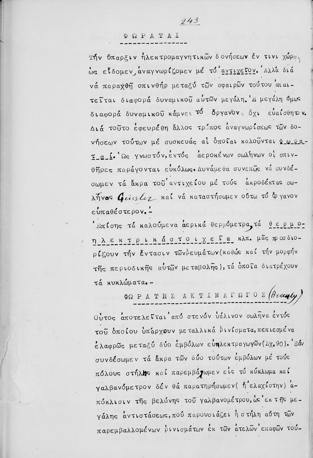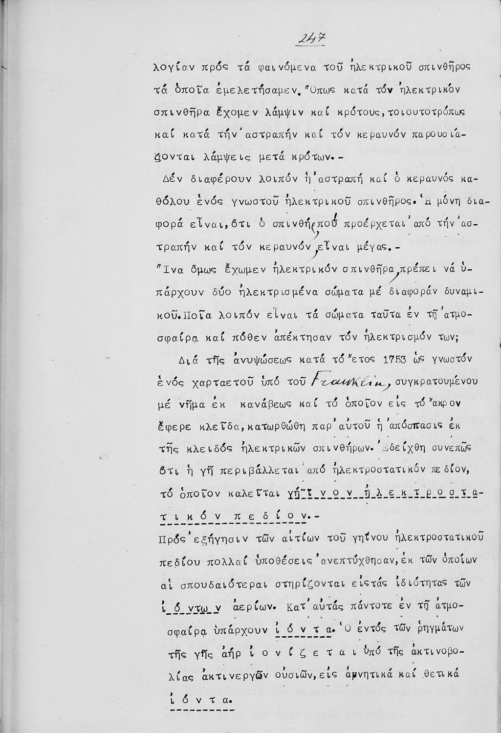 Μαθητικό βοήθημα για την ΣΤ΄ Γυμνασίου για το μάθημα της Φυσικής. Το σύγγραμμα ήταν πόνημα του συγγραφέα, το οποίο θα μπορούσε να χρησιμοποιηθεί από τους μαθητές του Γυμνασίου για το μάθημα της Φυσικής. Περιέχει βασικές γνώσεις φυσικής, όπως τις ιδιότητες του φωτός, ήχου, του ηλεκτρισμού κ.α.