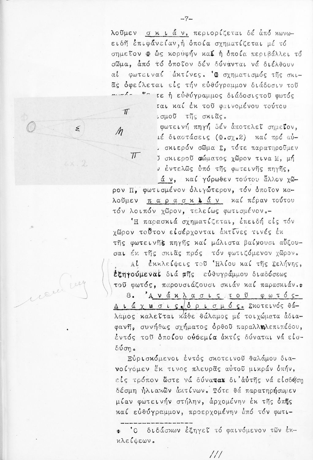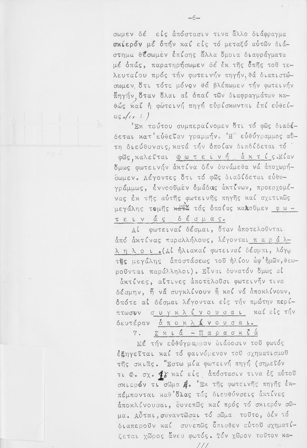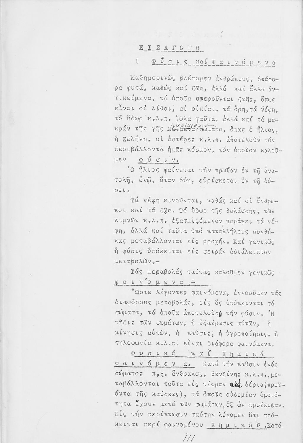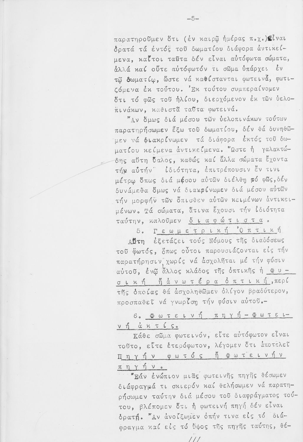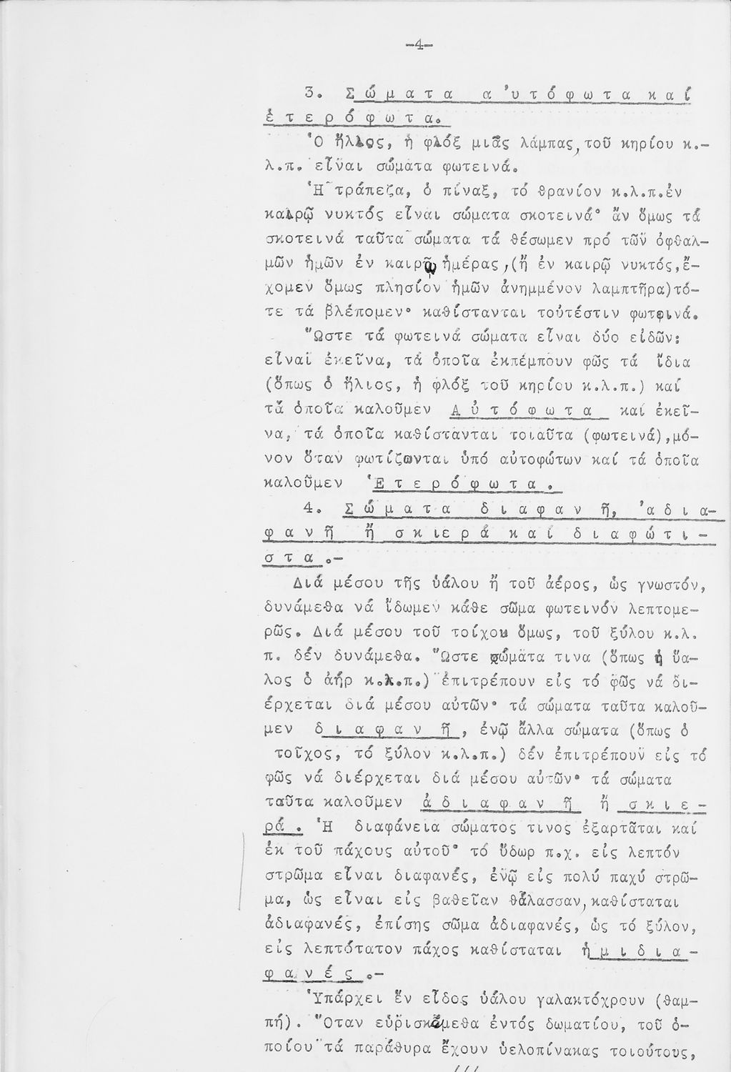 Μαθητικό βοήθημα για την ΣΤ΄ Γυμνασίου για το μάθημα της Φυσικής. Το σύγγραμμα ήταν πόνημα του συγγραφέα, το οποίο θα μπορούσε να χρησιμοποιηθεί από τους μαθητές του Γυμνασίου για το μάθημα της Φυσικής. Περιέχει βασικές γνώσεις φυσικής, όπως τις ιδιότητες του φωτός, ήχου, του ηλεκτρισμού κ.α.
