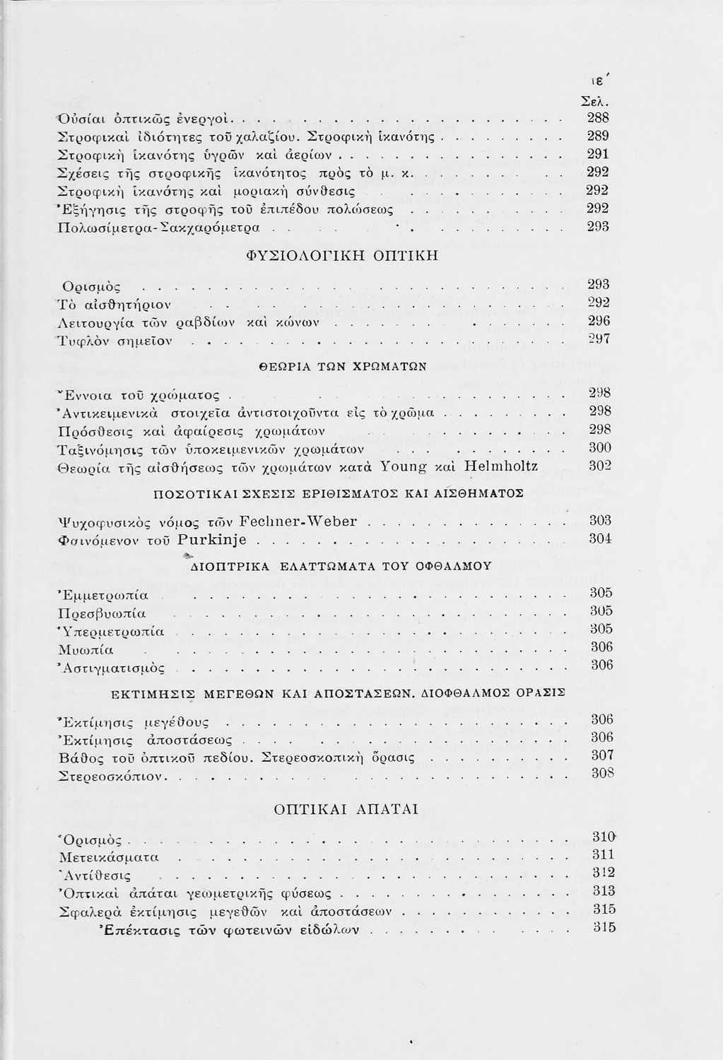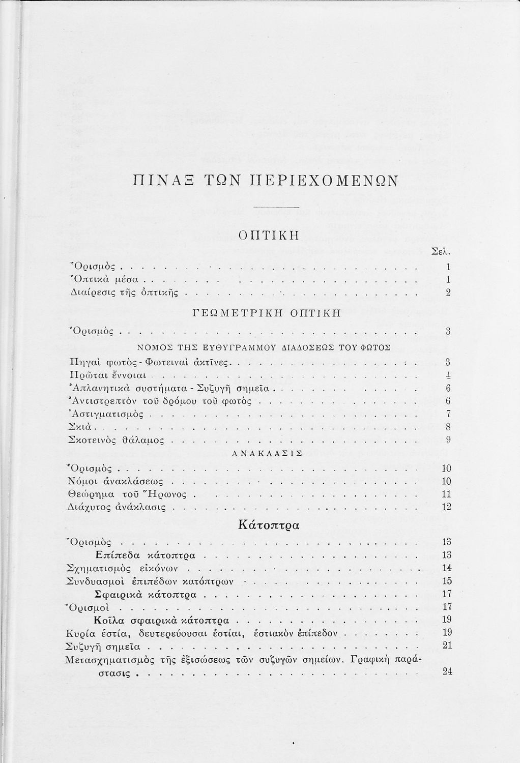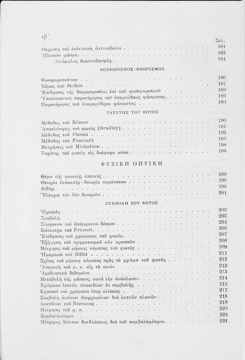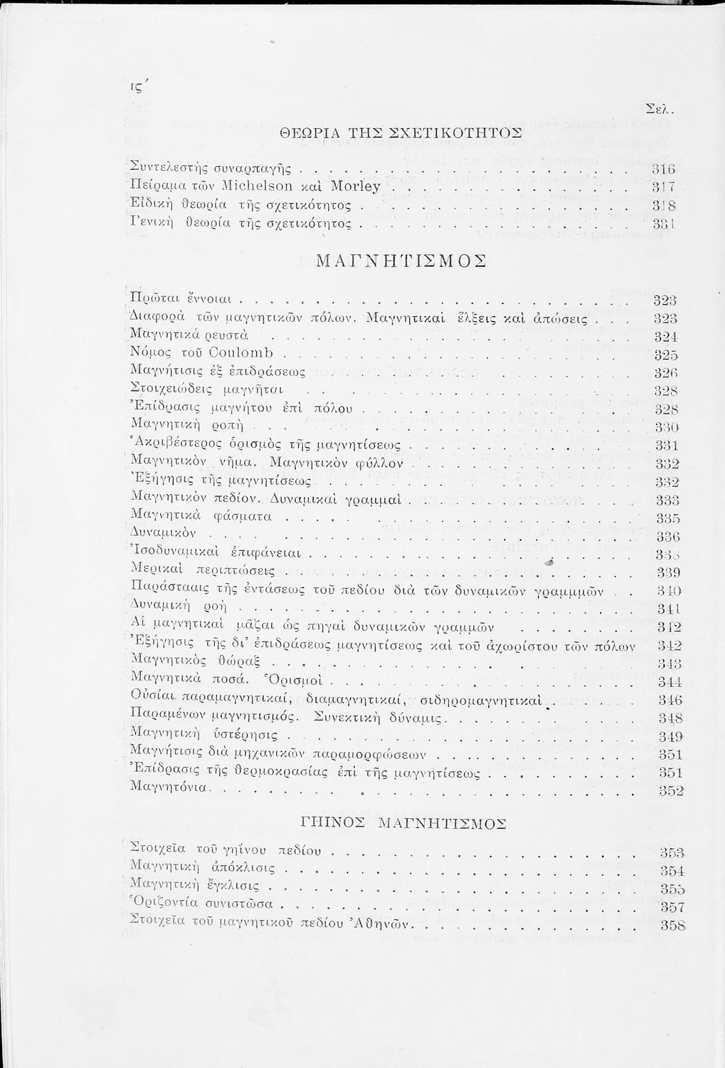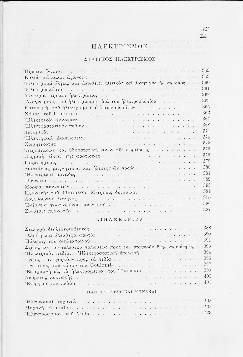 Μαθητικό βοήθημα για τους φοιτητές των φυσικών και μαθηματικών επιστημών, καθώς και της ιατρικής που εστιάζει στην οπτική, τον μαγνητισμό και τον ηλεκτρισμό. Περιλαμβάνει σχεδιαγράμματα, γραφήματα και πίνακες.