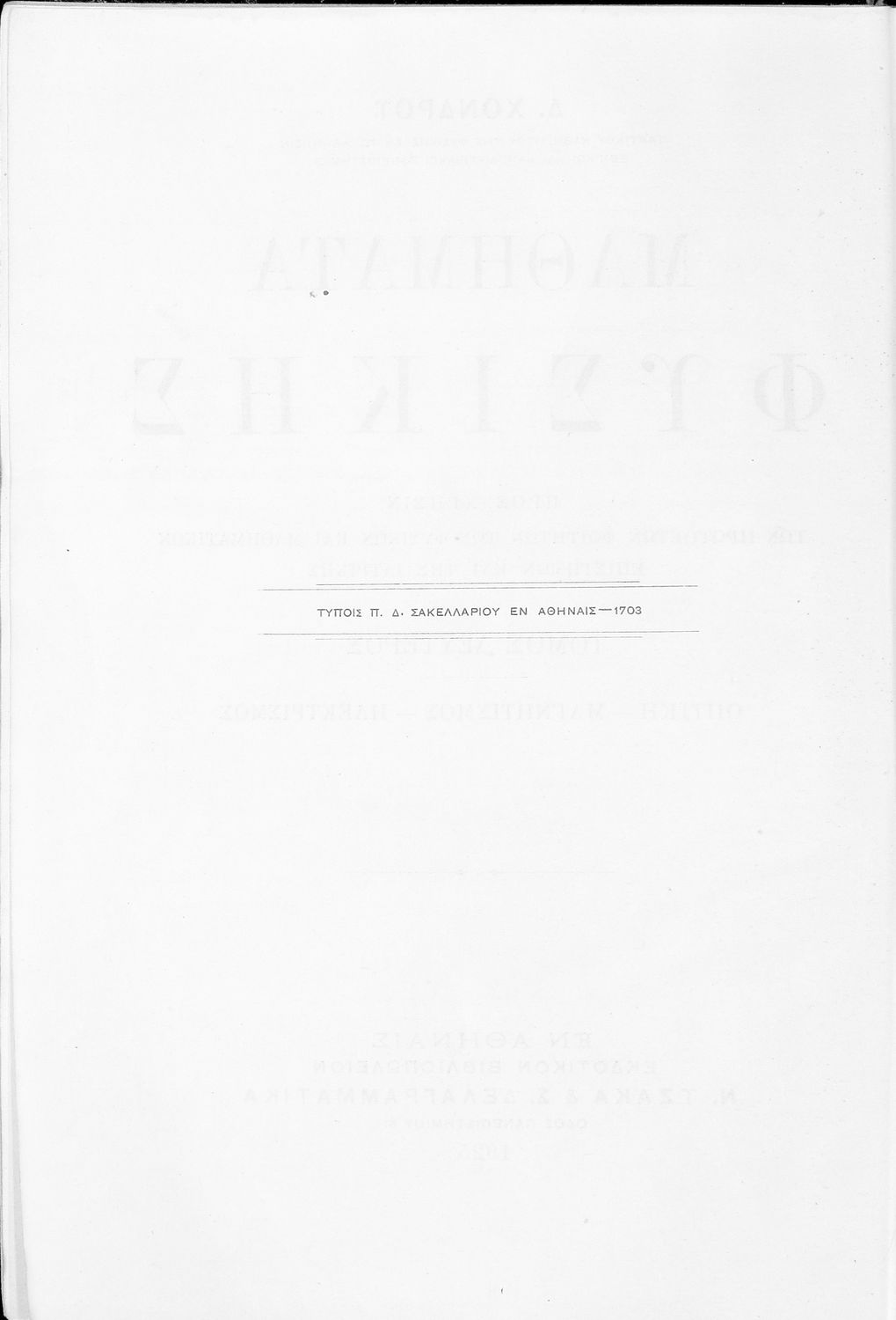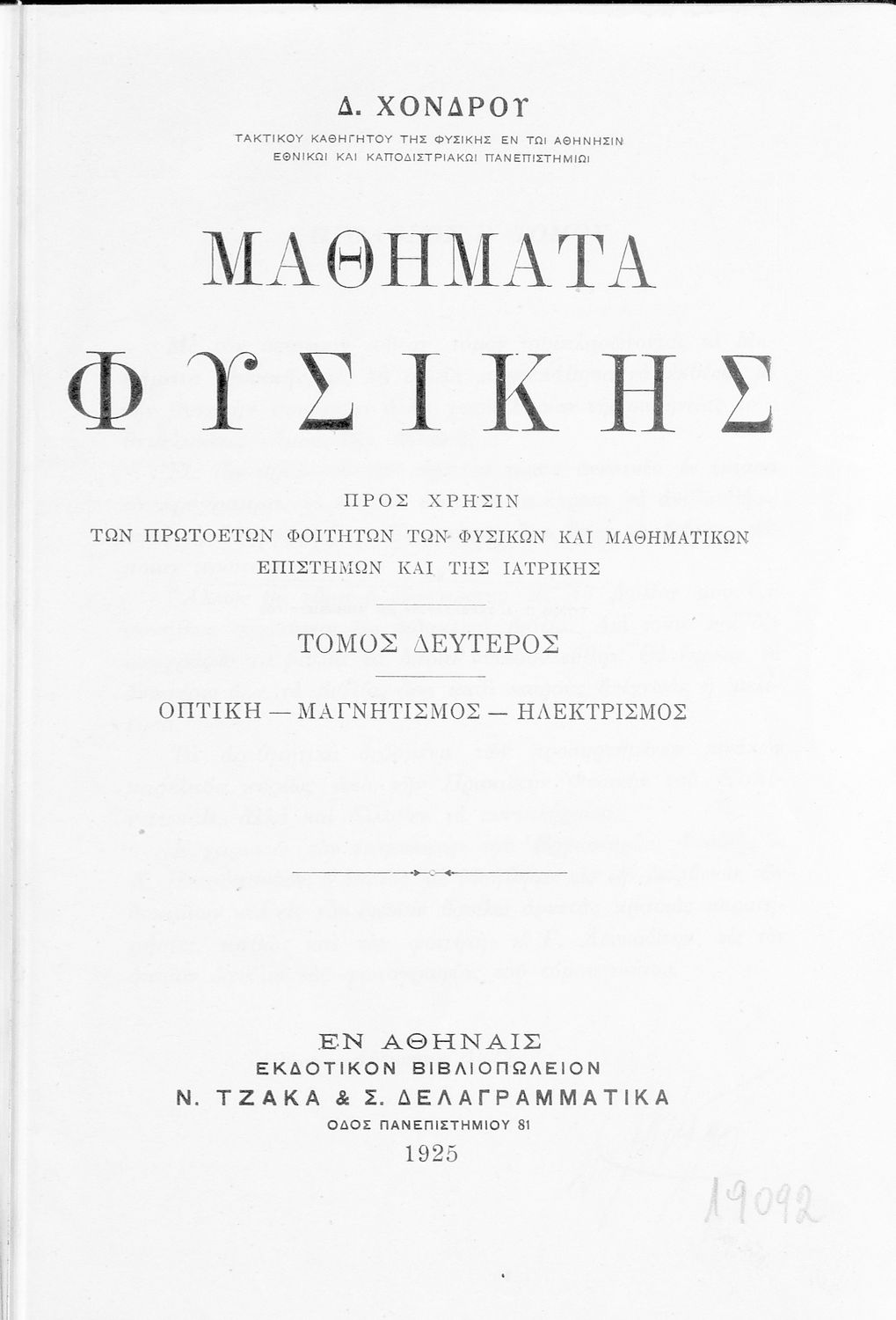 Τίτλος: Μαθήματα Φυσικής προς χρήσιν των πρωτοετών φοιτητών των φυσικών και μαθηματικών επιστημών και της ιατρικής. Τόμος Δεύτερος