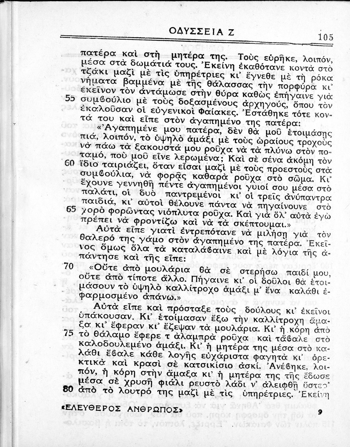 Παιδαγωγικό βοήθημα. Περιλαμβάνει τη μετάφραση της Οδύσσειας σε απόδοση του συγγραφέα. Είχε εκδοθεί από την εφημερίδα "Ελεύθερος Άνθρωπος", η οποία κυκλοφορούσε τη δεκαετία του 1930 και χαρακτηριζόταν ως δημοκρατική.
