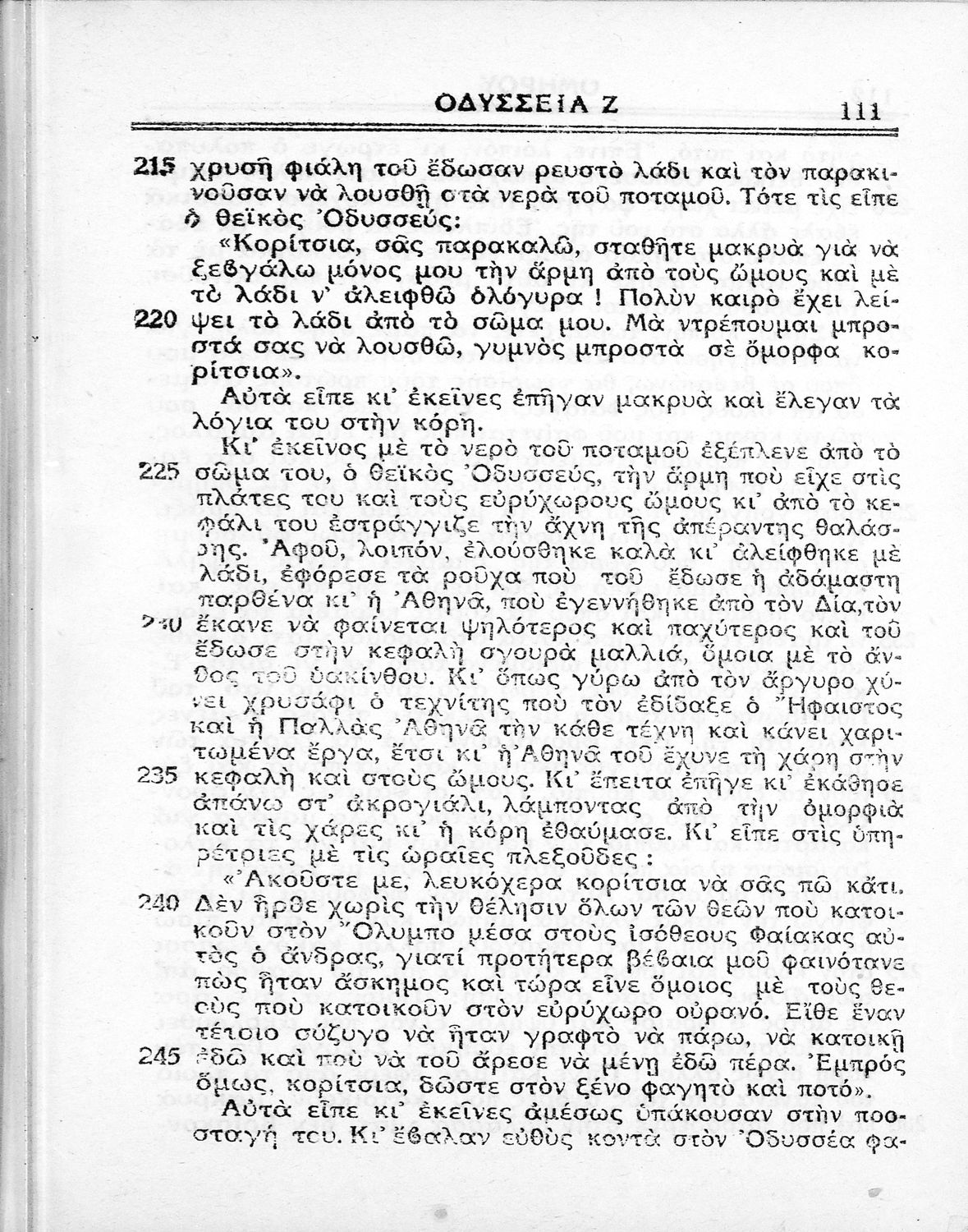Σχολικό εγχειρίδιο Αρχαίων Ελληνικών Γυμνασίου που περιλαμβάνει μετάφραση της Οδύσσειας και λεξιλόγιο.