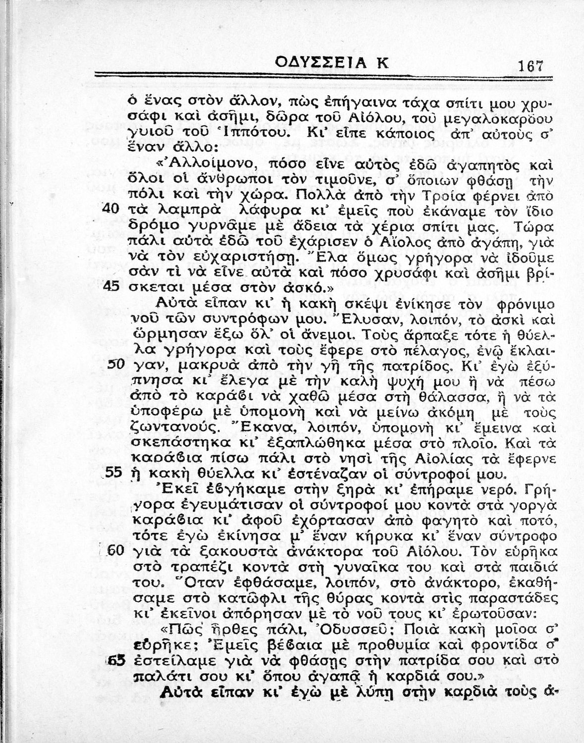 Παιδαγωγικό βοήθημα Αρχαίων Ελληνικών που περιλαμβάνει μετάφραση της Ομήρου Οδύσσειας στη νέα ελληνική, εισαγωγή στην επική ποίηση και στην Οδύσσεια, περιλήψεις και σημειώσεις.