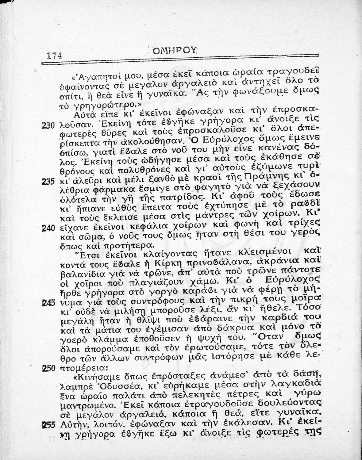 Σχολικό εγχειρίδιο Αρχαίων Ελληνικών Γυμνασίου που περιλαμβάνει μετάφραση της Οδύσσειας και λεξιλόγιο.
