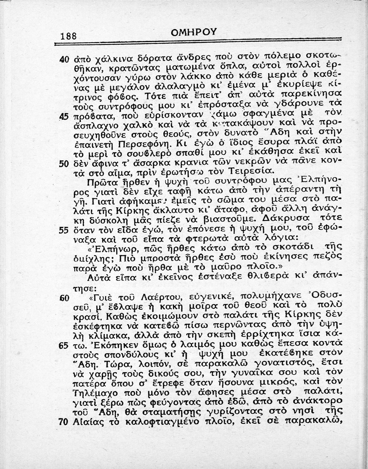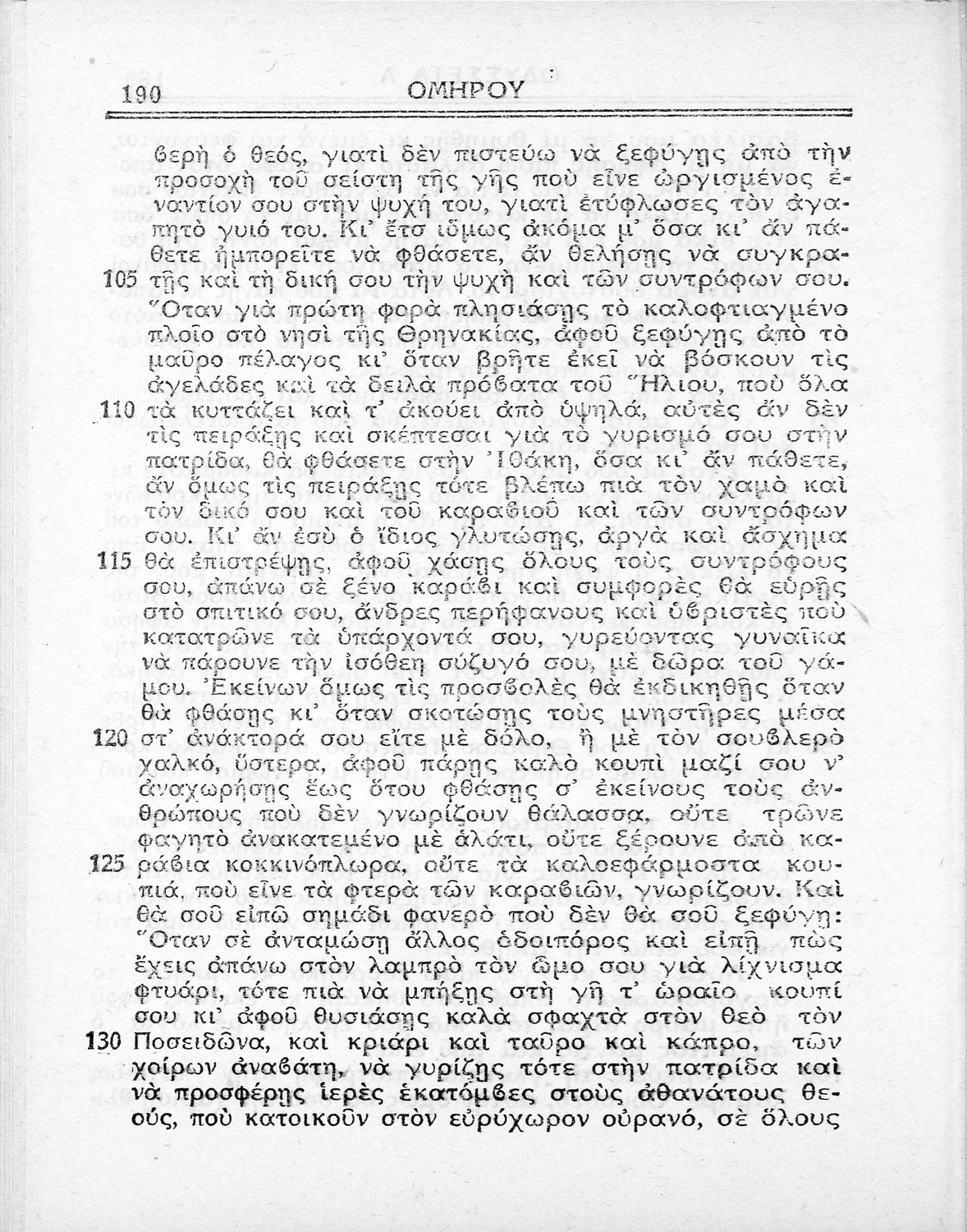 Σχολικό εγχειρίδιο του Γυμνασίου για το μάθημα των Αρχαίων Ελληνικών. Πρόκειται για το κείμενο της Οδύσσειας μεταφρασμένο στο τέλος περιλαμβάνει λεξιλόγιο.