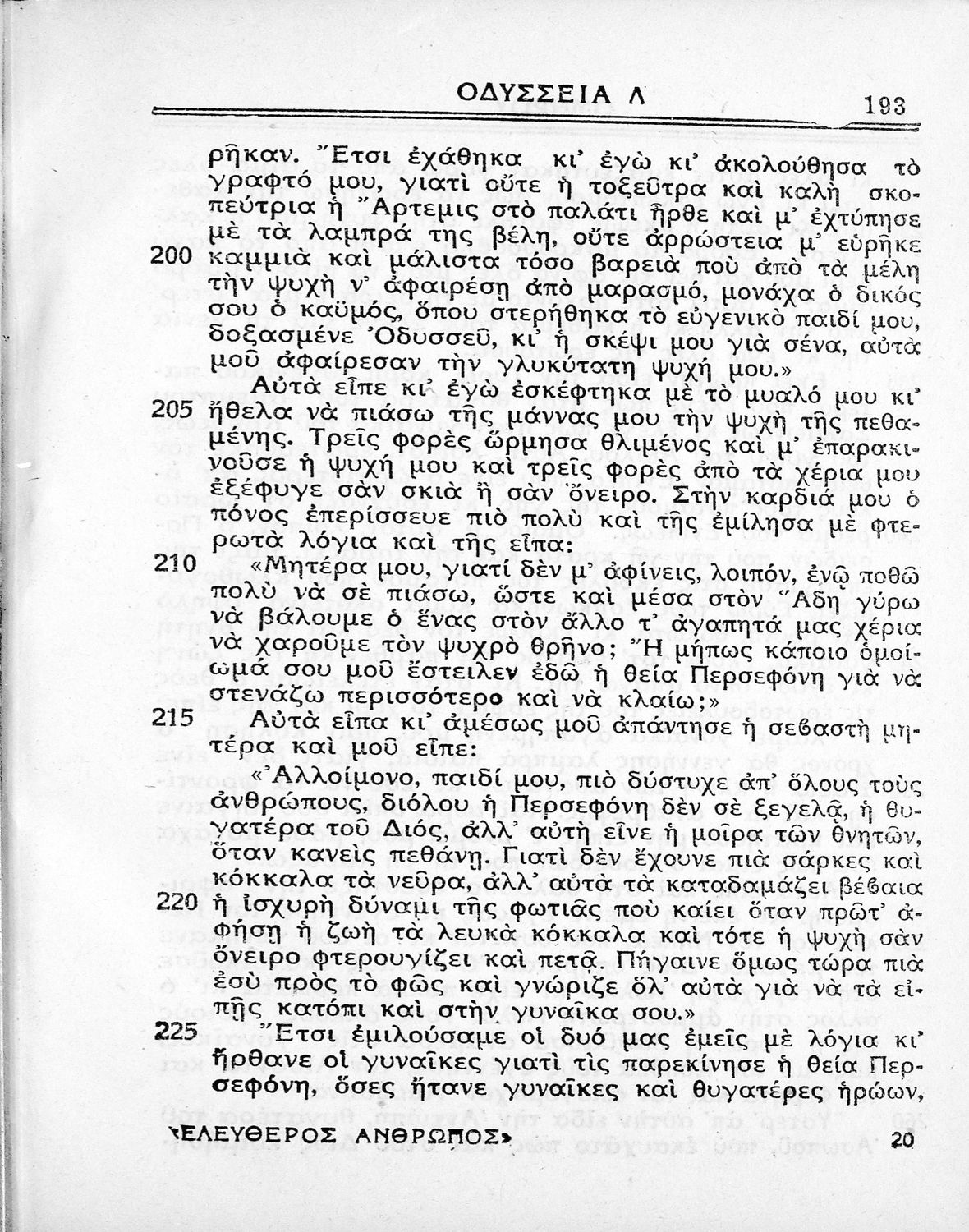 Παιδαγωγικό βοήθημα. Περιλαμβάνει τη μετάφραση της Οδύσσειας σε απόδοση του συγγραφέα. Είχε εκδοθεί από την εφημερίδα "Ελεύθερος Άνθρωπος", η οποία κυκλοφορούσε τη δεκαετία του 1930 και χαρακτηριζόταν ως δημοκρατική.
