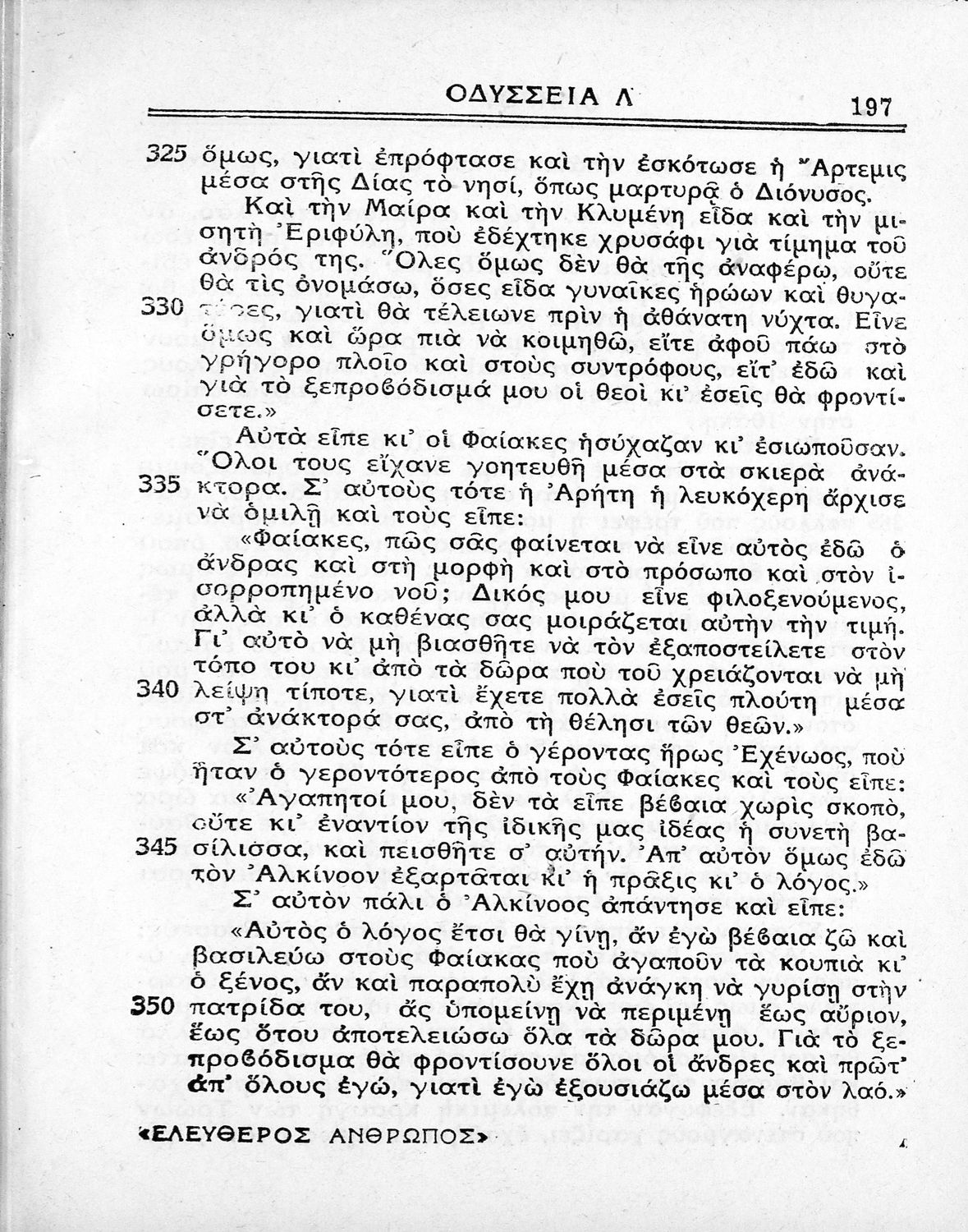Παιδαγωγικό βοήθημα Αρχαίων Ελληνικών που περιλαμβάνει μετάφραση των ραψωδιών Ν-Ω της Οδύσσειας.