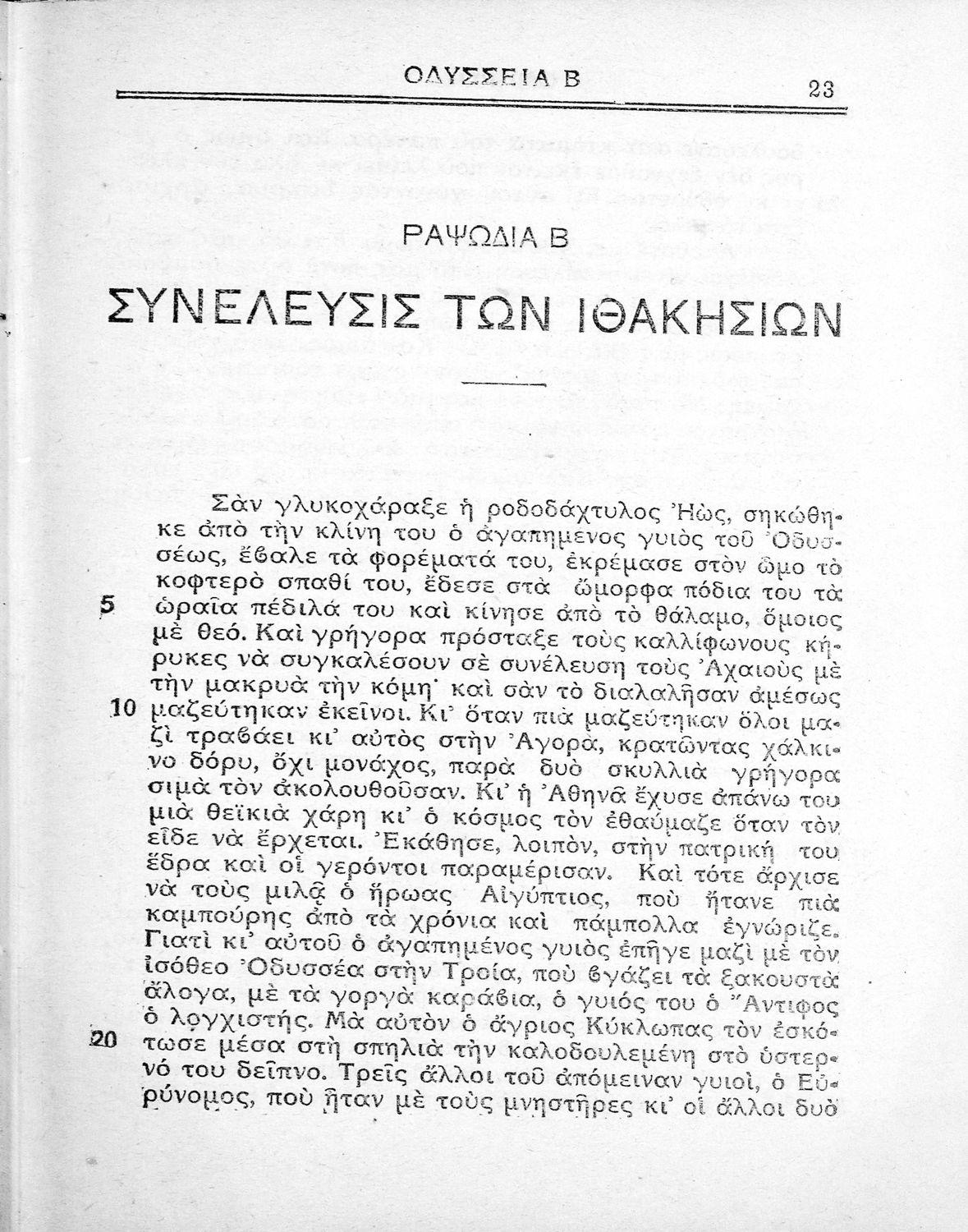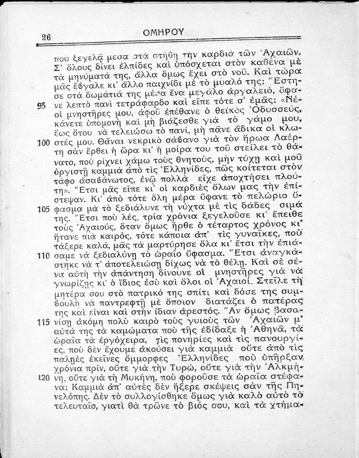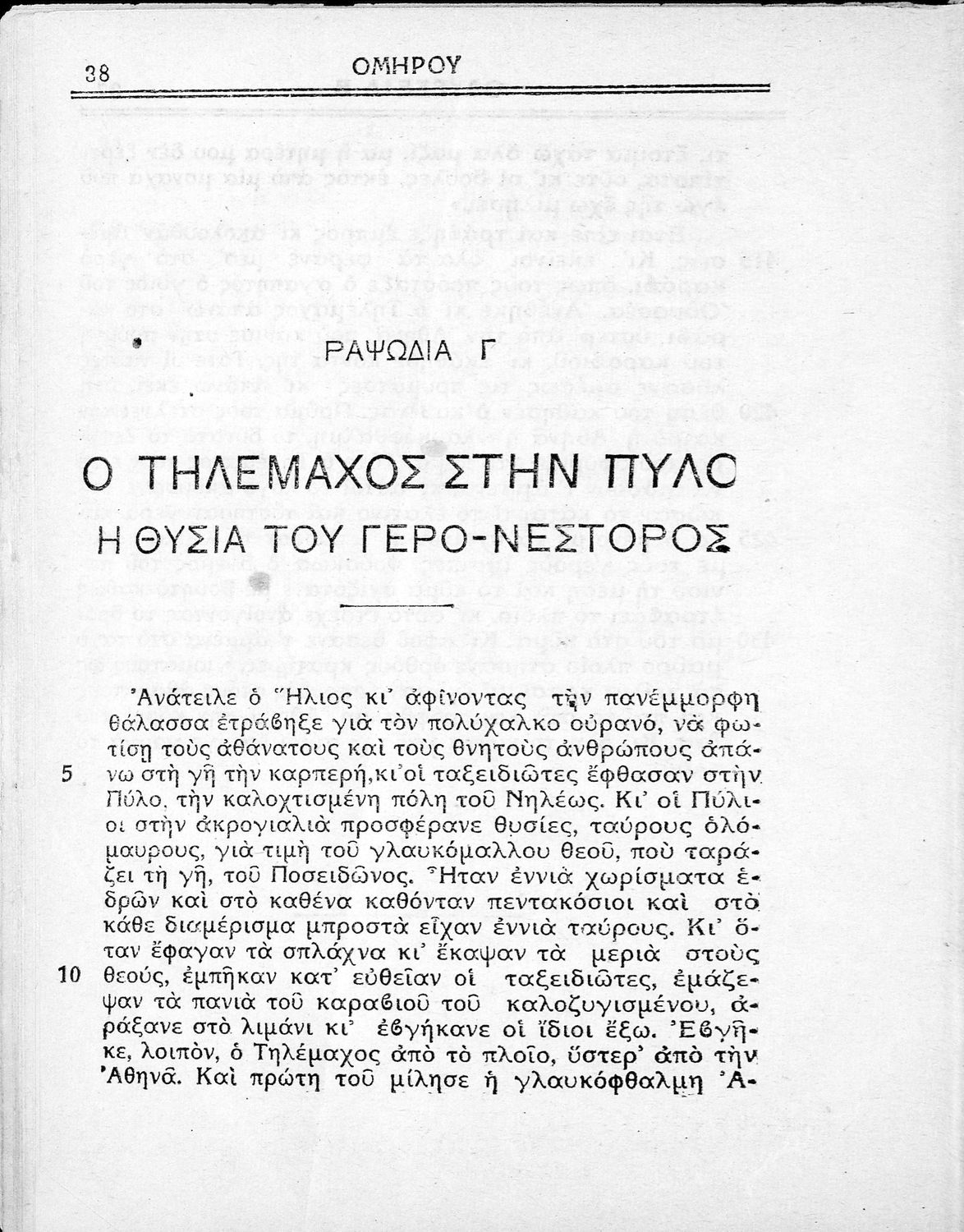 Μάθημα: Αρχαία Ελληνικά Γλώσσα: Απλή καθαρεύουσα Παρουσίαση περιεχομένου: Παιδαγωγικό βοήθημα. Περιλαμβάνει τη μετάφραση της Οδύσσειας σε απόδοση του συγγραφέα. Είχε εκδοθεί από την εφημερίδα "Ελεύθερος Άνθρωπος", η οποία κυκλοφορούσε τη δεκαετία του 1930 και χαρακτηριζόταν ως δημοκρατική. |