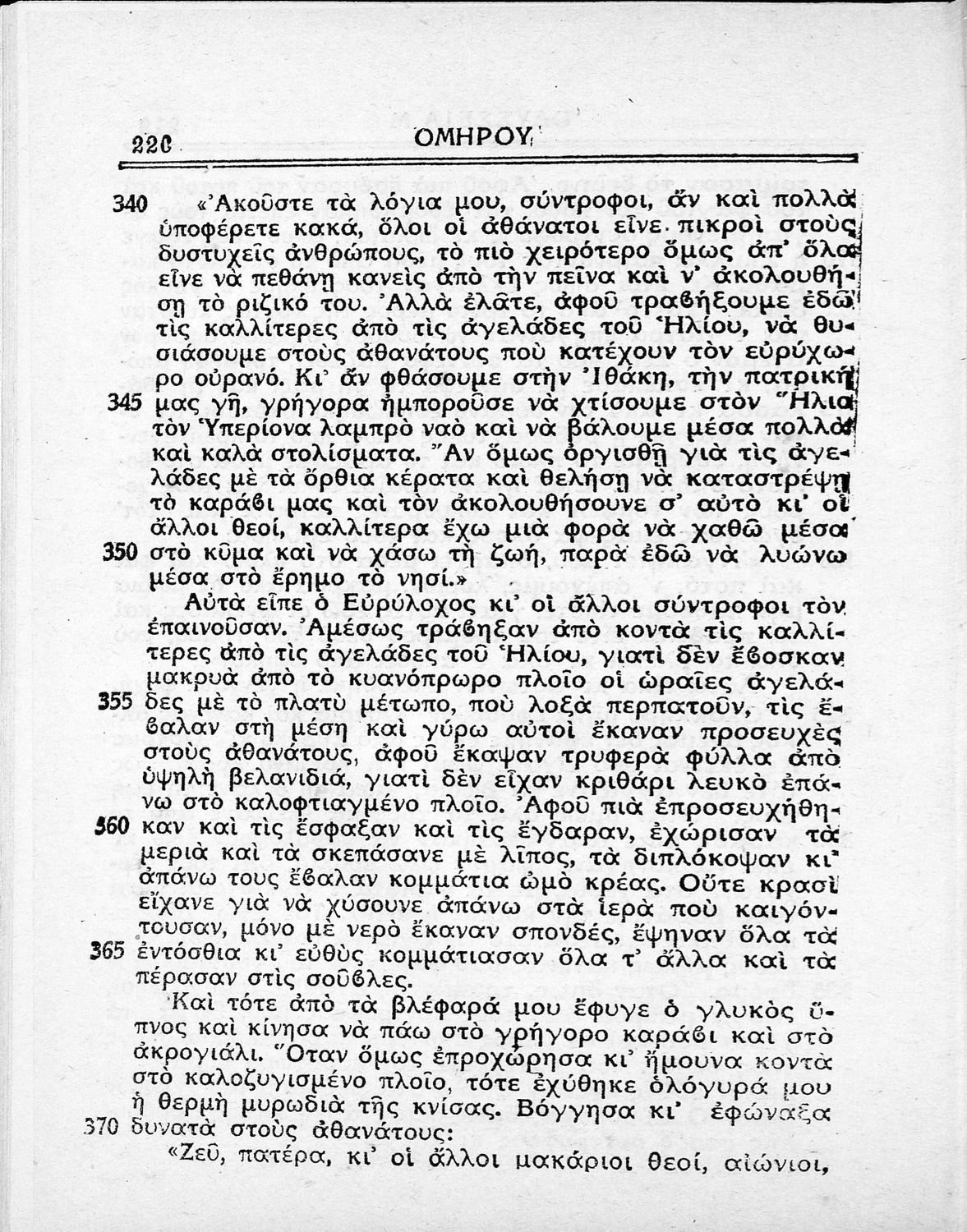 Σχολικό εγχειρίδιο Αρχαίων Ελληνικών Γυμνασίου που περιλαμβάνει μετάφραση της Οδύσσειας και λεξιλόγιο.