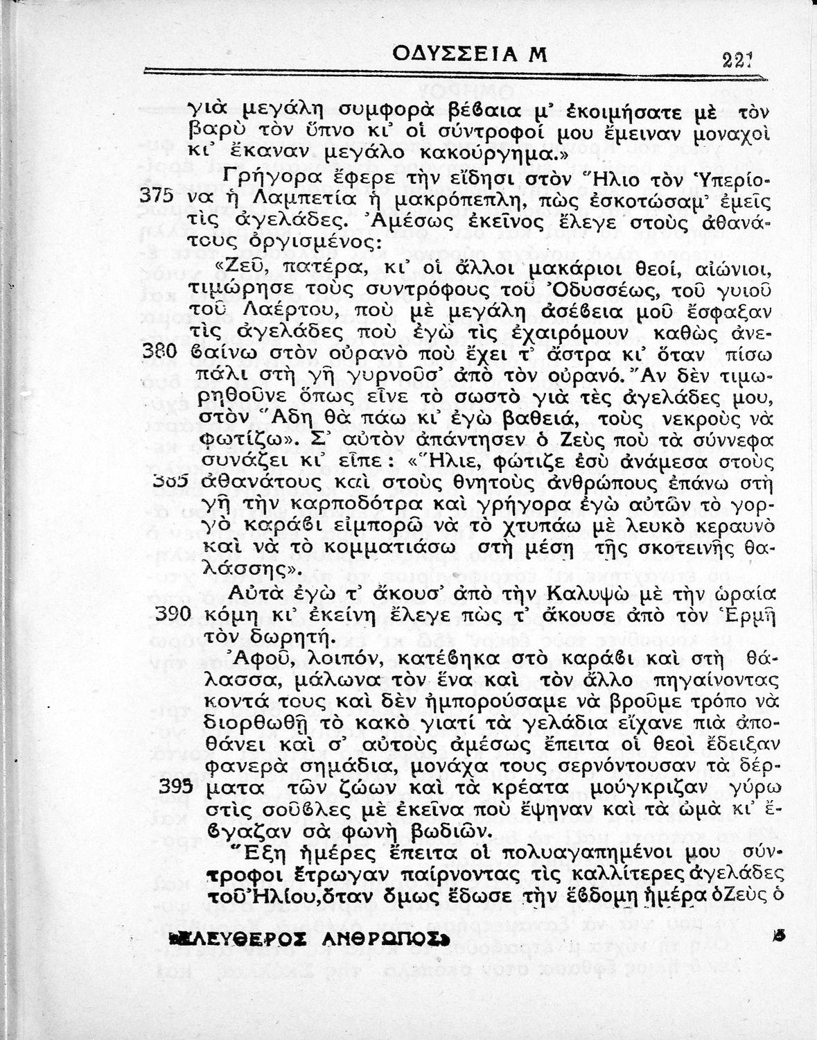 Παιδαγωγικό βοήθημα. Περιλαμβάνει τη μετάφραση της Οδύσσειας σε απόδοση του συγγραφέα. Είχε εκδοθεί από την εφημερίδα "Ελεύθερος Άνθρωπος", η οποία κυκλοφορούσε τη δεκαετία του 1930 και χαρακτηριζόταν ως δημοκρατική.