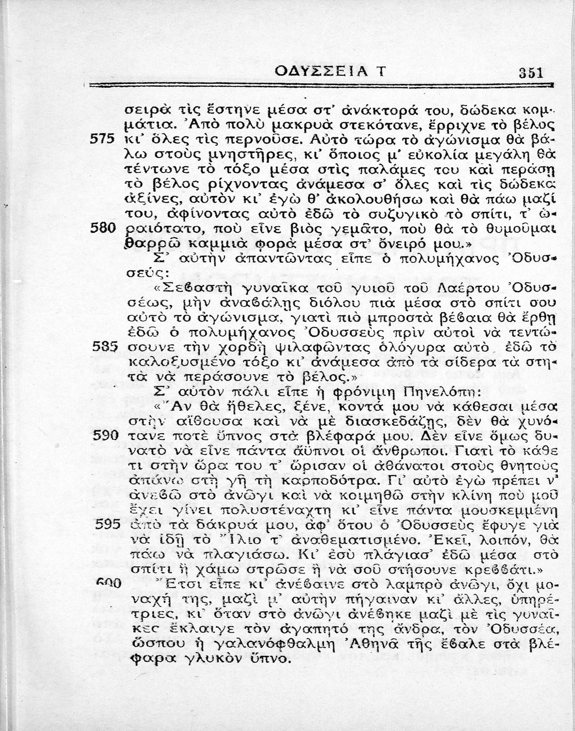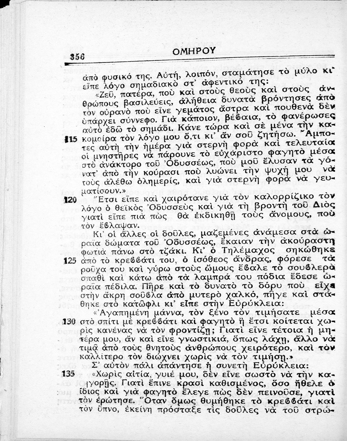 Σχολικό εγχειρίδιο Αρχαίων Ελληνικών Γυμνασίου που περιλαμβάνει μετάφραση της Οδύσσειας και λεξιλόγιο.
