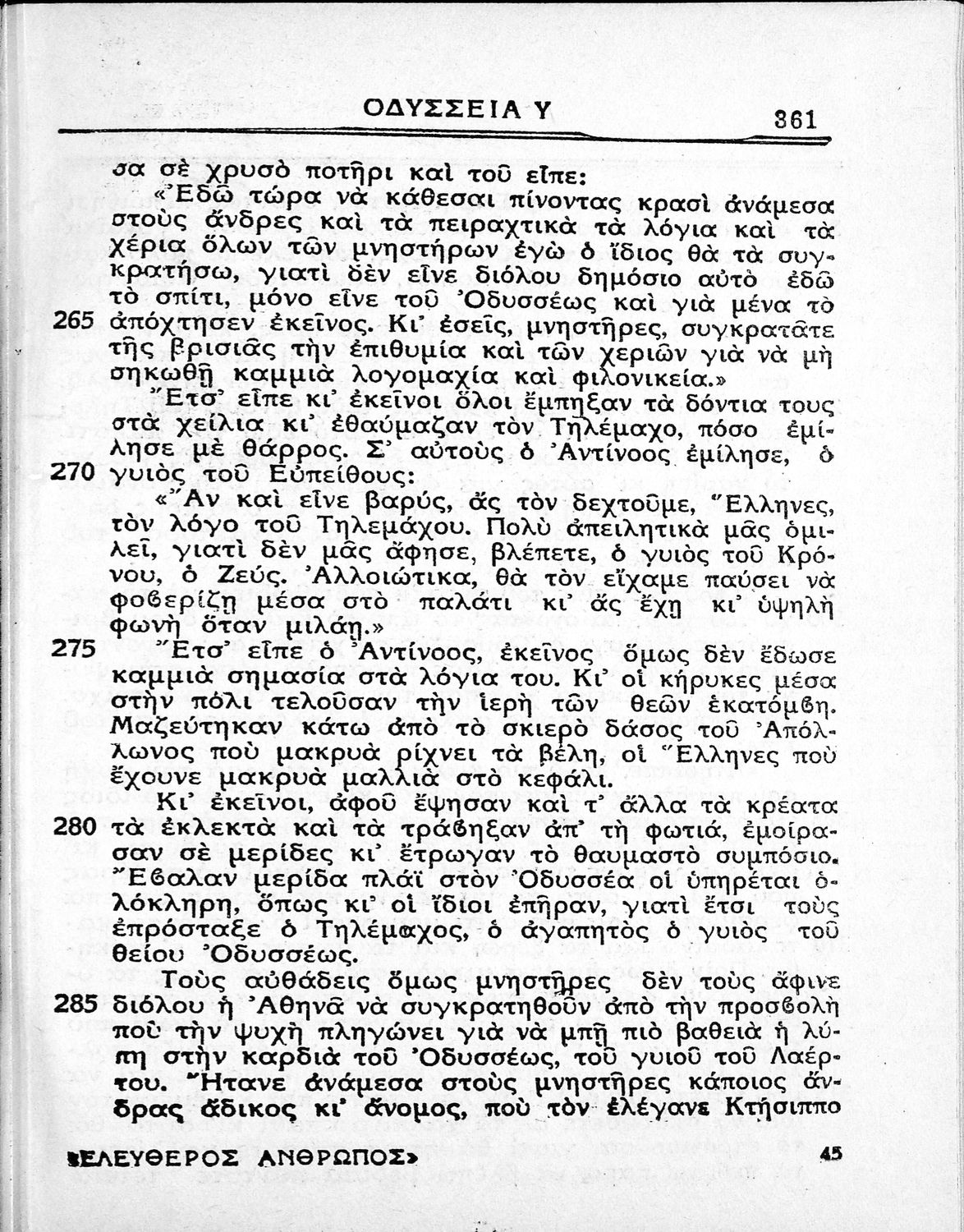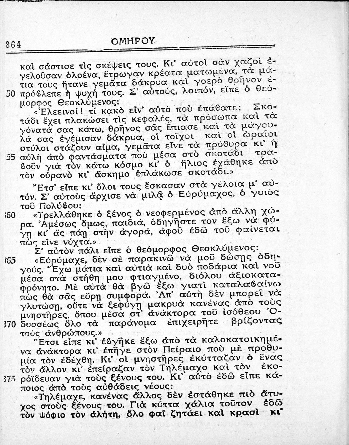 Παιδαγωγικό βοήθημα Αρχαίων Ελληνικών που περιλαμβάνει μετάφραση των ραψωδιών Ν-Ω της Οδύσσειας.