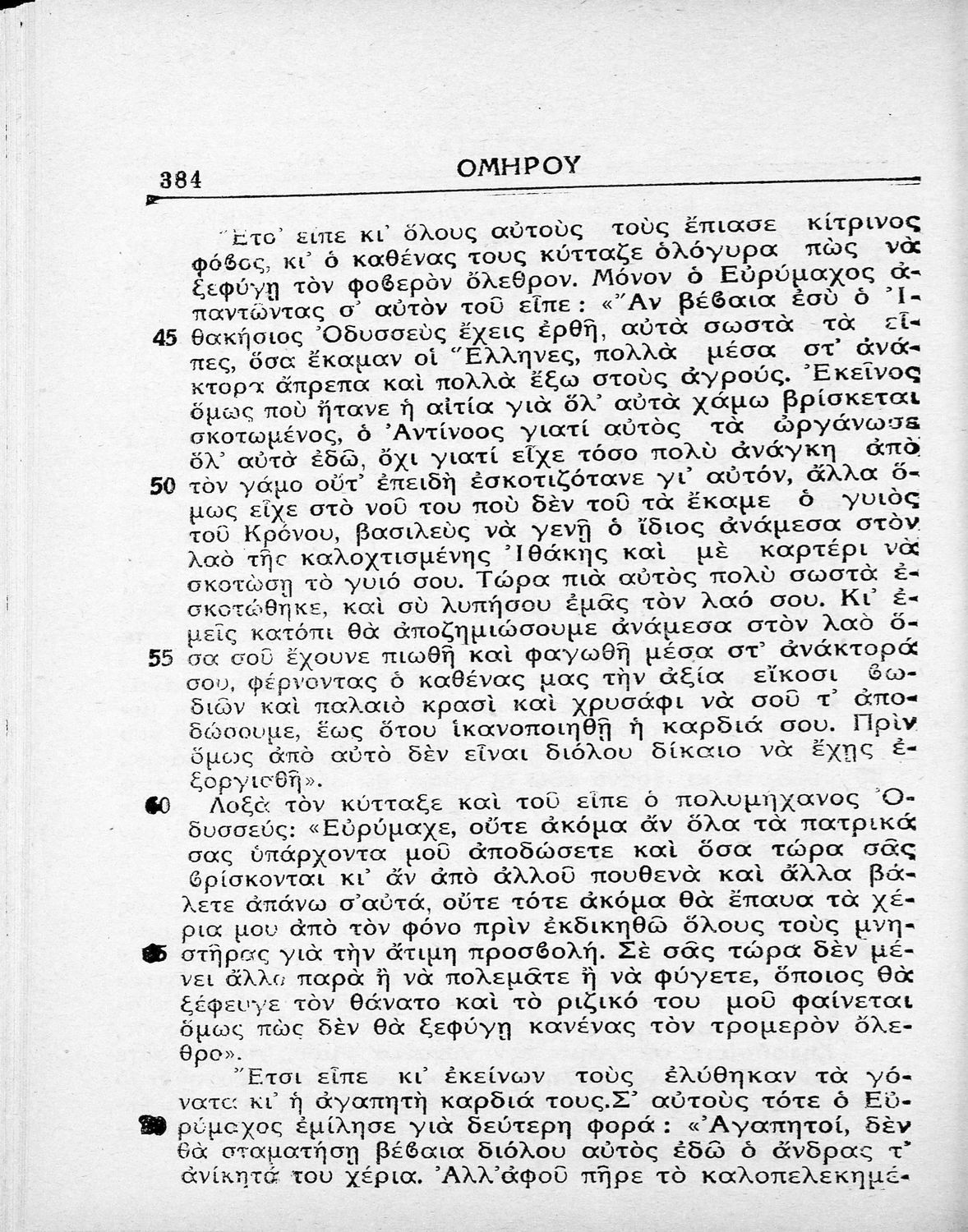 Σχολικό εγχειρίδιο Αρχαίων Ελληνικών Γυμνασίου που περιλαμβάνει μετάφραση της Οδύσσειας και λεξιλόγιο.