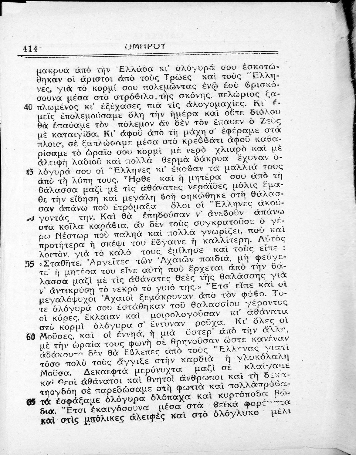 Σχολικό εγχειρίδιο Αρχαίων Ελληνικών Γυμνασίου που περιλαμβάνει μετάφραση της Οδύσσειας και λεξιλόγιο.