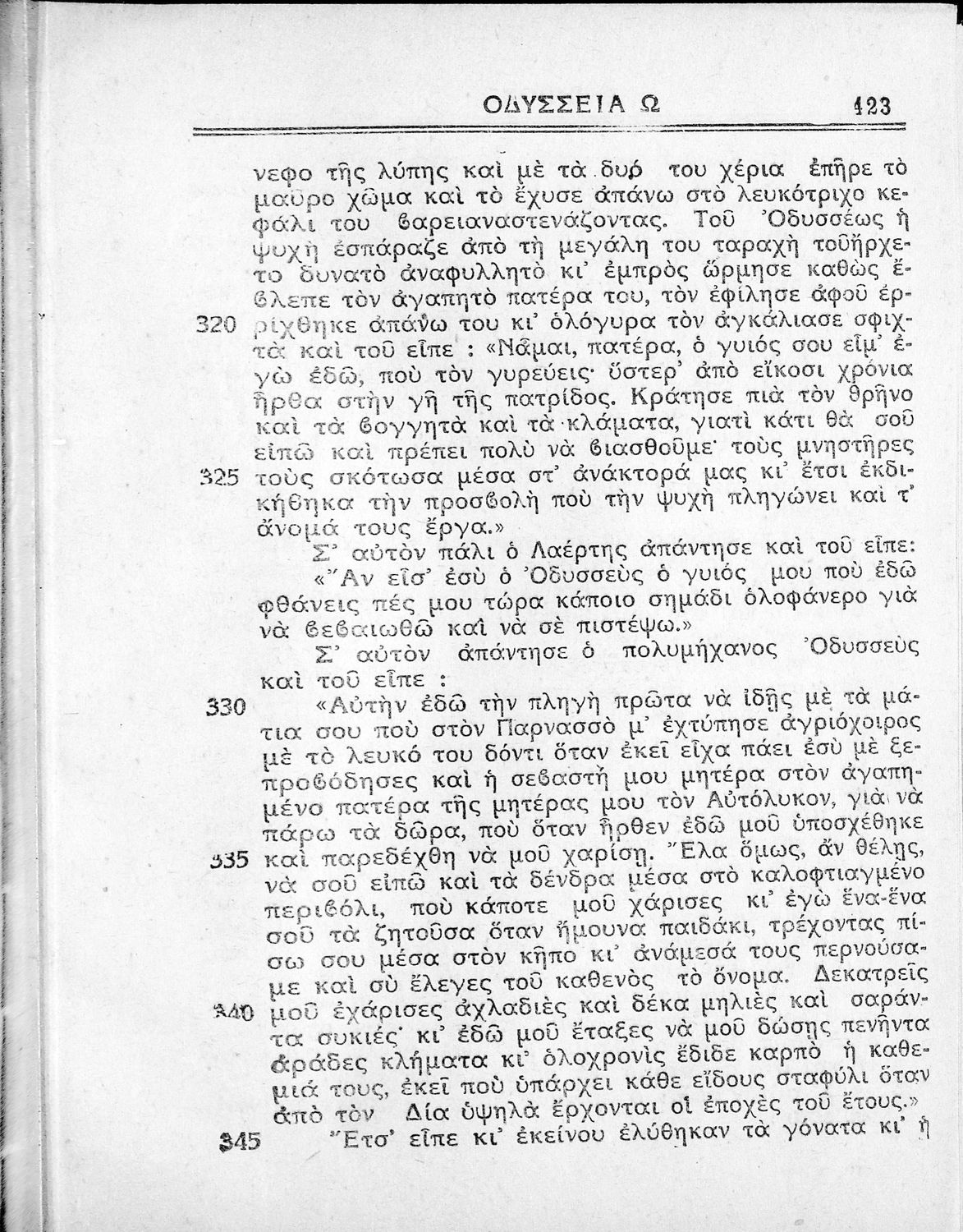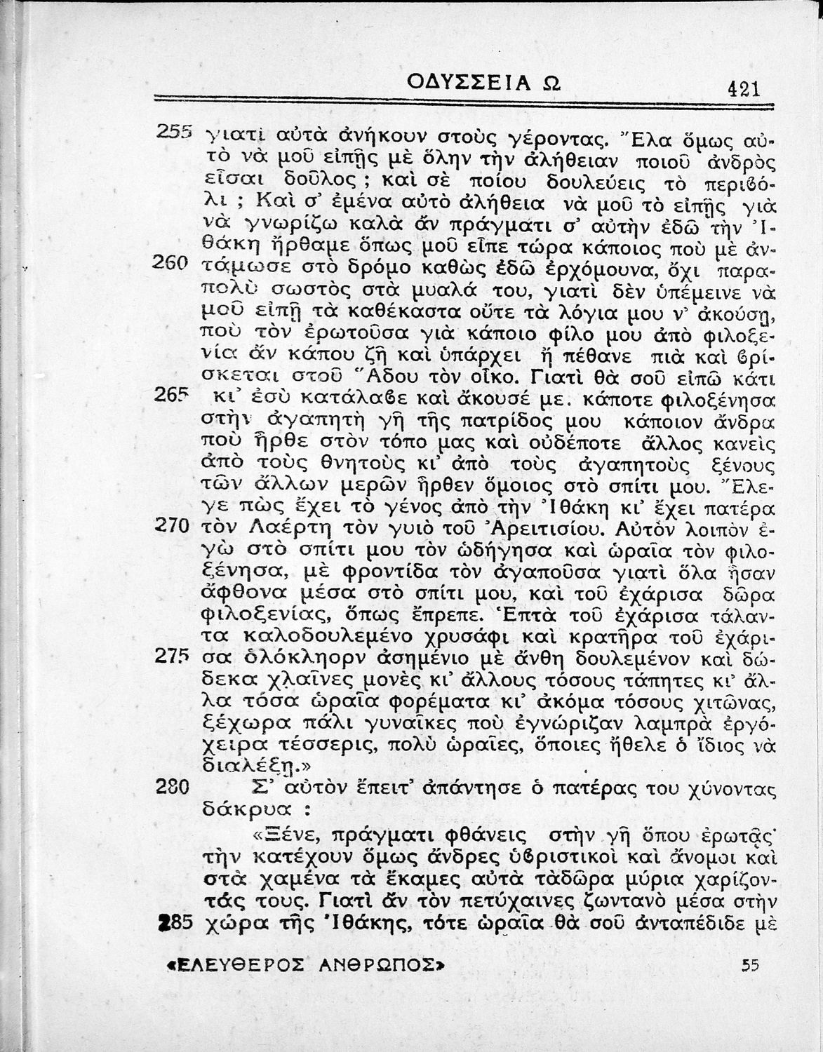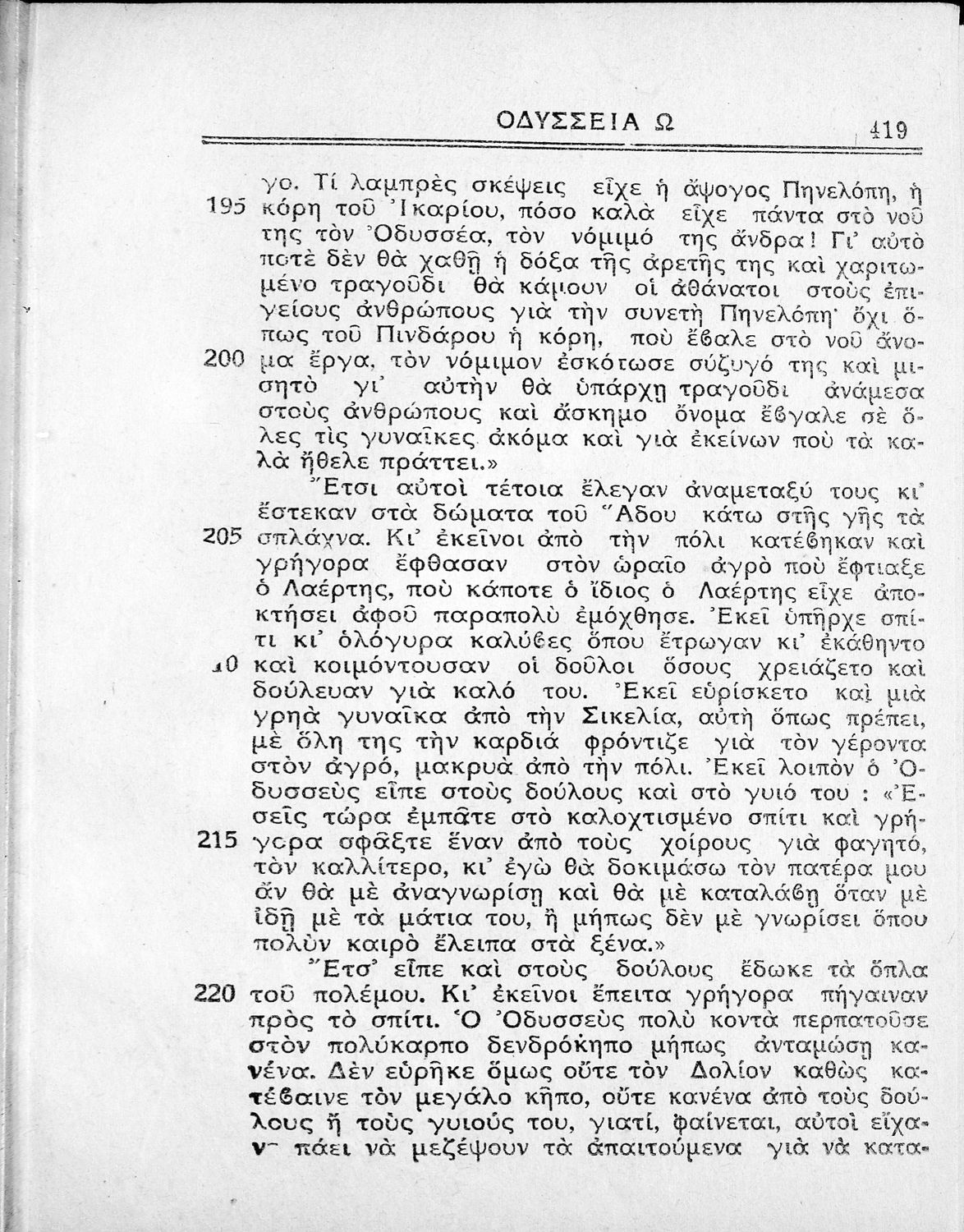 Παιδαγωγικό βοήθημα Αρχαίων Ελληνικών που περιλαμβάνει μετάφραση των ραψωδιών Ν-Ω της Οδύσσειας.
