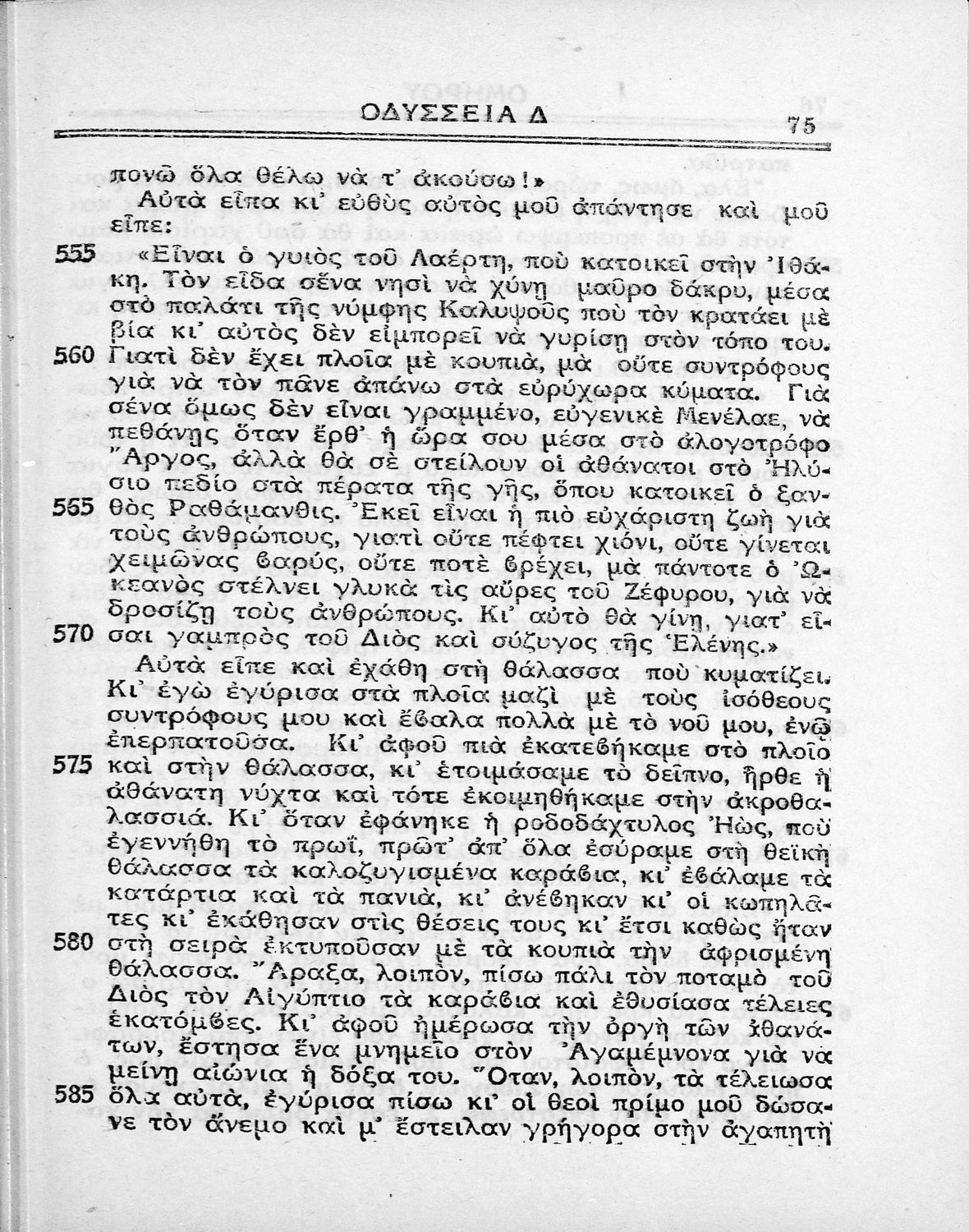 Παιδαγωγικό βοήθημα Αρχαίων Ελληνικών που περιλαμβάνει μετάφραση των ραψωδιών Ν-Ω της Οδύσσειας.